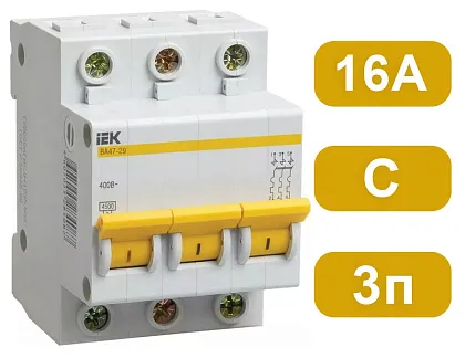 Автоматический выключатель для защиты цепей от тока перегрузки и короткого замыкания, цветовой указатель положения контактов, возможность использования доп.принадлежностей, диаметр присоединяемого проводника 1 - 25 кв.мм.