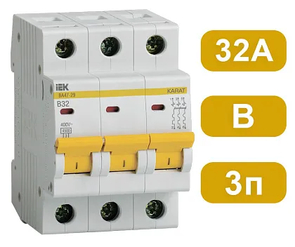 Автоматический выключатель для защиты цепей от тока перегрузки и короткого замыкания, цветовой указатель положения контактов, возможность использования доп.принадлежностей, диаметр присоединяемого проводника 1 - 25 кв.мм.