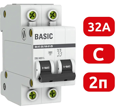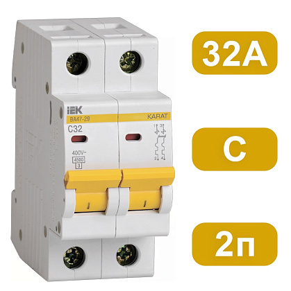 Тип напряжения: Переменный ток (AC) Глубина ниши для монтажа: 75mm Номинальный ток: 32 A Номинальное рабочее напряжение: 400V Частота: 50/60Hz Характеристика срабатывания (кривая тока): C Количество полюсов (общее): 2