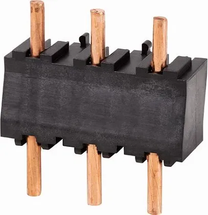 Электрический соединительный модуль предназначен для соединения автоматических выключателей защиты двигателя PKZM0 с контактором DILM 40—65. Данный модуль позволяет отказаться от их соединения при помощи проводов. Уменьшает габариты получившейся сборки, а так же сокращает время монтажа/замены сборки или ее элементов.