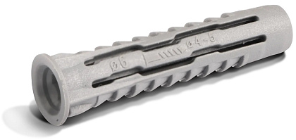 Дюбель четырехраспорный с бортиком/манжетой, усами и шипами изготовлен из полипропилена. Благодаря четырём распорным сегментам силы внутри отверстия распределены более равномерно, чем в случае использования 2- или 3-сегментных дюбелей. Дюбель четырехраспорный предназначен для использования в бетоне, гипсовой плите, натуральном и искусственном камне, пустотелом//полнотелом керамическом и силикатном кирпиче.