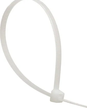 Нейлоновые хомуты, предназначены для крепежа и соединения в жгут кабелей и проводов, быстро и легко закрепляется с помощью инструмента или вручную. Такая стяжка используется при проведении электромонтажных работ, при монтаже структурированных кабельных систем, для бытовых нужд, а также в других отраслях народного хозяйства. Представляет собой гибкую полоску из нейлона высокой прочности (полиамид-6,6) с замком на конце. Полиамид-6,6 — кристаллизующийся конструкционный материал, имеющий высокую твердость и механическую прочность, отличающийся высокими электроизоляционными свойствами.