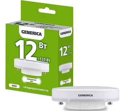 Лампа LED T80 GX53 3000К 12Вт 1200Lm GENERICA