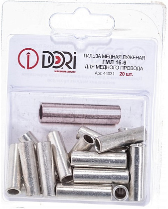 Гильзы кабельные медные луженые ГМЛ 16-6, закрепляемые опрессовкой, предназначены для соединения медных жил проводов и кабелей с сечением 16 мм². Гильзы медные луженые применяются для кабелей напряжением до 10 кВ.