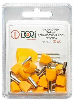 Оконцевание методом опрессовки гибких многопроволочных медных проводников сечением 2х4.0мм². Трансформирует концы многожильных проводов в монолитные штифты. Монтаж сдвоенных проводов одинакового сечения