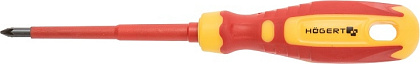 Отвертка изолированная крестовая PZ1, 80мм, 1000 V предназначена для работы под напряжением 1000 В при средних и больших нагрузках. Отвертка имеет уменьшенный диаметр к концу стержня, это обеспечивает удобство в работе с винтами клемм автоматов, пускателей, нулевых шин и т.д.