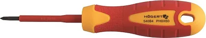 Отвёртка изолированная крестовая PZ2, 100 мм для работы под напряжением 1000 В при средних и больших механических нагрузках. Отвертка имеет уменьшенный диаметр к концу стержня, это обеспечивает удобство в работе с винтами клемм автоматов, пускателей, нулевых шин и т.д.