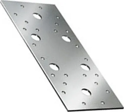 Пластина гвоздевая используется для фиксации деревянных элементов стропильной системы (балок, брусьев, стоек) в одной плоскости. Может применяться при производстве решетчатых рам, опалубок для бетонных конструкций, в каркасном строительстве. Произведена из перфорированной оцинкованной стали толщиной 1 мм с шипами специальной формы, распределенными по поверхности.