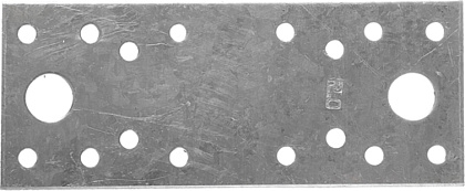 Крепежная пластина 130х50х2 является одним из самых простых, в конструктивном плане перфорированным крепежом, и представляет собой металлическую оцинкованную пластину, толщиной 2мм, с множественными перфорированными отверстиями диаметром 5мм и два отверстия 13мм для удобства монтажа.