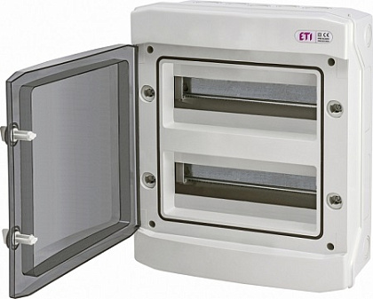 Серия распределительных герметических щитков ETI для установки модульных устройств серия ECH. Модульные боксы применяются в жилищном и промышленном строительстве, могут быть использованы для создания распределительных, сигнальных устройств благодаря прозрачной дверце, щитов управления различными устройствами. Щиты поддерживают степень защиты IP-65, изготавливаются из противоударного термопластика ASA, устойчивые к УФ излучению. Модульные щиты ECH, имеют возможность пломбировки, дверцы могут быть установлены, как слева, так и справа. Боксы укомплектованы монтажной дин-рейкой, шиной PE/N, маркировочными наклейками, заглушкой для лишних модулей. Модульные герметические щиты ECH, качественные, сертифицированные боксы европейского производителя ETI Словения.