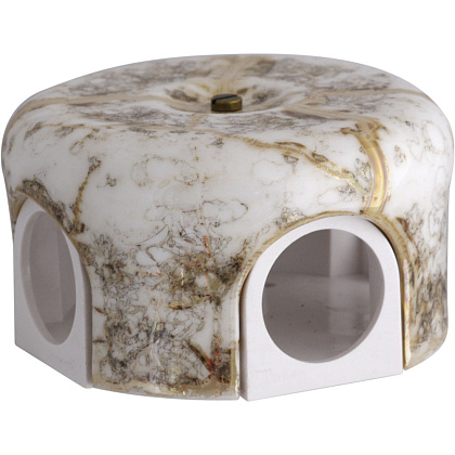 Изготовлен из экологически чистого материала – керамики. Оснащен поворотным переключателем вместо клавиши. Изделие выполнено из долговечных, надежных материалов, устойчиво к истиранию и механическим воздействиям. Превосходно эмитирует текстуру природного мрамора. Применяется с открытой проводкой, хорошо сочетается с текстильным кабелем. При необходимости может использоваться и при монтаже скрытой электропроводки.