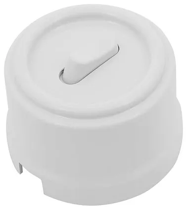 Выключатель изготовлен из высокопрочного пластика, устойчивого к истиранию. Оснащен поворотным переключателем вместо клавиши. Применяется с открытой проводкой, хорошо сочетается с текстильным кабелем.
