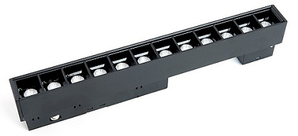 Светильник трековый на шинопровод, - (ДПО) FERON MGN302, 12W, 4000К (белый), 48V, 960Lm, цвет черный, корпус алюминий, рассеиватель поликарбонат, 300*22*43 мм
