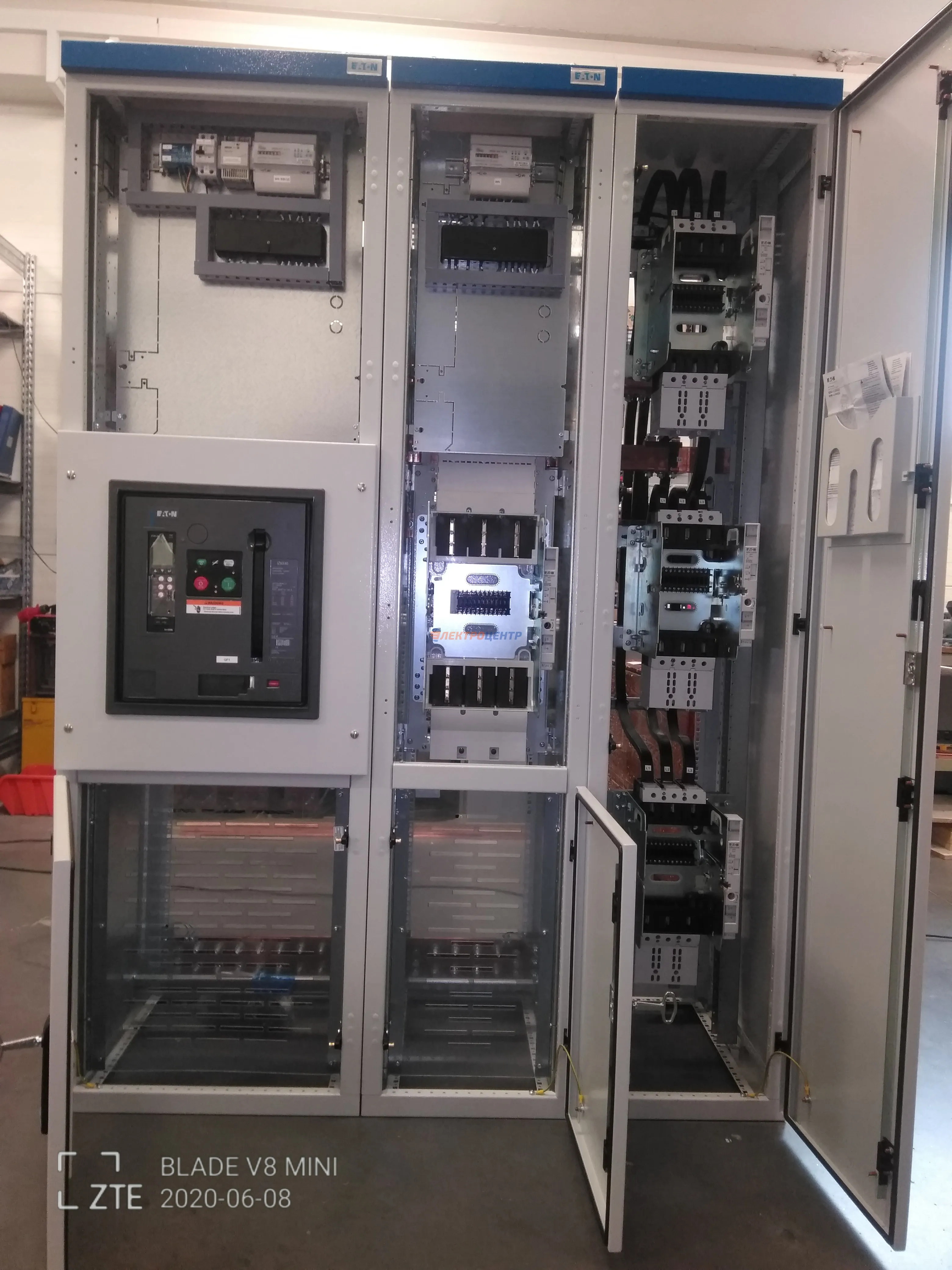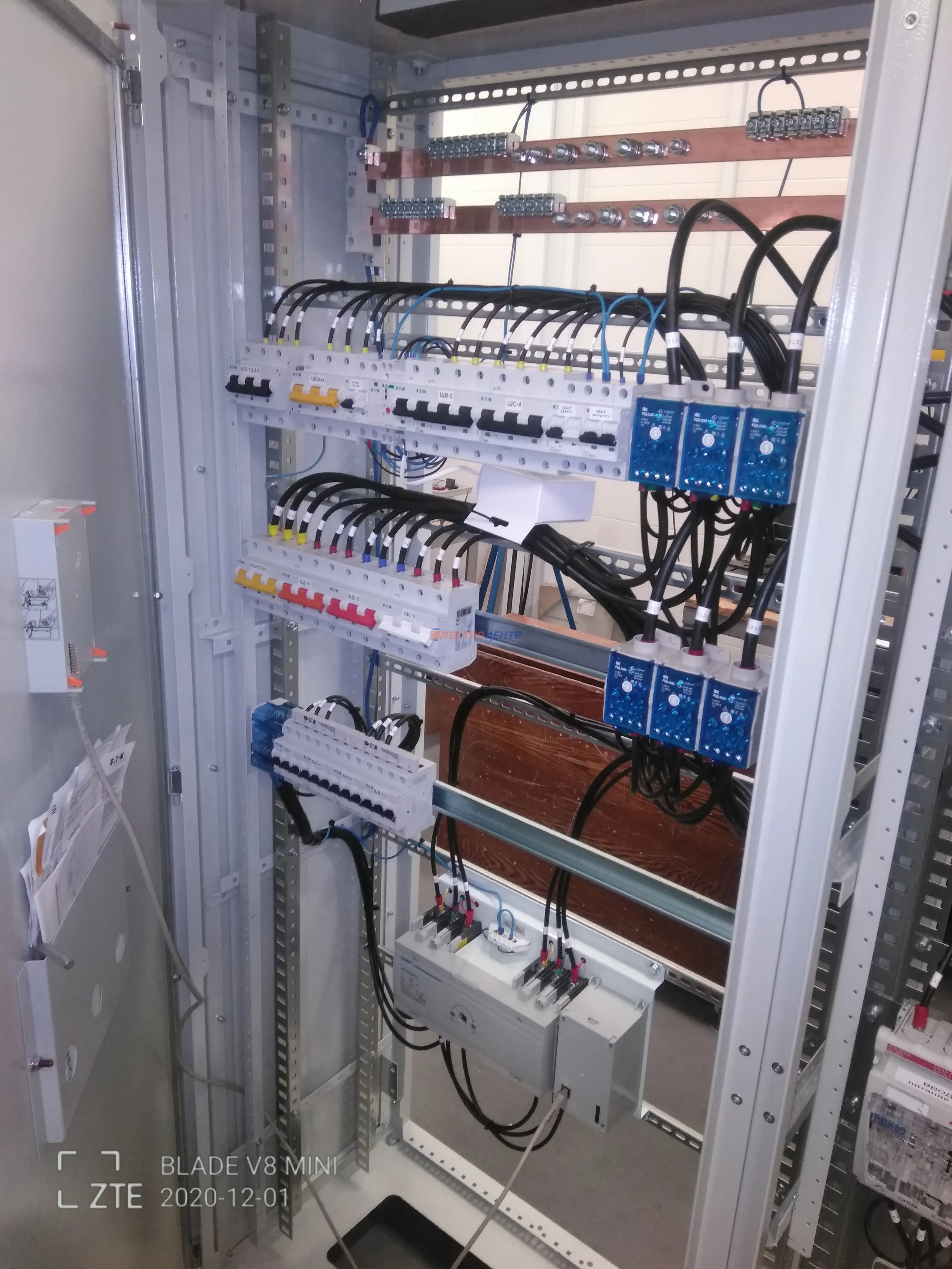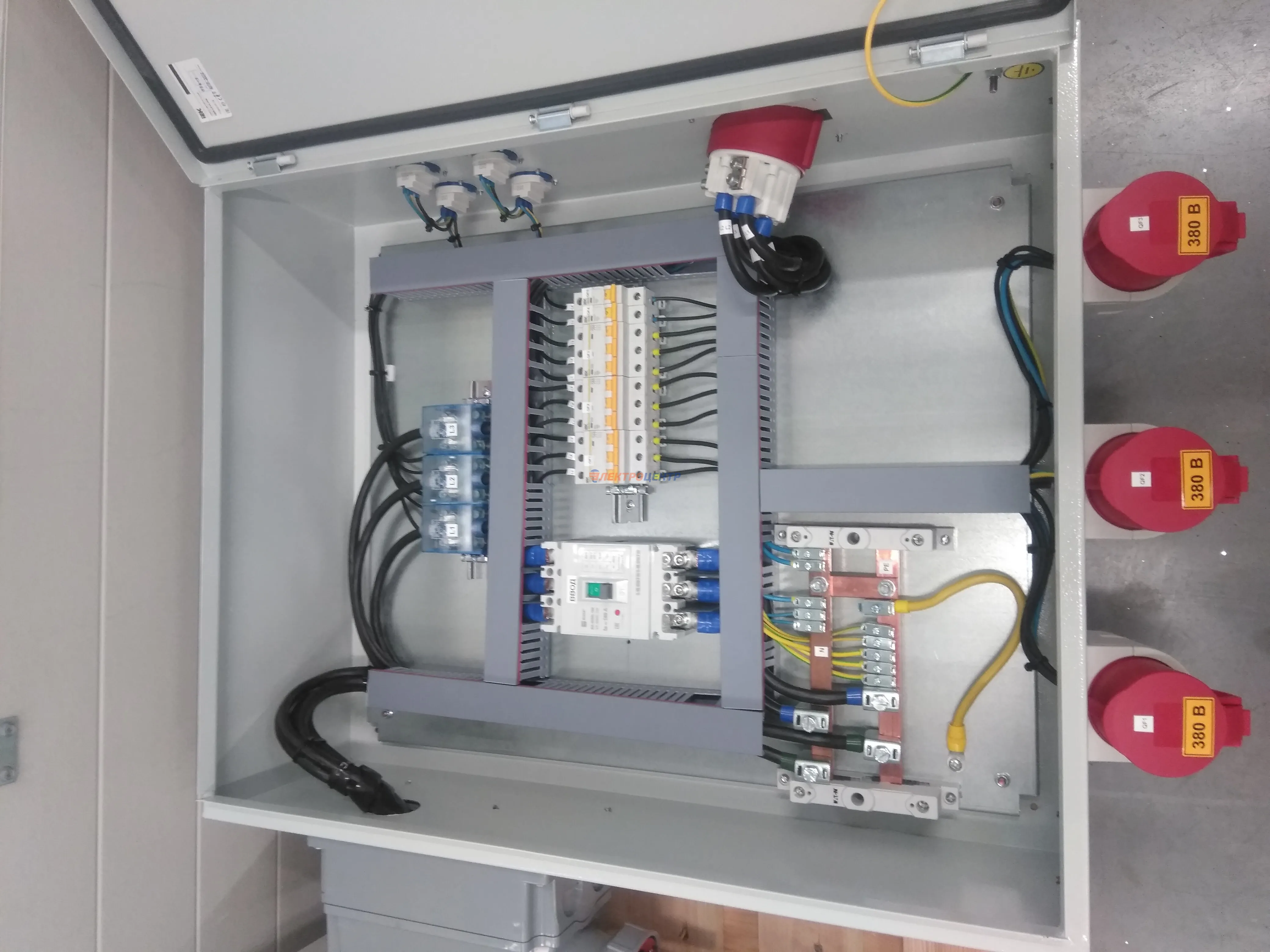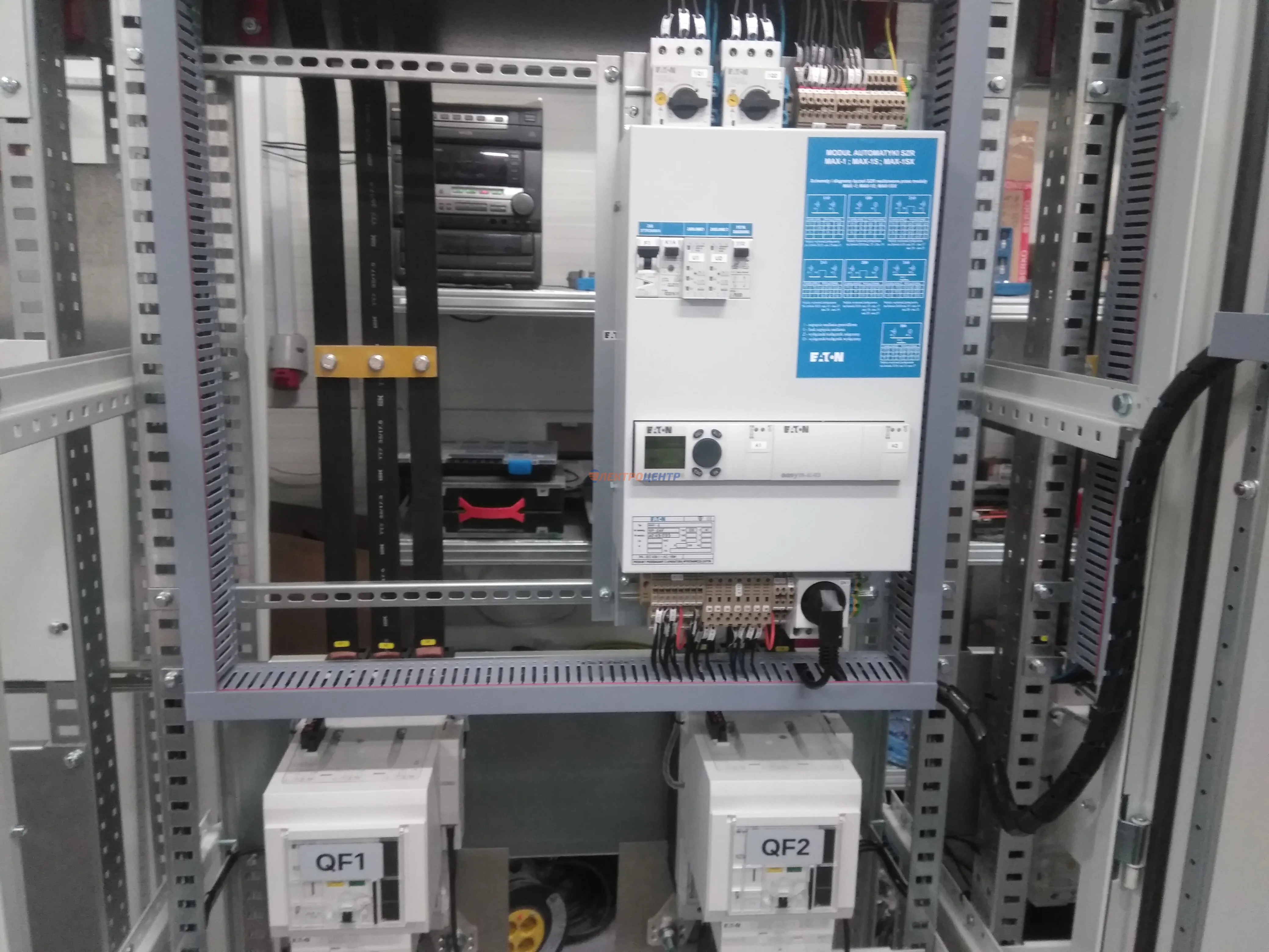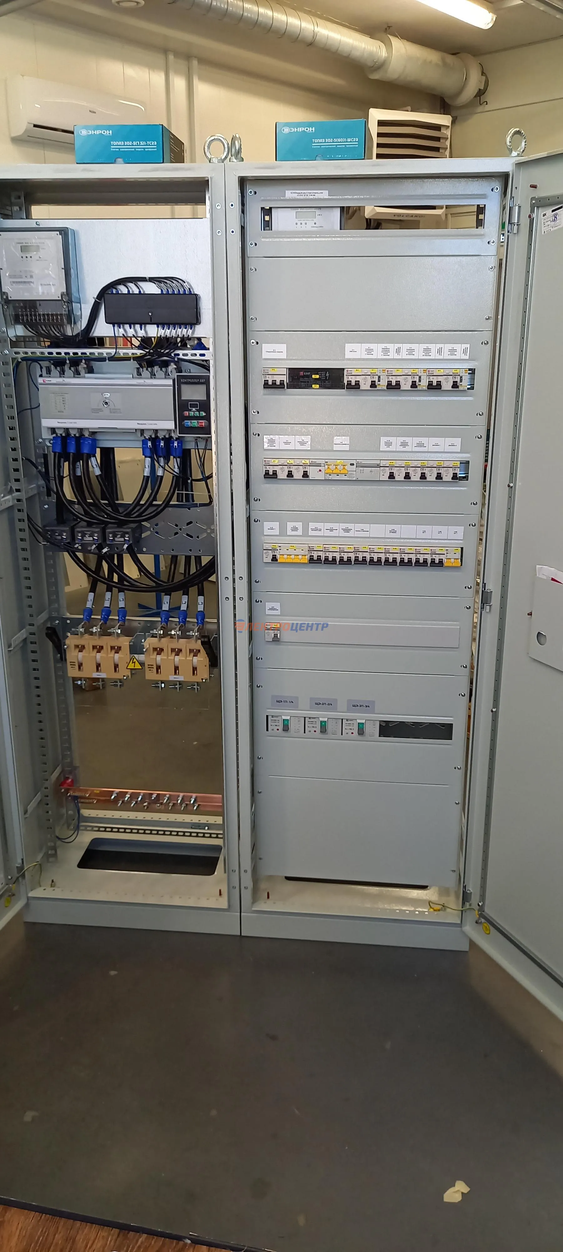 | 47 | ВРУ на 2500 А торгового центра в г. Калининград | «EATON”, “ETI”, “APATOR”, счётчики энергии ЭЛЬСТЕР МЕТРОНИКА, трансформаторы «FRER”, АВР типа MAX-3 «EATON” на 6 выключателей (изменённая схема согласно требованию заказчика). Вводные выключатели типа IZMX40, NZMN4. Оболочка типа “xENERGY” (EATON). На видео представлена проверка сработки выключателей в зависимости от присутствия напряжения на вводах. | Посмотреть фото |