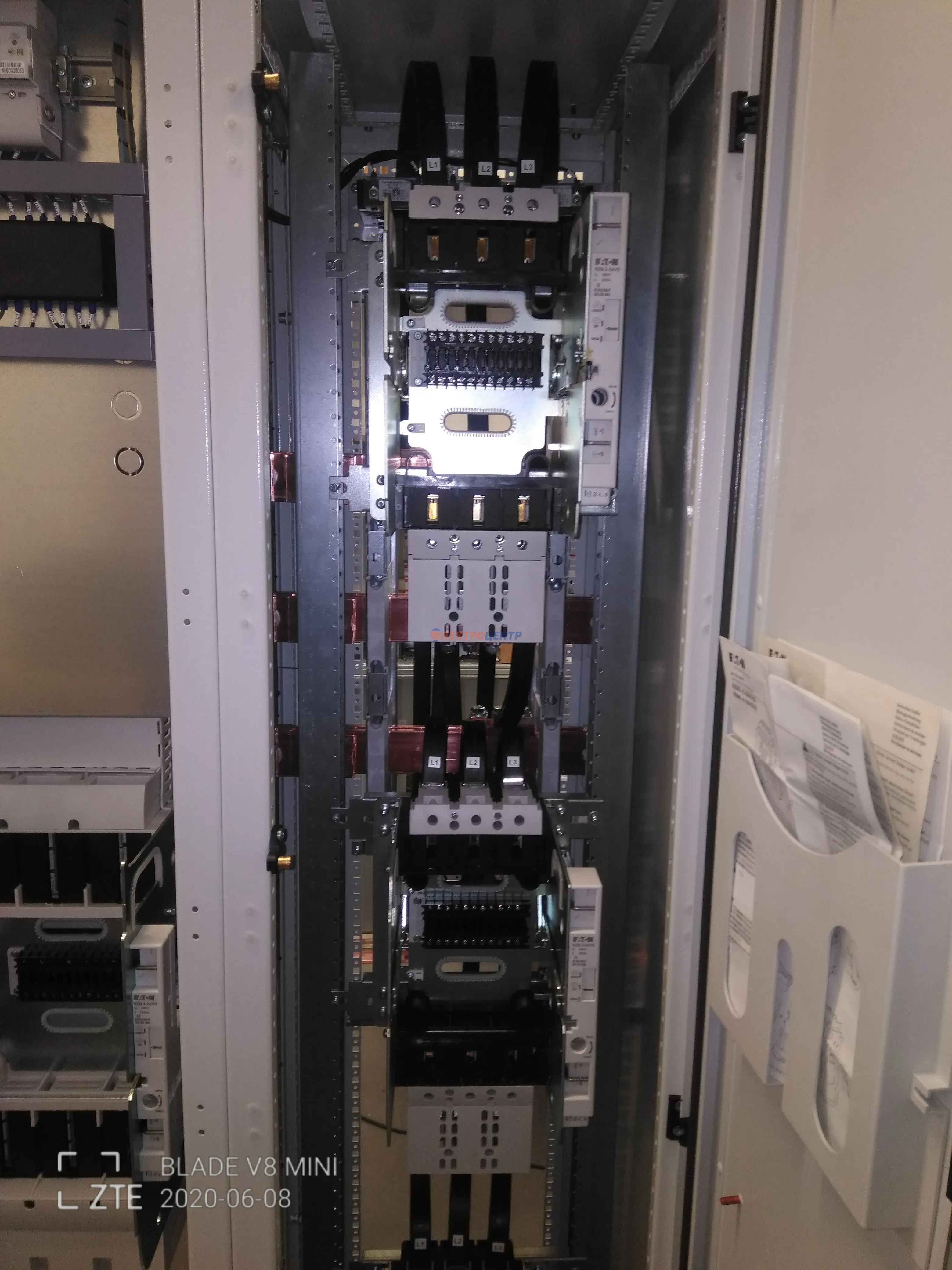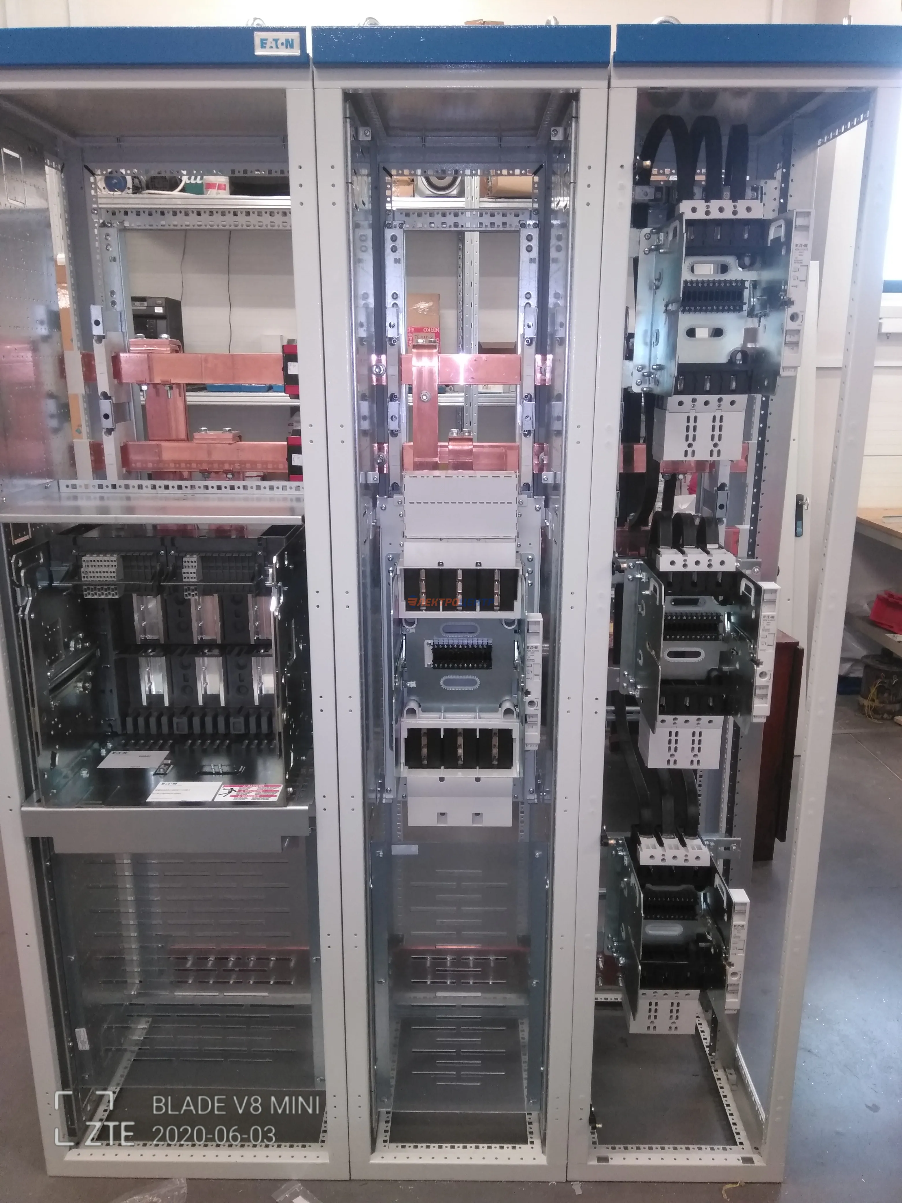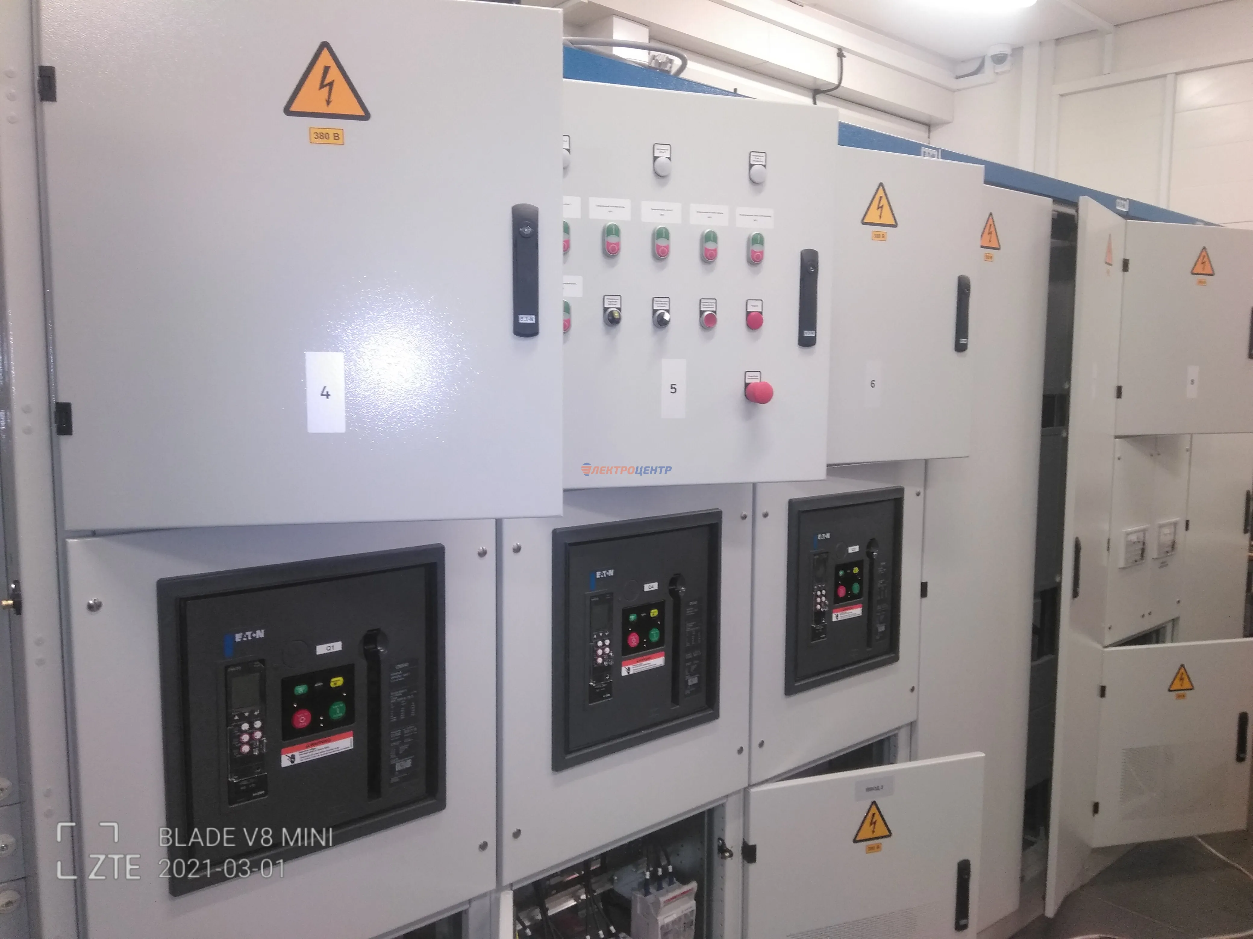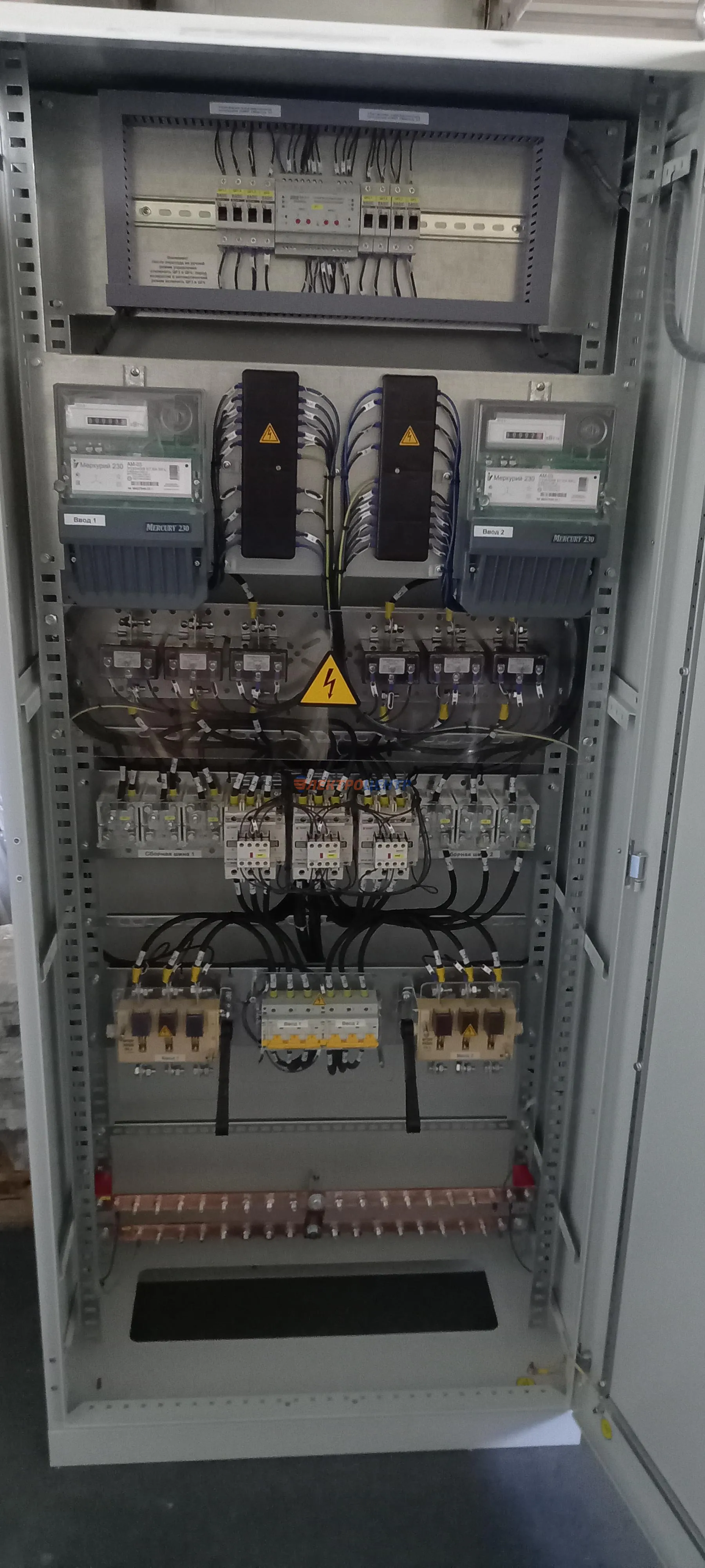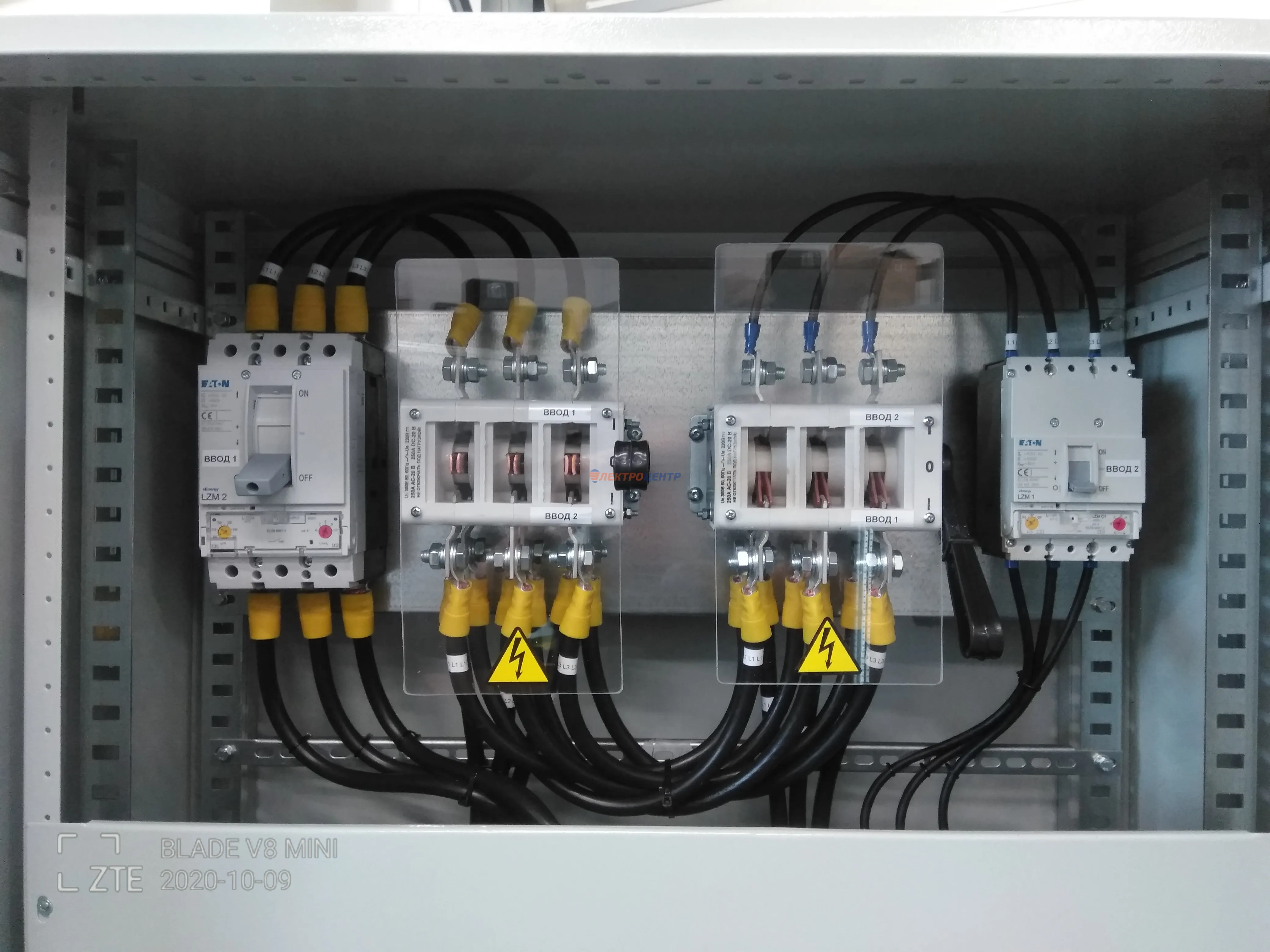 | 47 | ВРУ на 2500 А торгового центра в г. Калининград | «EATON”, “ETI”, “APATOR”, счётчики энергии ЭЛЬСТЕР МЕТРОНИКА, трансформаторы «FRER”, АВР типа MAX-3 «EATON” на 6 выключателей (изменённая схема согласно требованию заказчика). Вводные выключатели типа IZMX40, NZMN4. Оболочка типа “xENERGY” (EATON). На видео представлена проверка сработки выключателей в зависимости от присутствия напряжения на вводах. | Посмотреть фото |