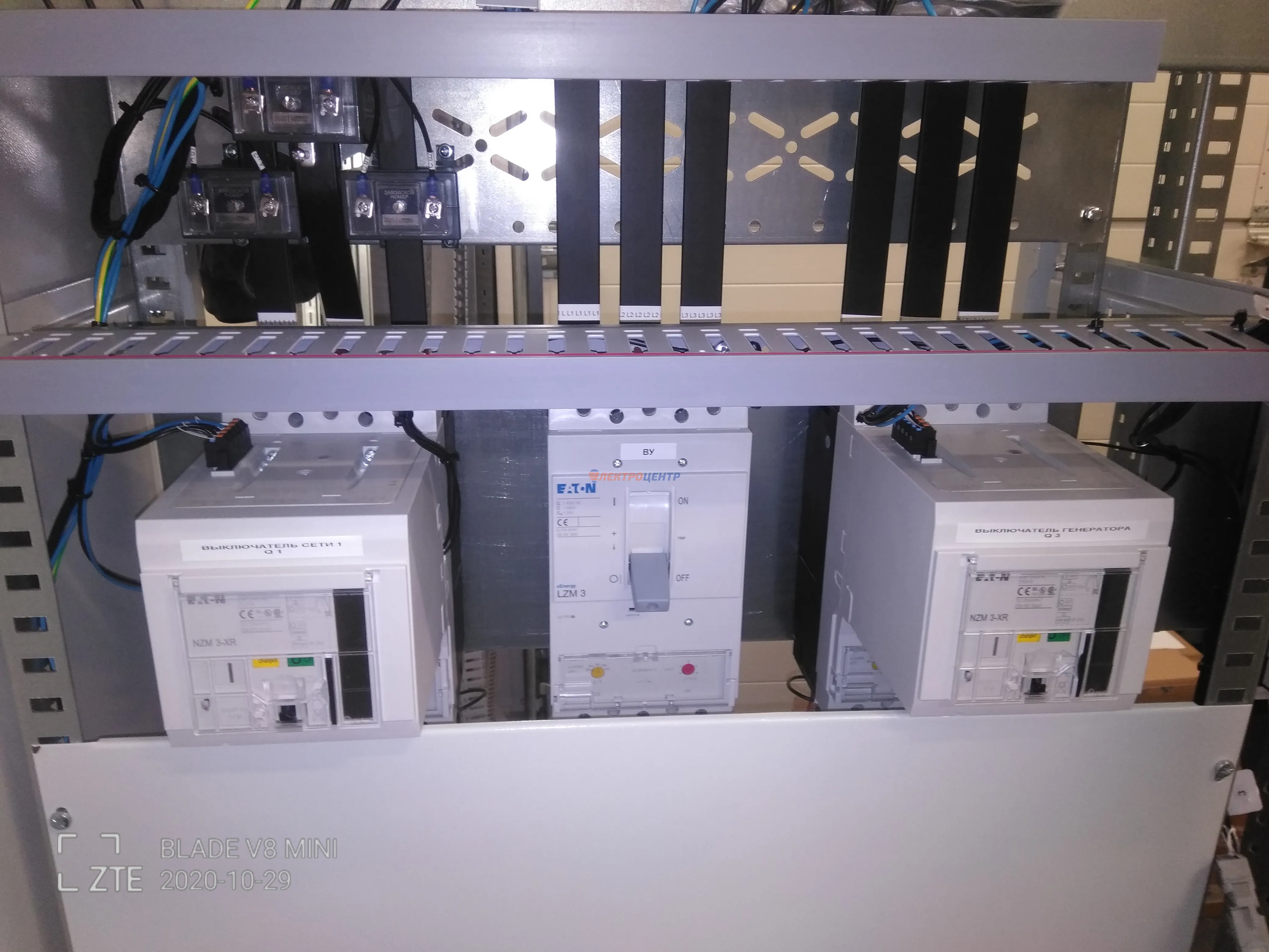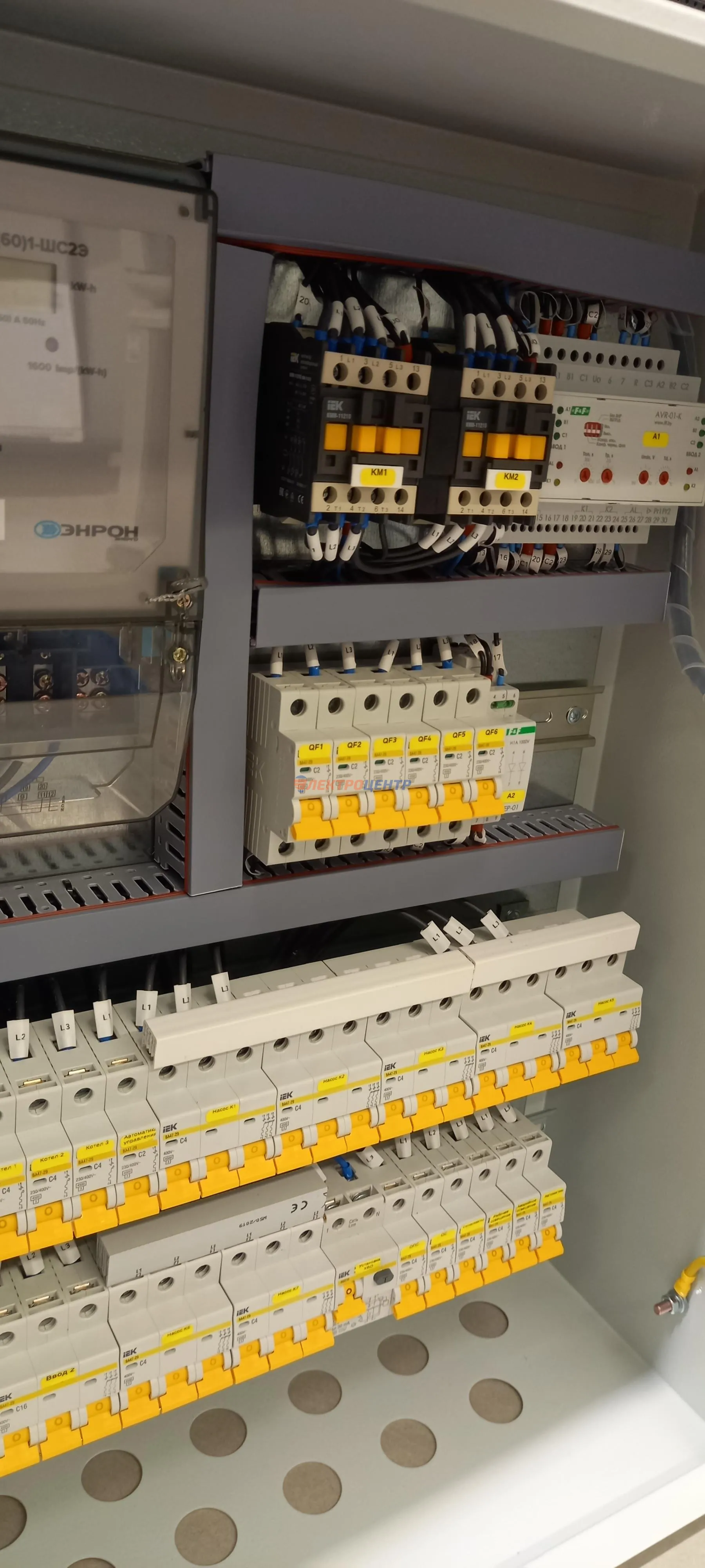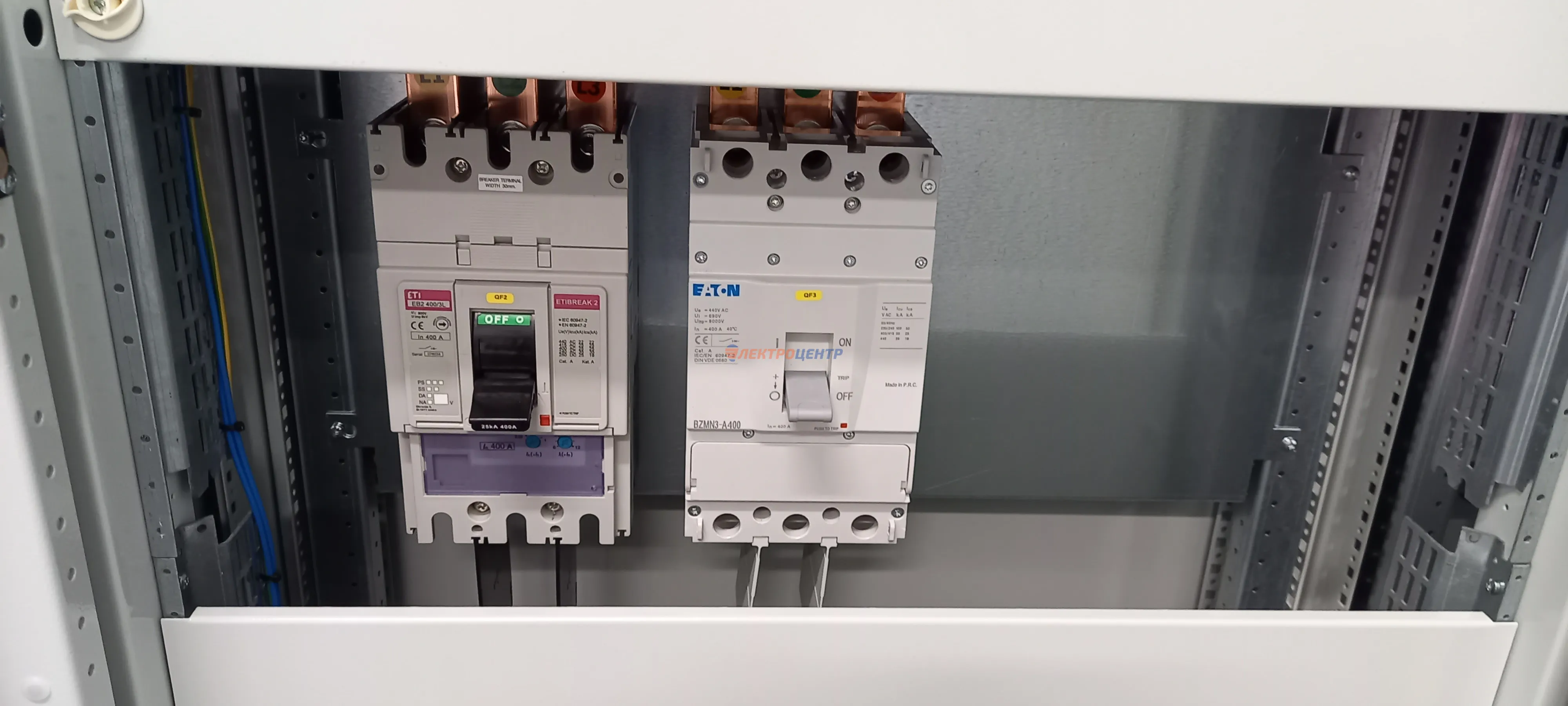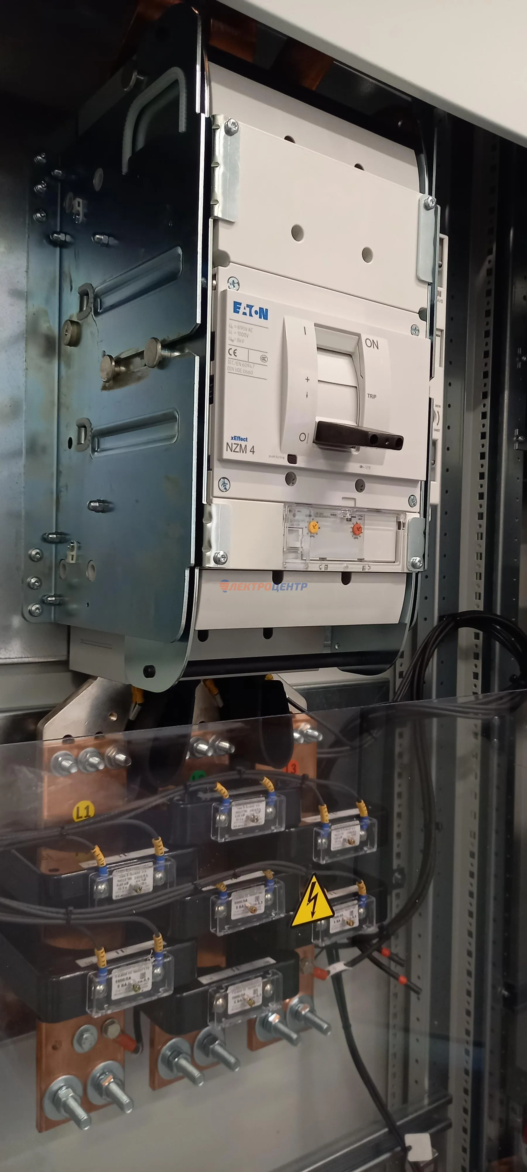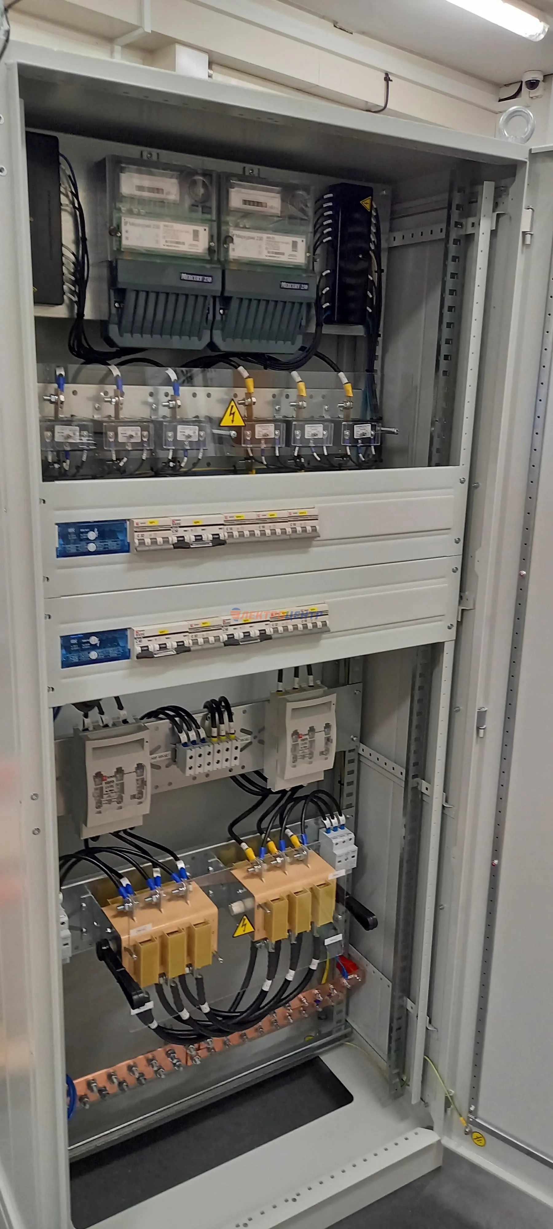 | 47 | ВРУ на 2500 А торгового центра в г. Калининград | «EATON”, “ETI”, “APATOR”, счётчики энергии ЭЛЬСТЕР МЕТРОНИКА, трансформаторы «FRER”, АВР типа MAX-3 «EATON” на 6 выключателей (изменённая схема согласно требованию заказчика). Вводные выключатели типа IZMX40, NZMN4. Оболочка типа “xENERGY” (EATON). На видео представлена проверка сработки выключателей в зависимости от присутствия напряжения на вводах. | Посмотреть фото |