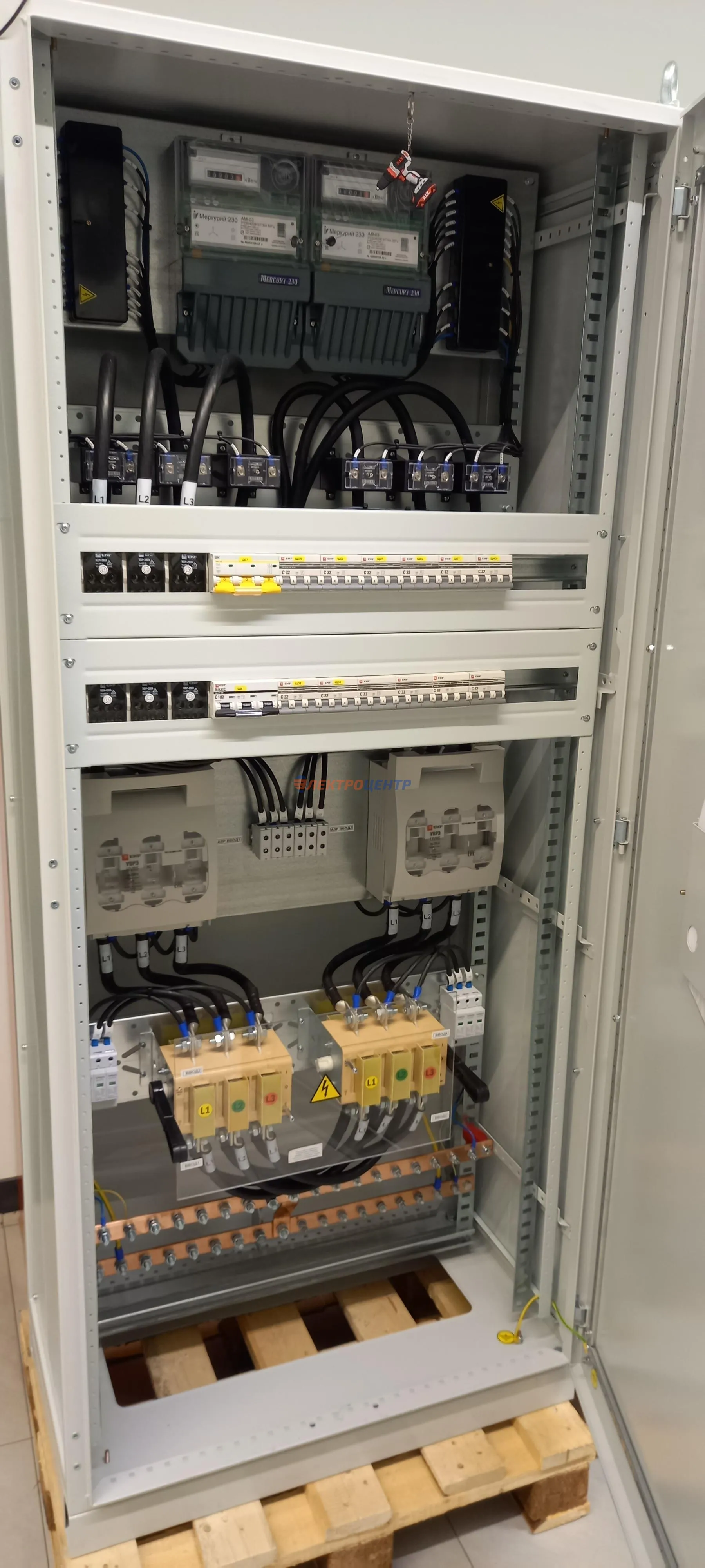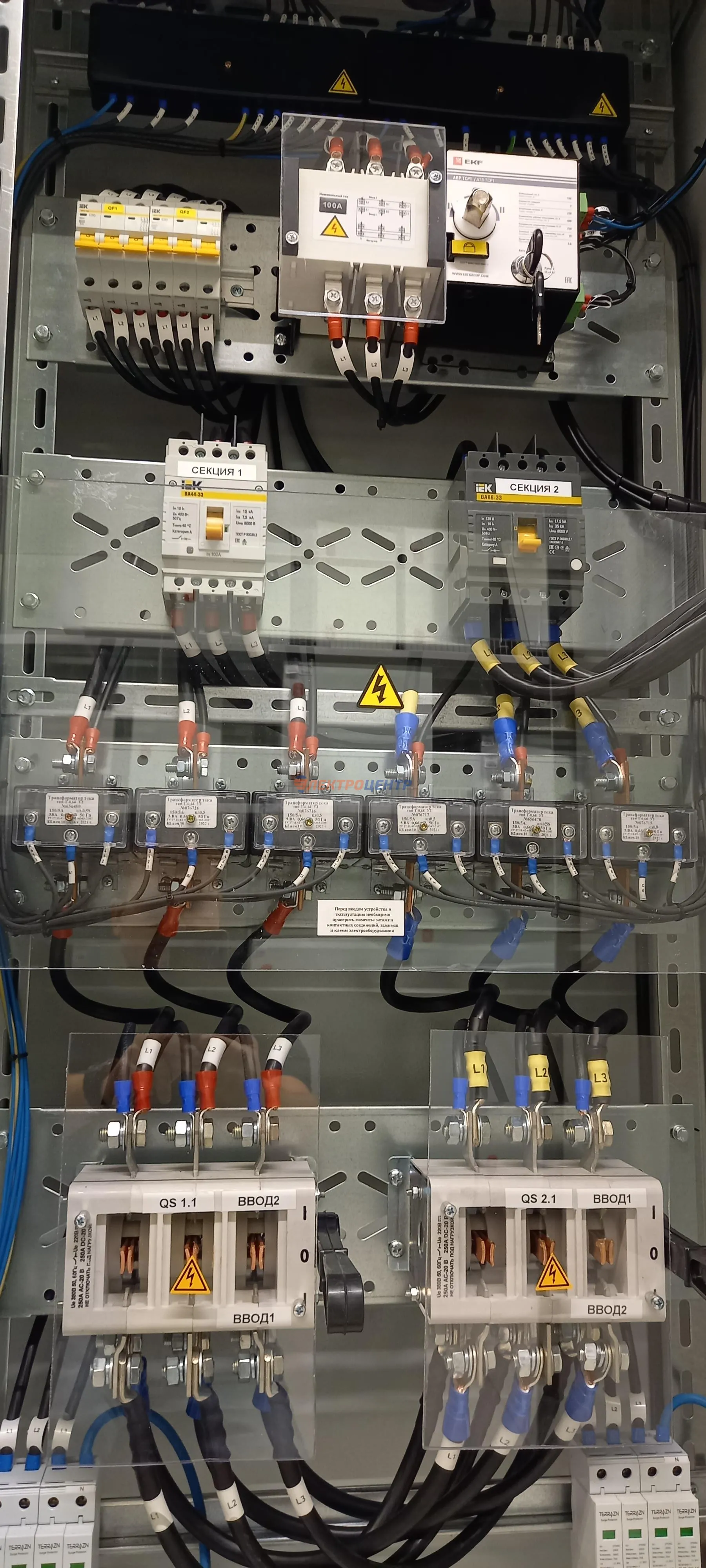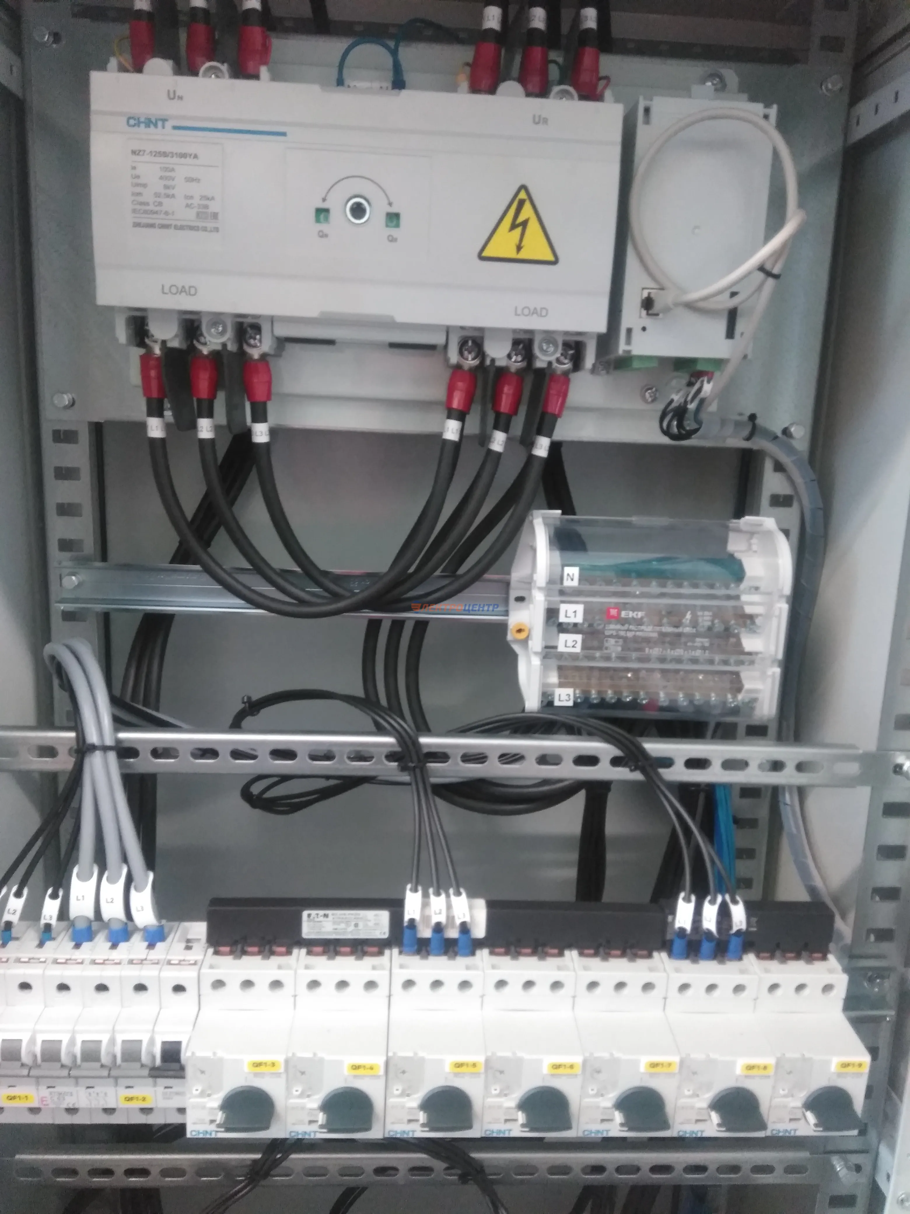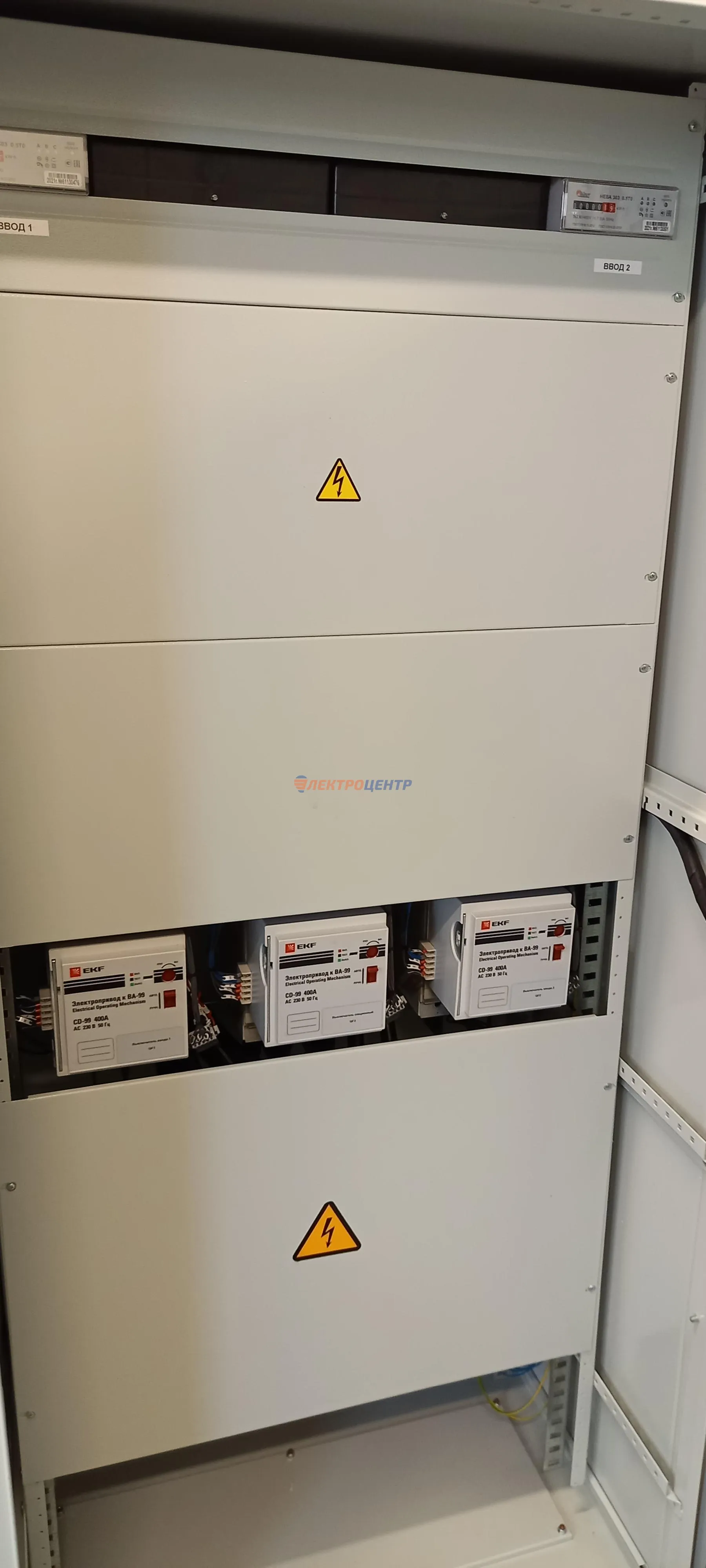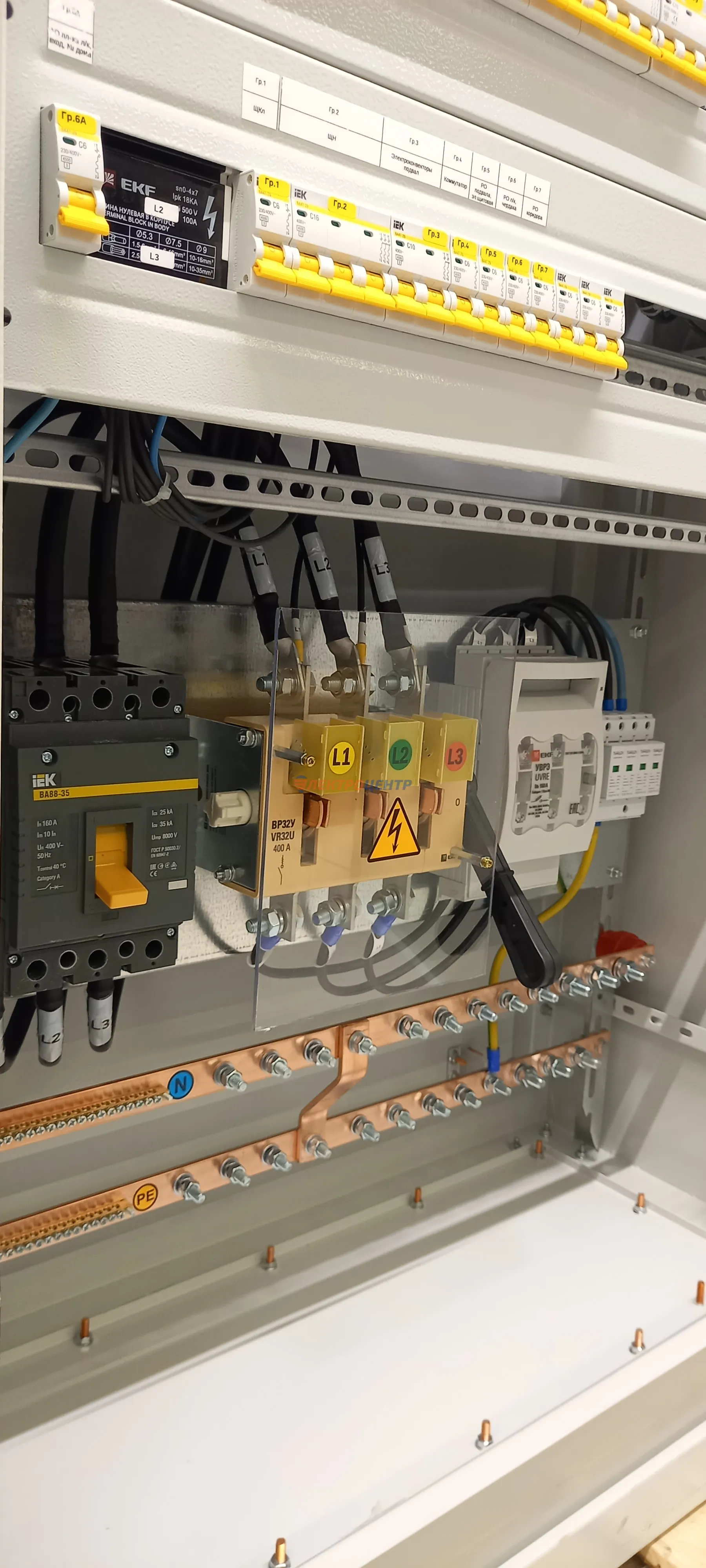 | 47 | ВРУ на 2500 А торгового центра в г. Калининград | «EATON”, “ETI”, “APATOR”, счётчики энергии ЭЛЬСТЕР МЕТРОНИКА, трансформаторы «FRER”, АВР типа MAX-3 «EATON” на 6 выключателей (изменённая схема согласно требованию заказчика). Вводные выключатели типа IZMX40, NZMN4. Оболочка типа “xENERGY” (EATON). На видео представлена проверка сработки выключателей в зависимости от присутствия напряжения на вводах. | Посмотреть фото |