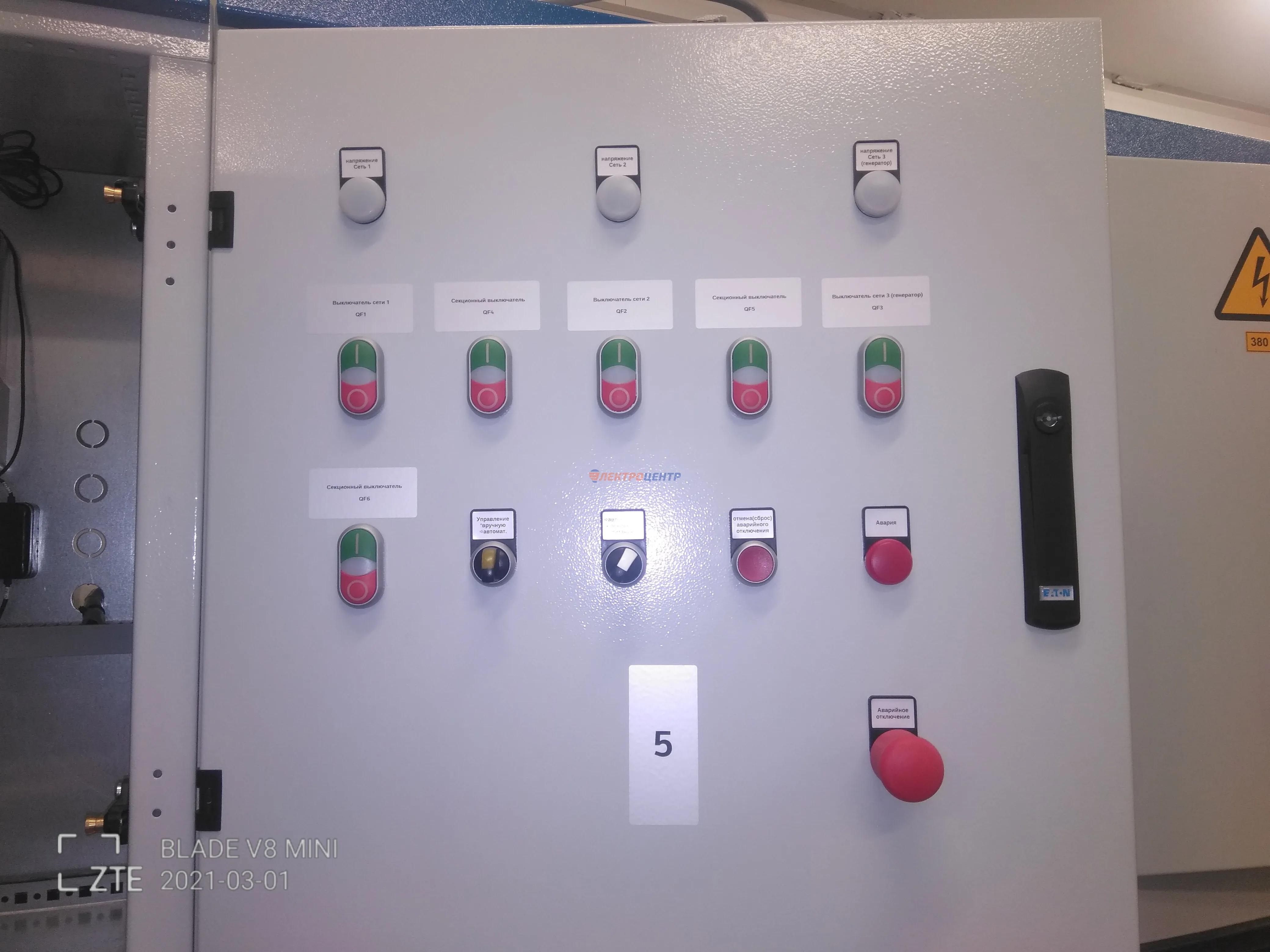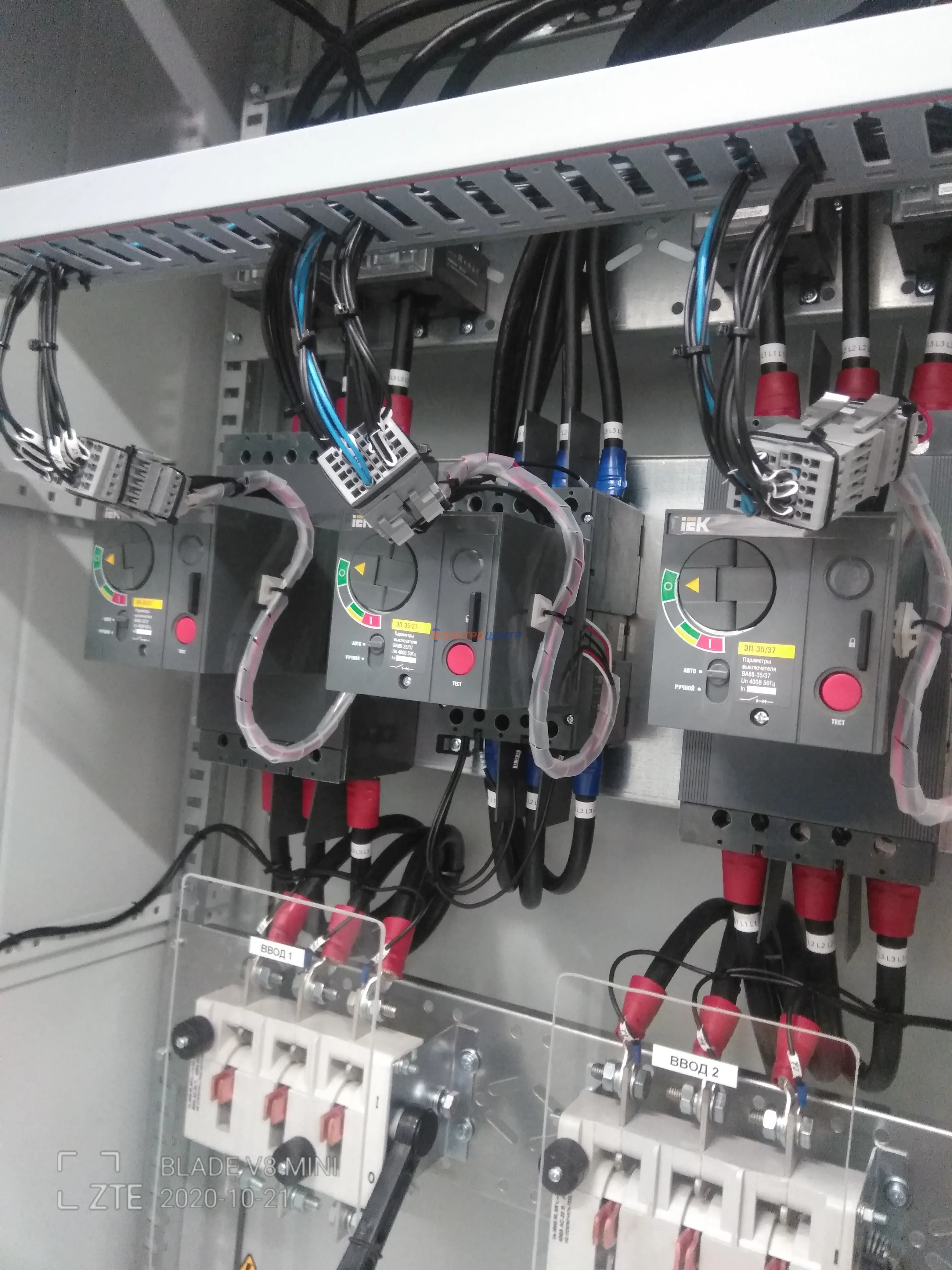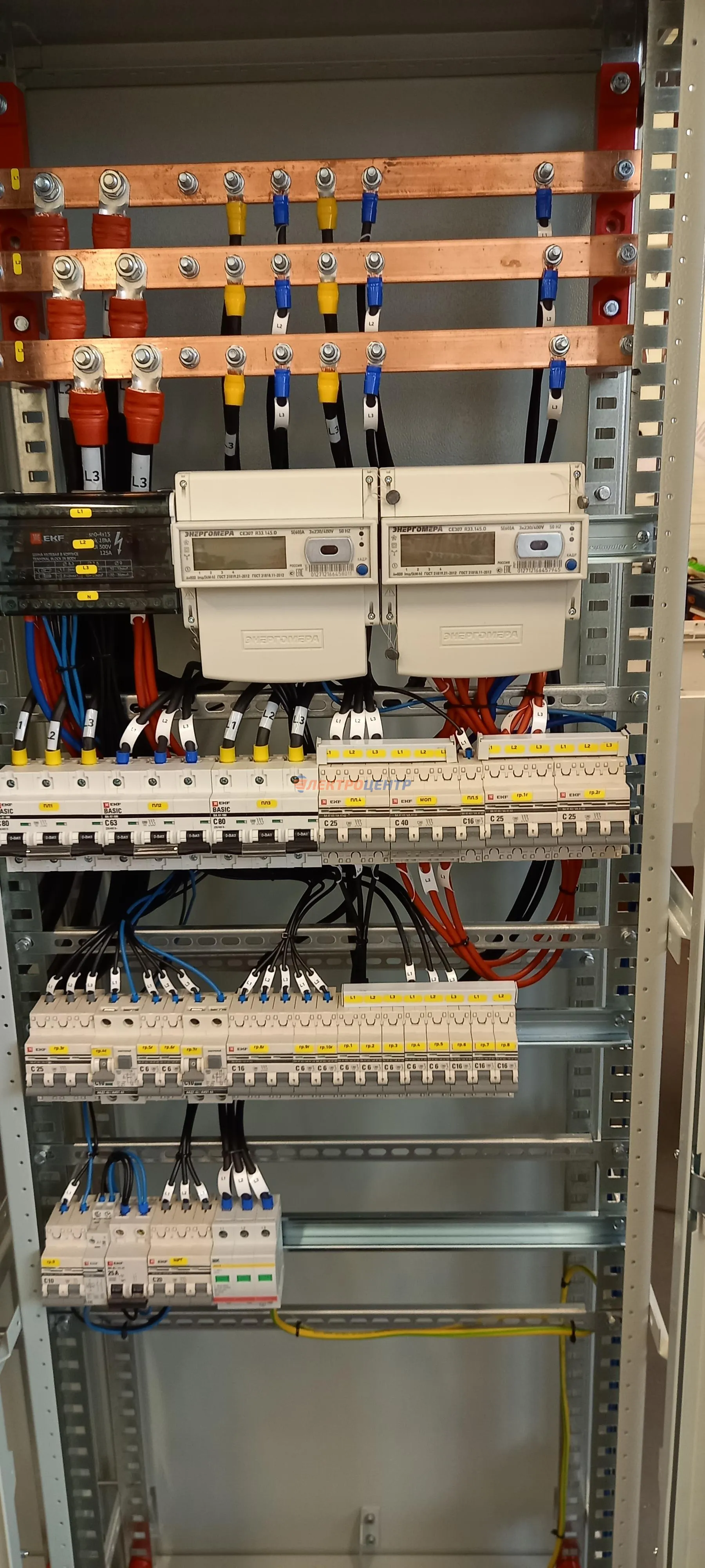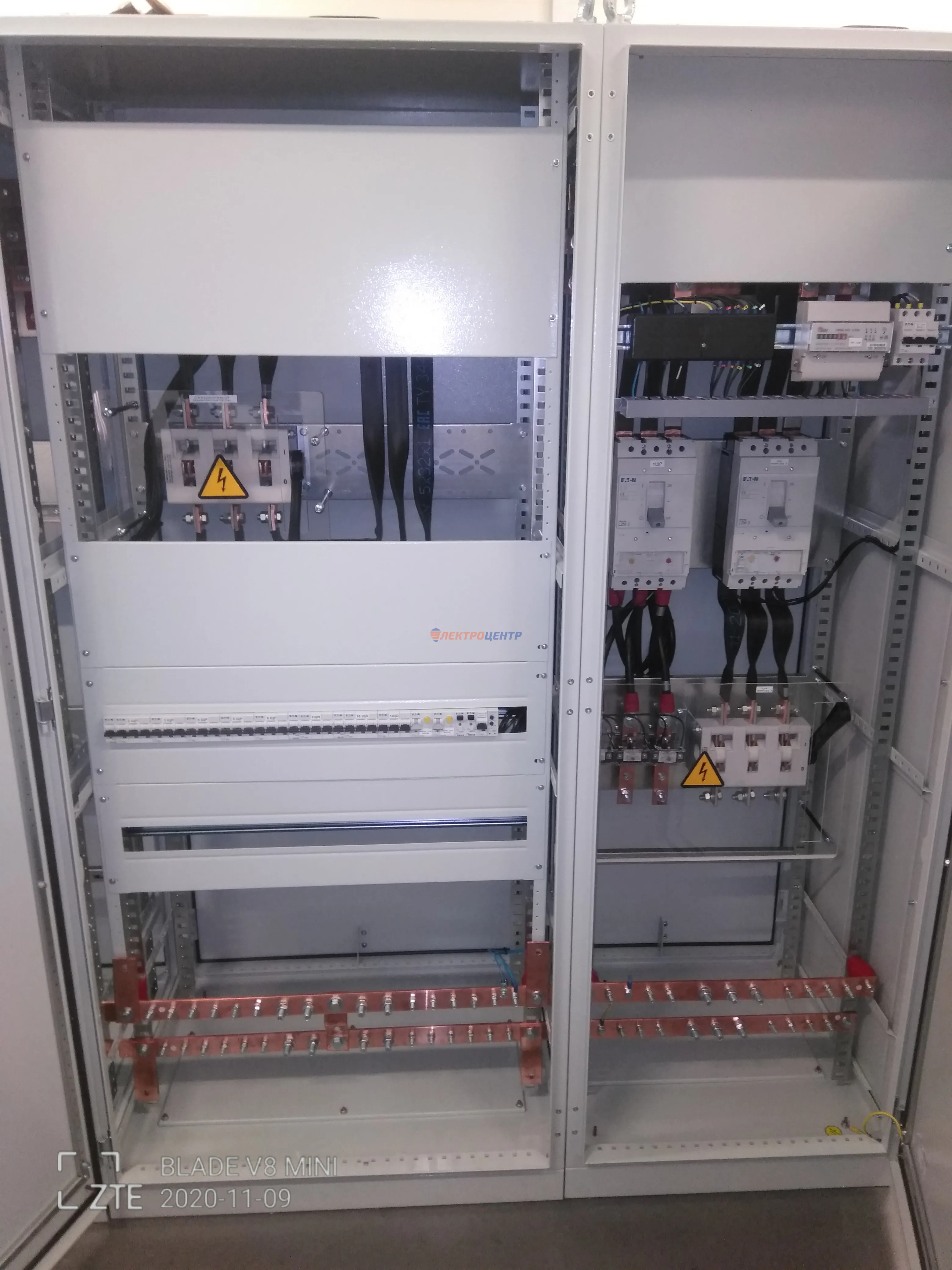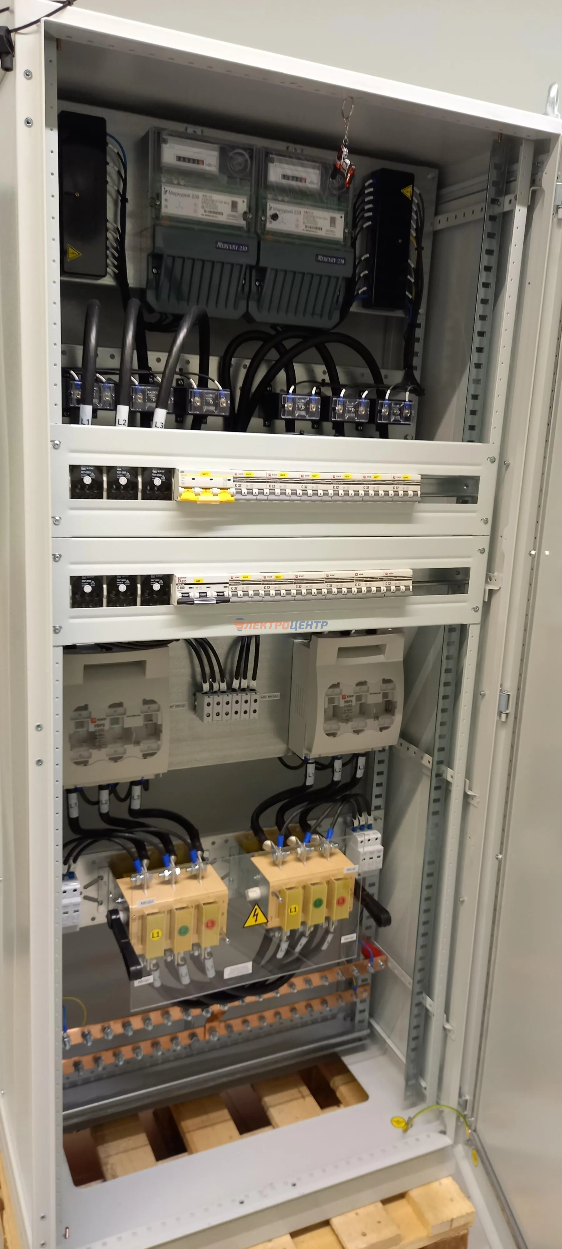 | 47 | ВРУ на 2500 А торгового центра в г. Калининград | «EATON”, “ETI”, “APATOR”, счётчики энергии ЭЛЬСТЕР МЕТРОНИКА, трансформаторы «FRER”, АВР типа MAX-3 «EATON” на 6 выключателей (изменённая схема согласно требованию заказчика). Вводные выключатели типа IZMX40, NZMN4. Оболочка типа “xENERGY” (EATON). На видео представлена проверка сработки выключателей в зависимости от присутствия напряжения на вводах. | Посмотреть фото |
