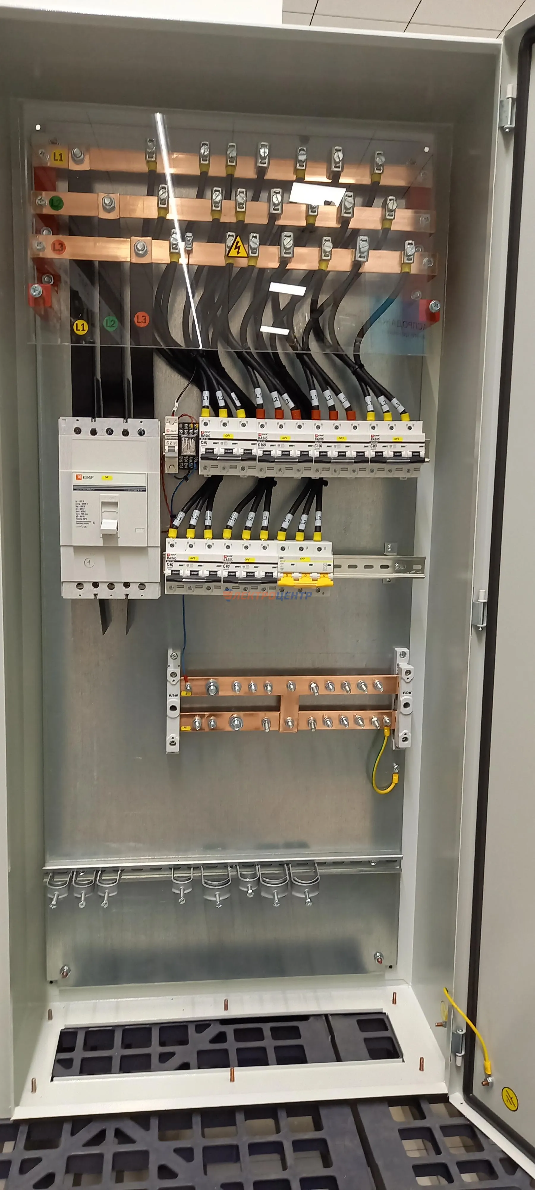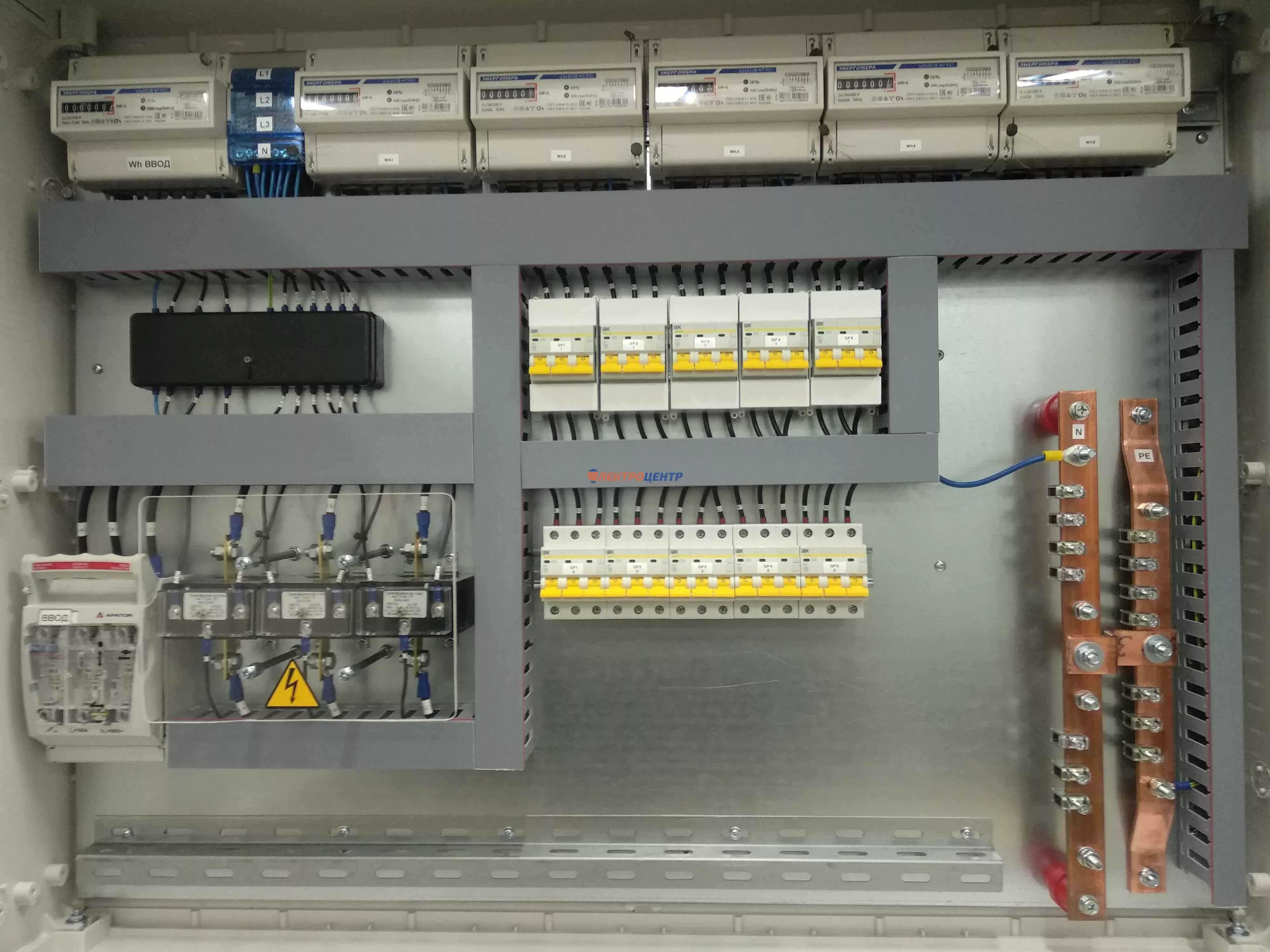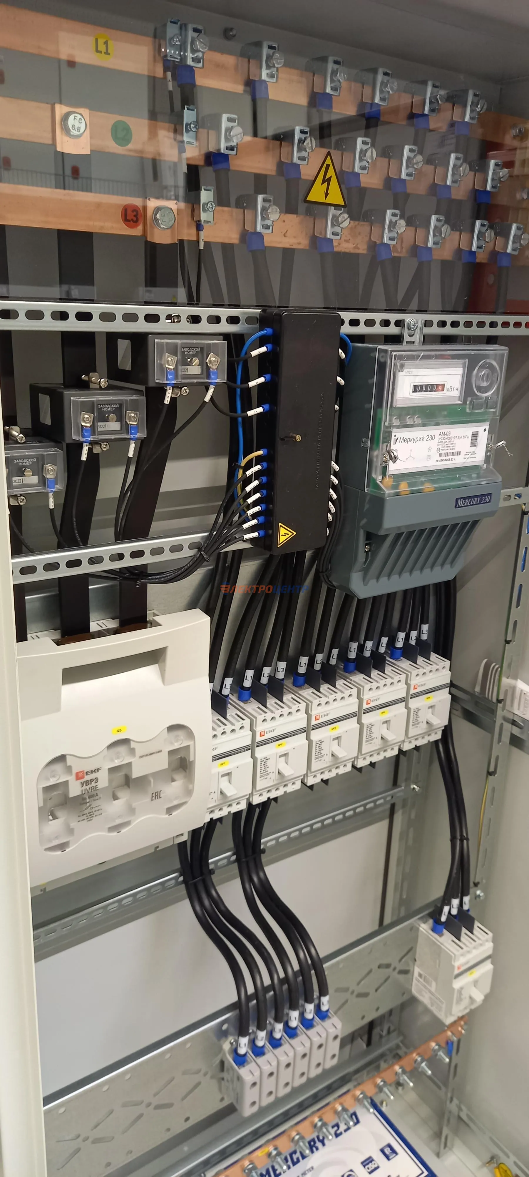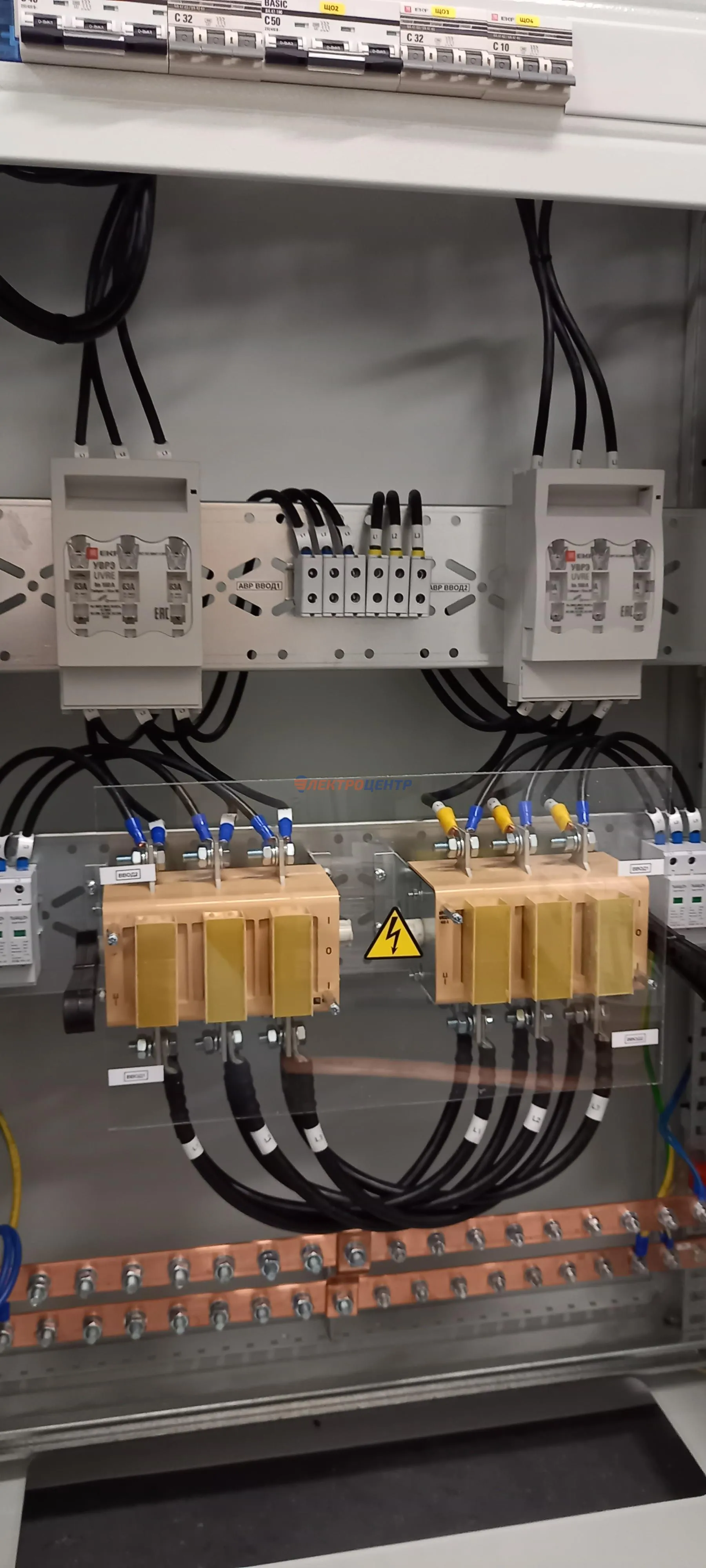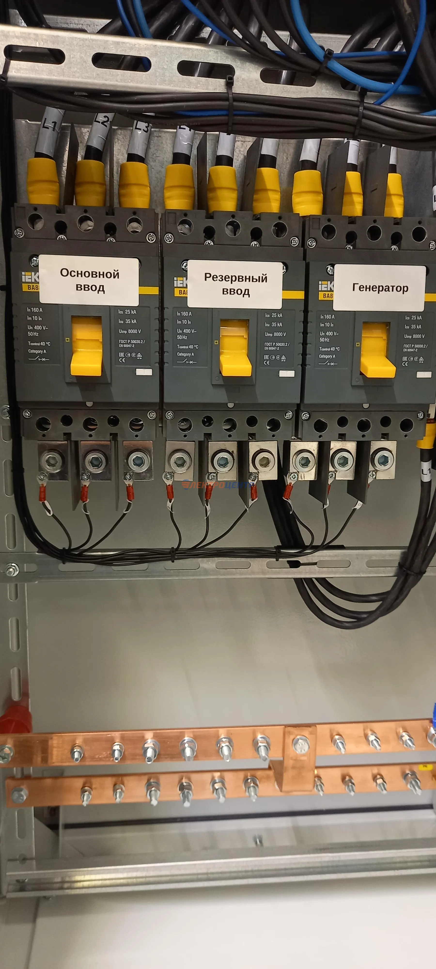 | 47 | ВРУ на 2500 А торгового центра в г. Калининград | «EATON”, “ETI”, “APATOR”, счётчики энергии ЭЛЬСТЕР МЕТРОНИКА, трансформаторы «FRER”, АВР типа MAX-3 «EATON” на 6 выключателей (изменённая схема согласно требованию заказчика). Вводные выключатели типа IZMX40, NZMN4. Оболочка типа “xENERGY” (EATON). На видео представлена проверка сработки выключателей в зависимости от присутствия напряжения на вводах. | Посмотреть фото |
