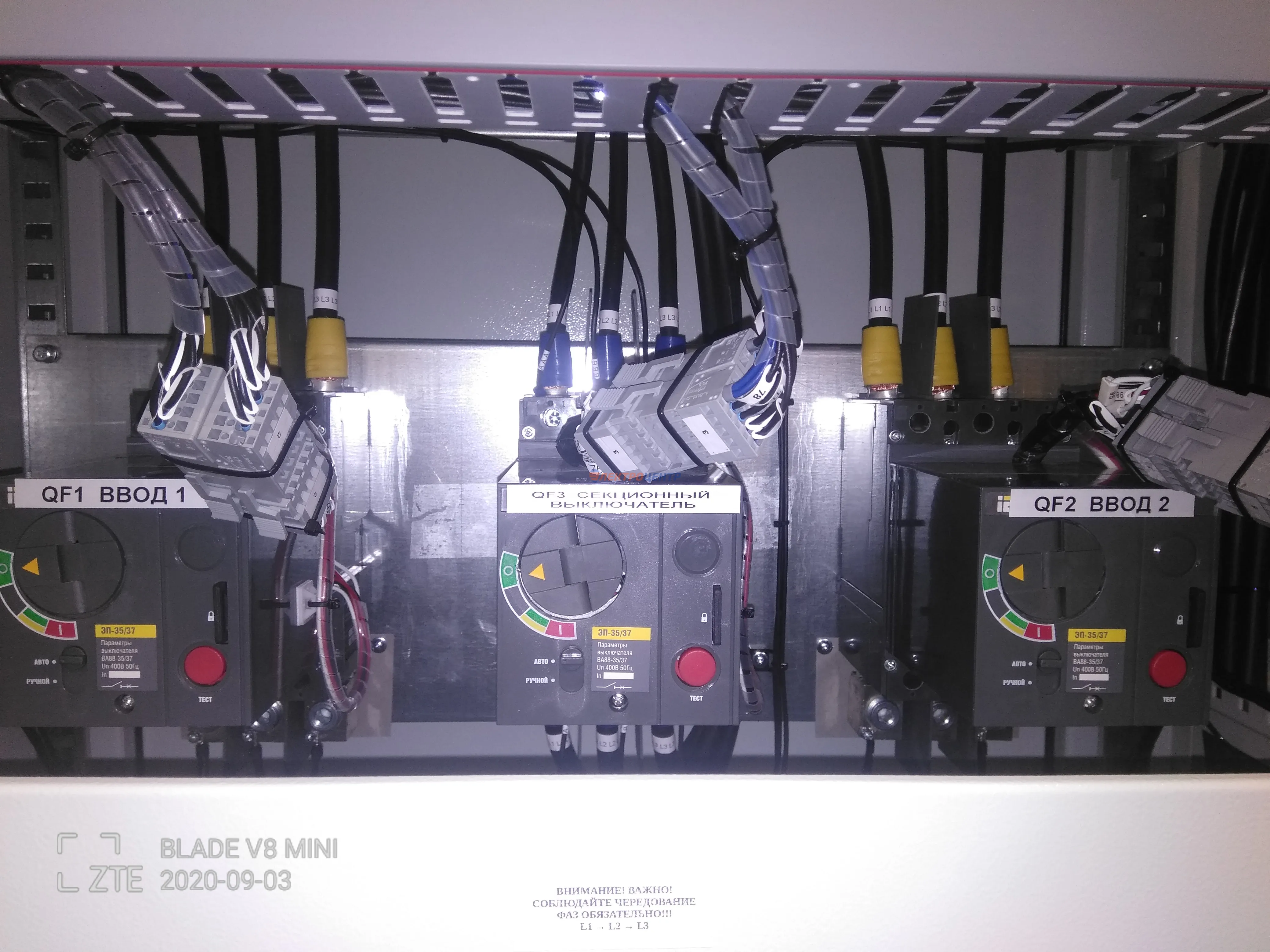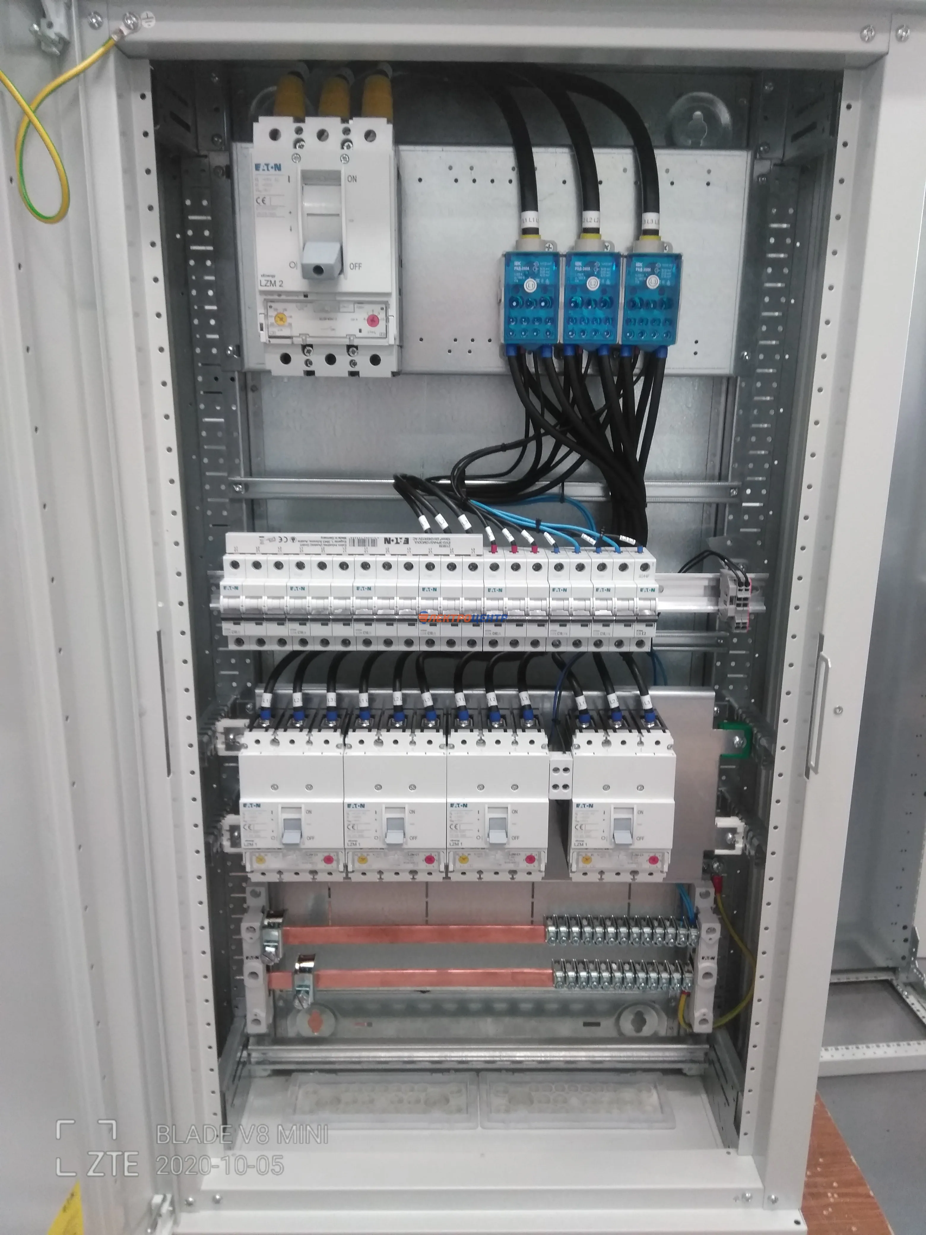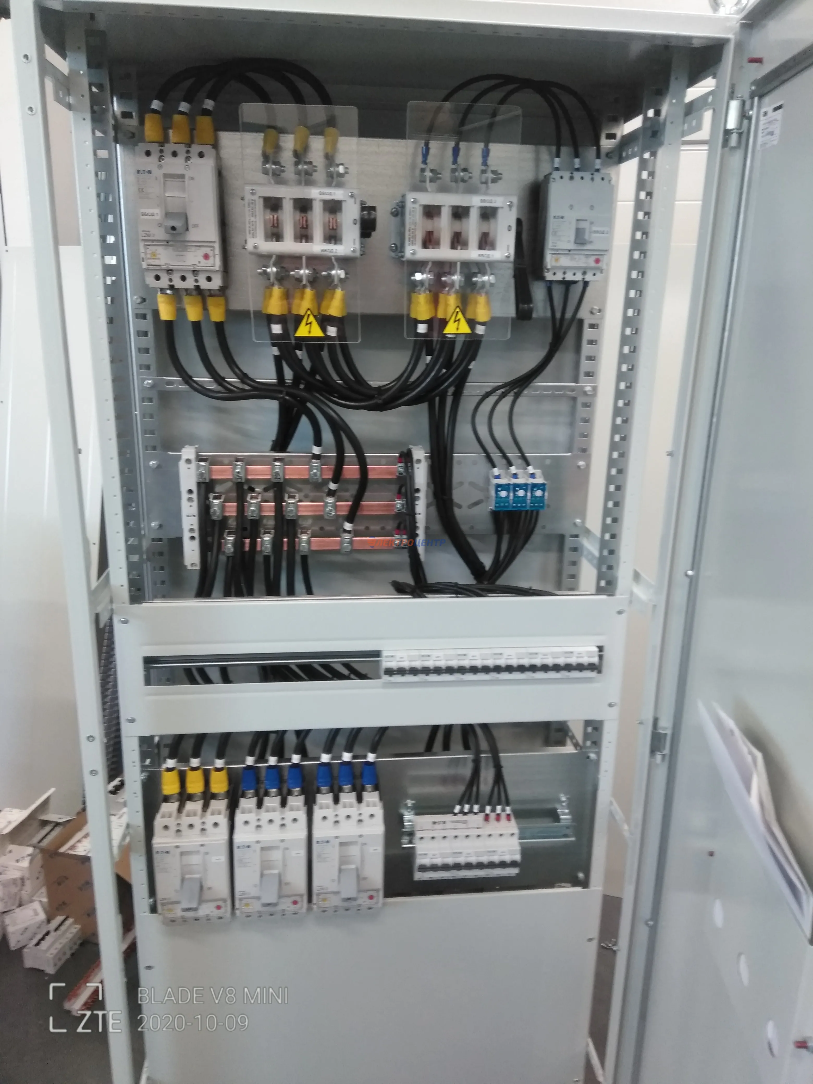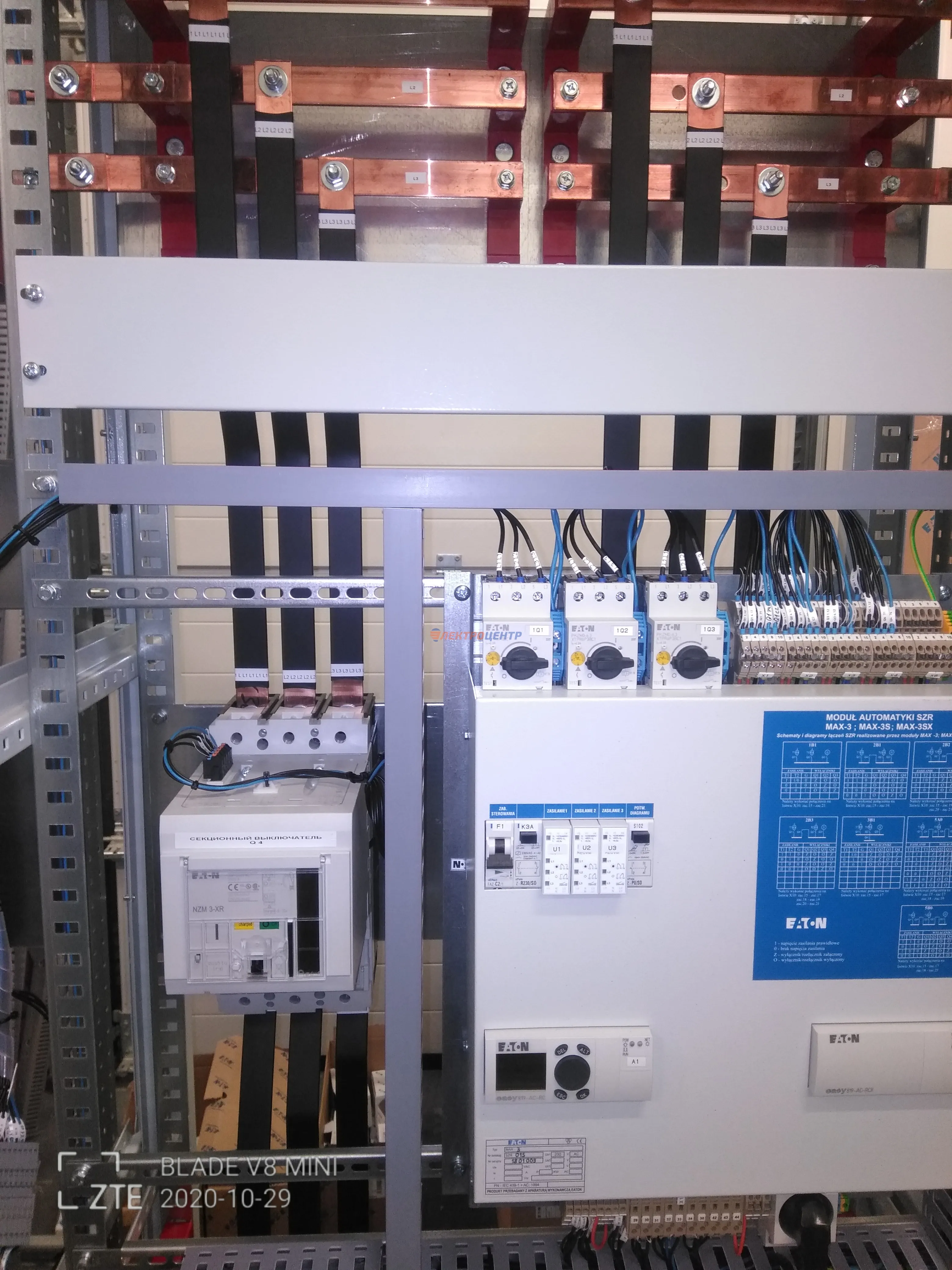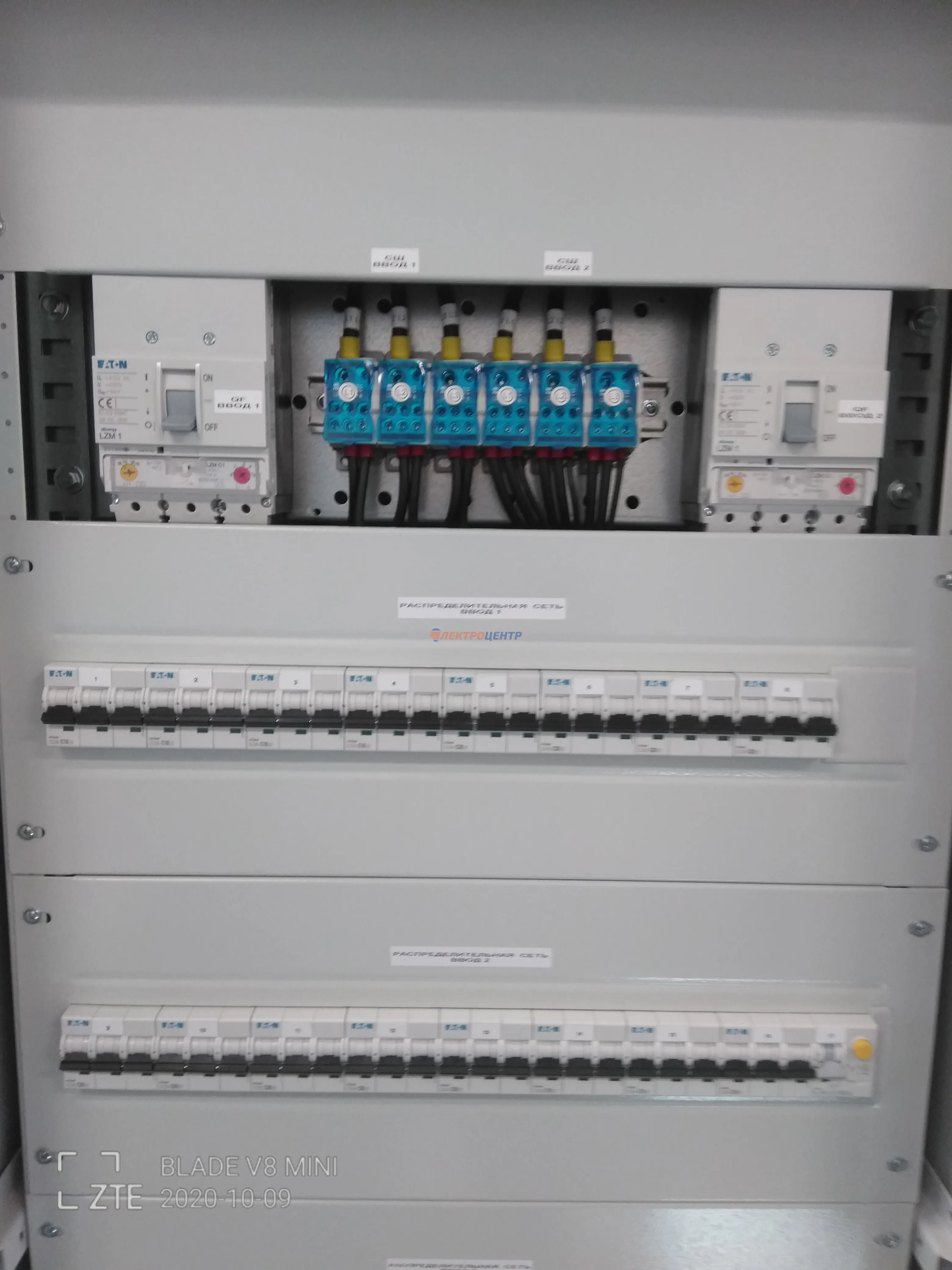| 47 | ВРУ на 2500 А торгового центра в г. Калининград | «EATON”, “ETI”, “APATOR”, счётчики энергии ЭЛЬСТЕР МЕТРОНИКА, трансформаторы «FRER”, АВР типа MAX-3 «EATON” на 6 выключателей (изменённая схема согласно требованию заказчика). Вводные выключатели типа IZMX40, NZMN4. Оболочка типа “xENERGY” (EATON). На видео представлена проверка сработки выключателей в зависимости от присутствия напряжения на вводах. | Посмотреть фото |