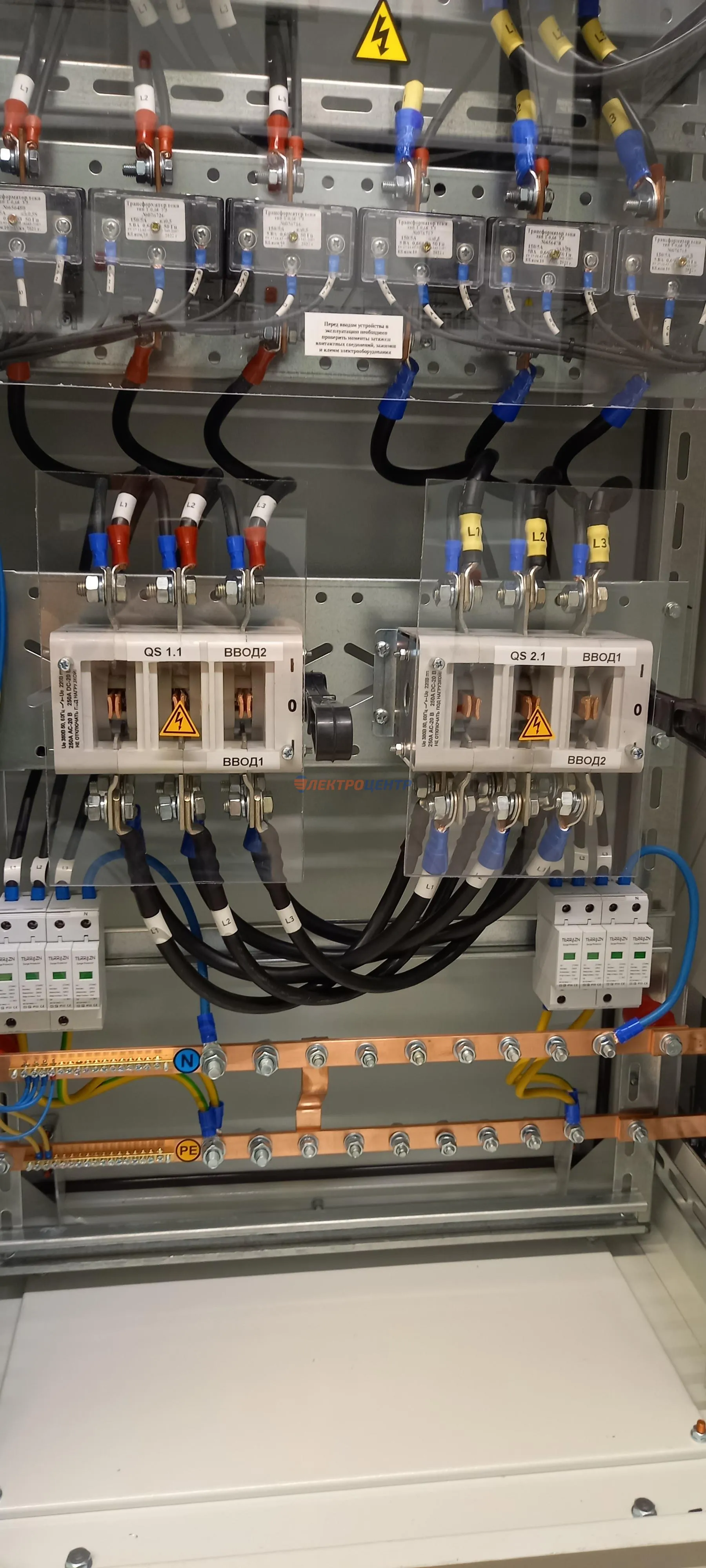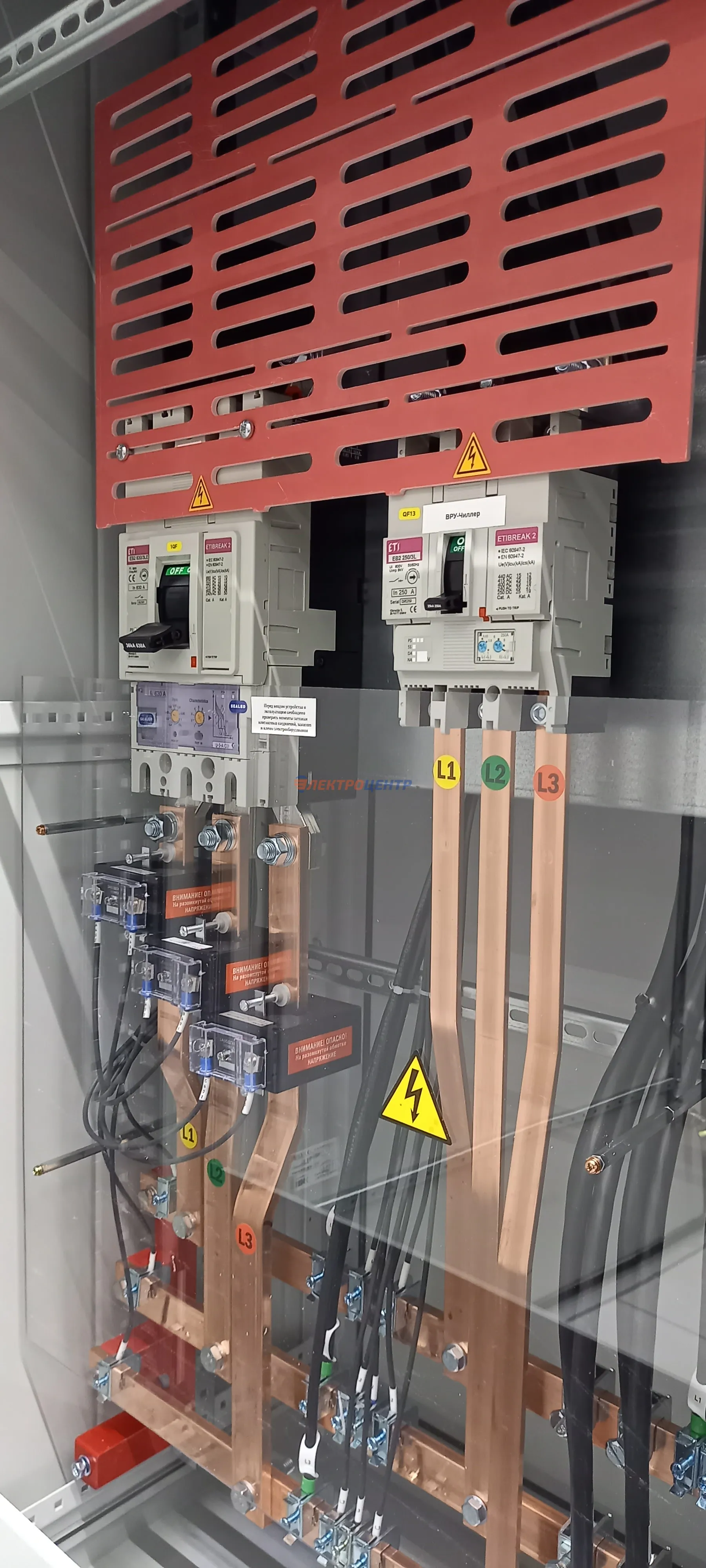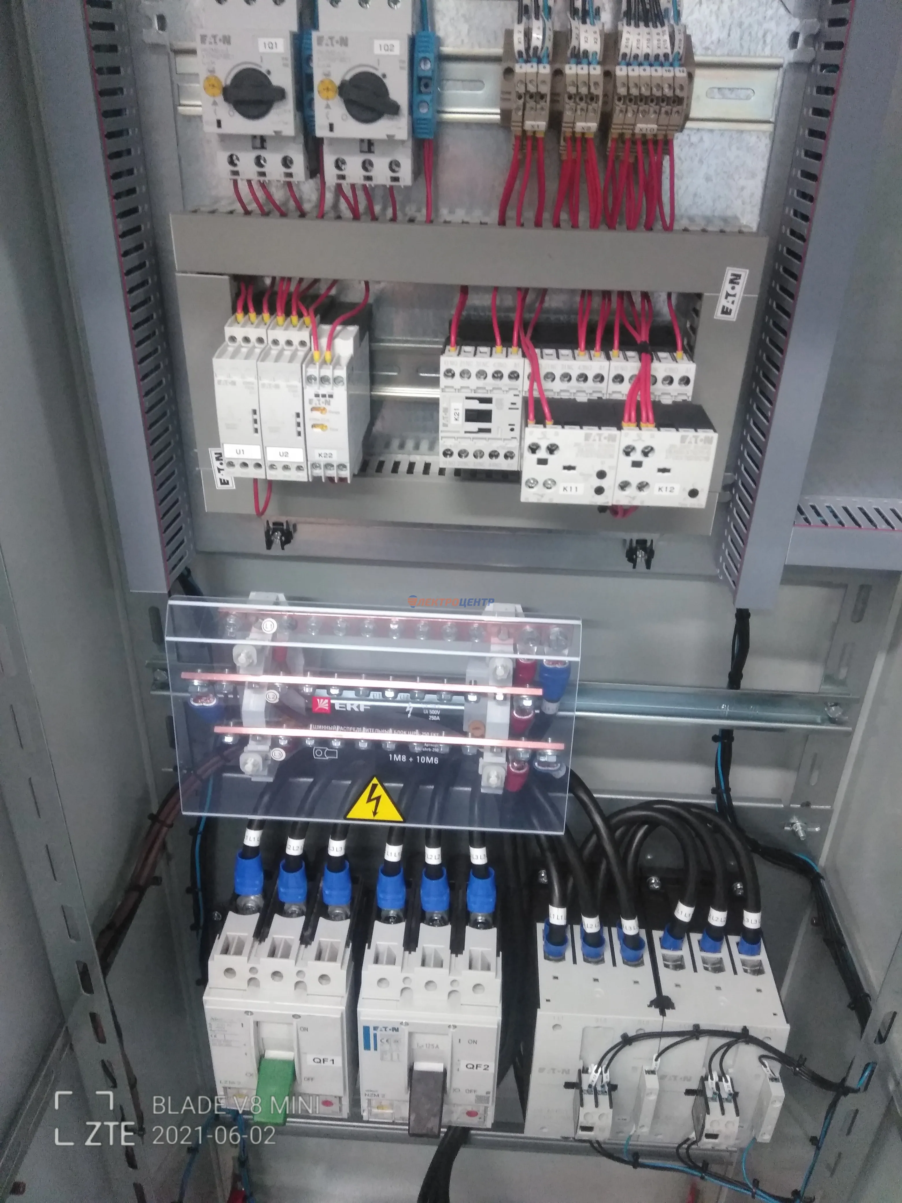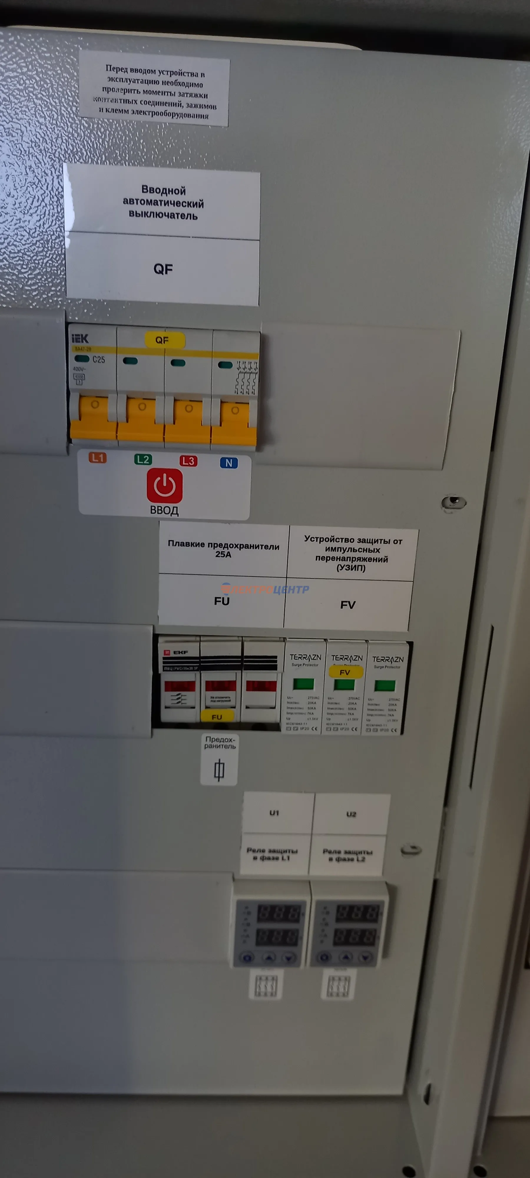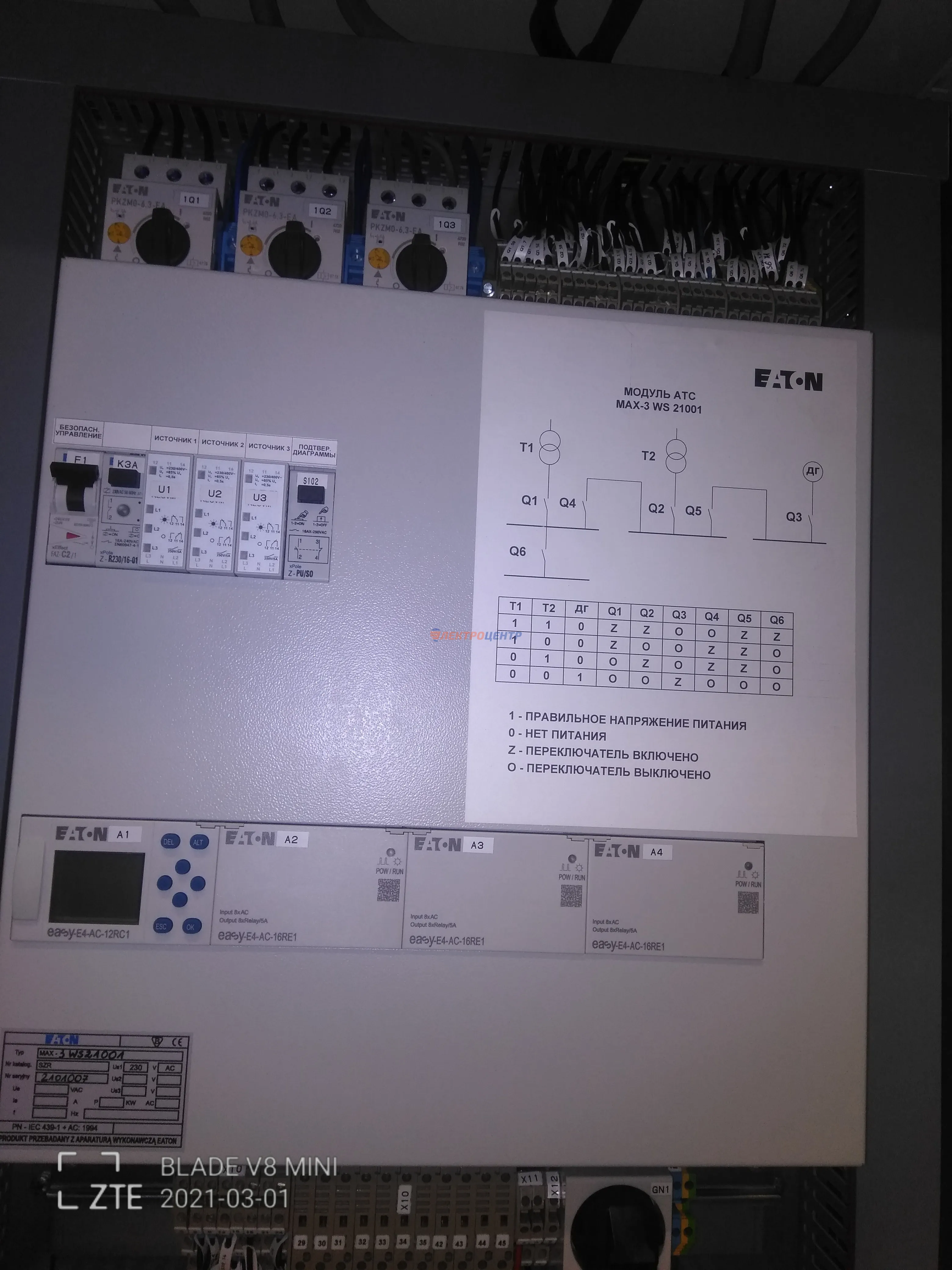 | 47 | ВРУ на 2500 А торгового центра в г. Калининград | «EATON”, “ETI”, “APATOR”, счётчики энергии ЭЛЬСТЕР МЕТРОНИКА, трансформаторы «FRER”, АВР типа MAX-3 «EATON” на 6 выключателей (изменённая схема согласно требованию заказчика). Вводные выключатели типа IZMX40, NZMN4. Оболочка типа “xENERGY” (EATON). На видео представлена проверка сработки выключателей в зависимости от присутствия напряжения на вводах. | Посмотреть фото |
