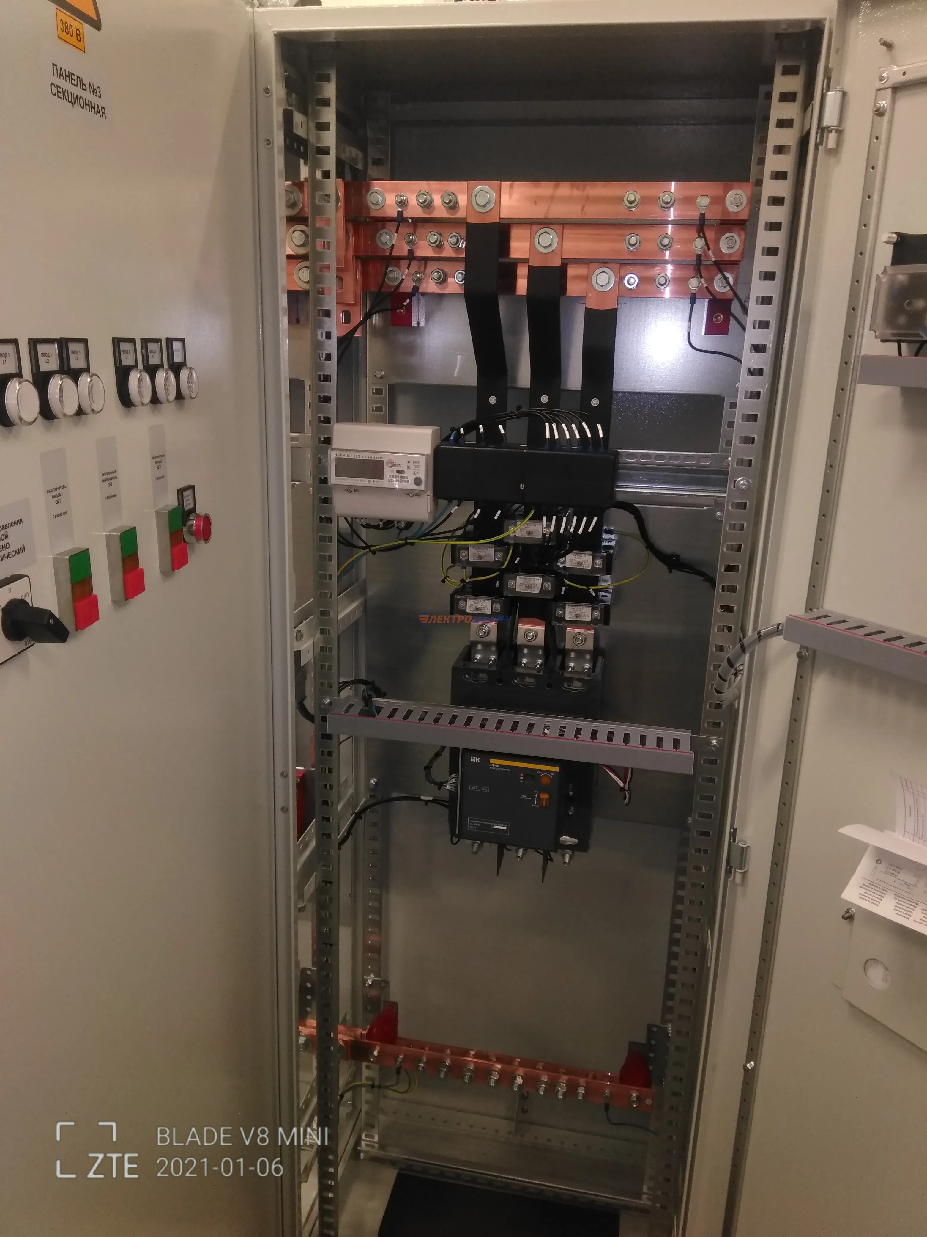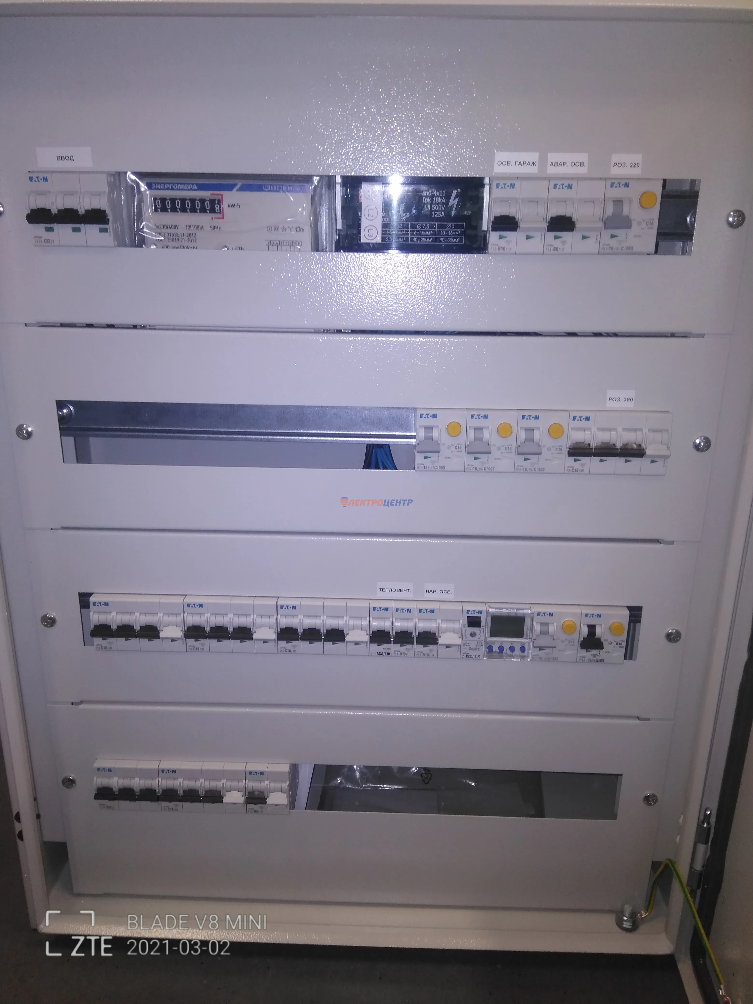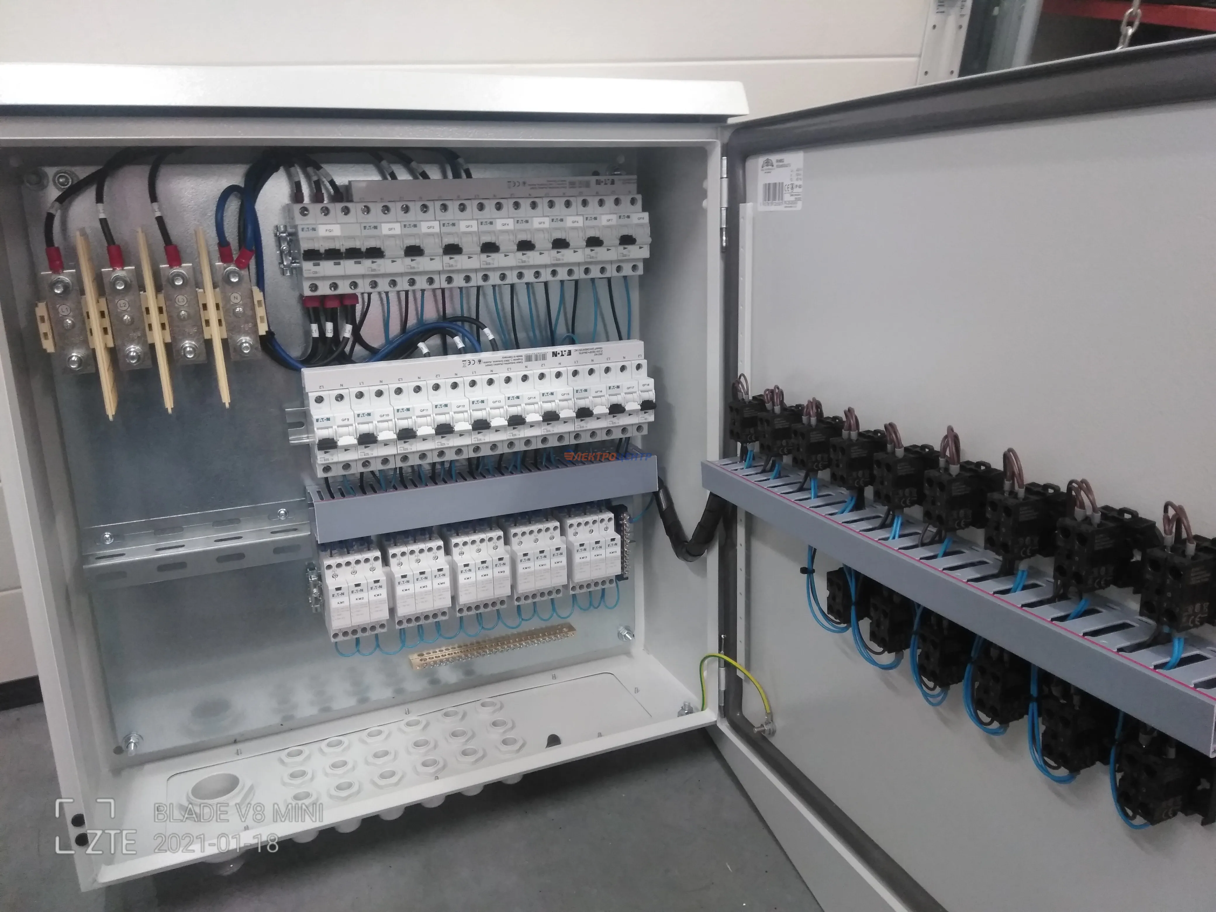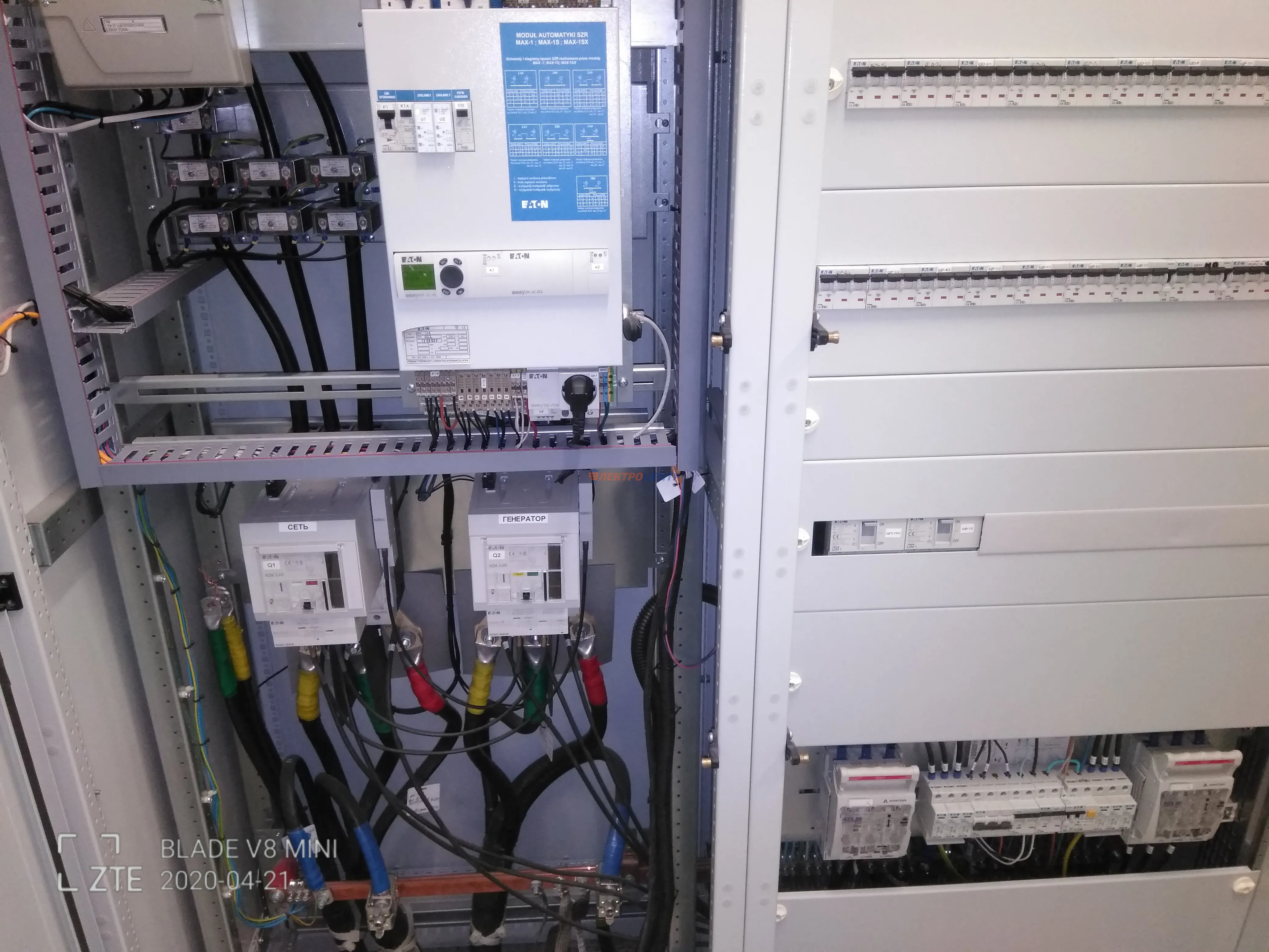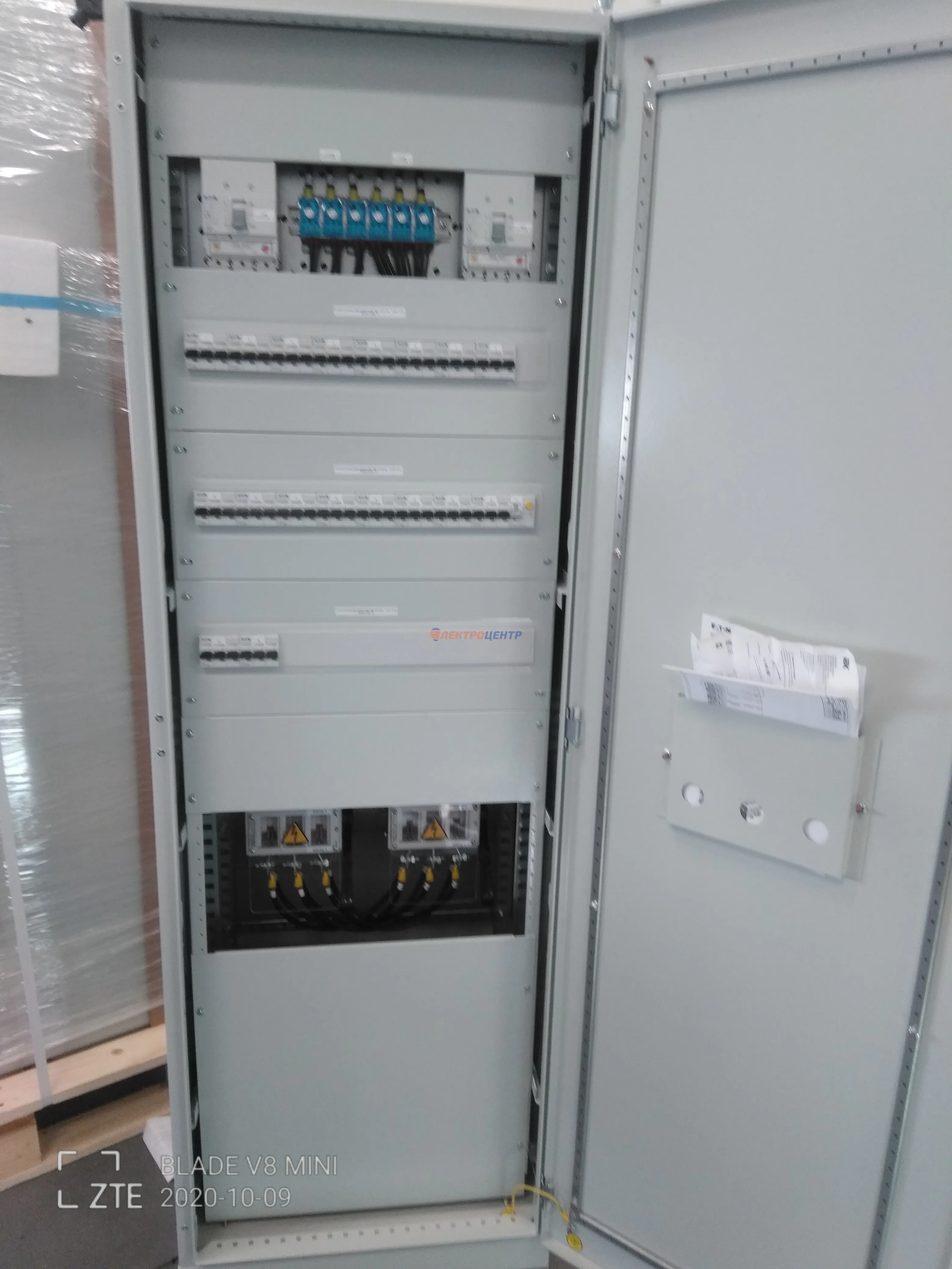 | 47 | ВРУ на 2500 А торгового центра в г. Калининград | «EATON”, “ETI”, “APATOR”, счётчики энергии ЭЛЬСТЕР МЕТРОНИКА, трансформаторы «FRER”, АВР типа MAX-3 «EATON” на 6 выключателей (изменённая схема согласно требованию заказчика). Вводные выключатели типа IZMX40, NZMN4. Оболочка типа “xENERGY” (EATON). На видео представлена проверка сработки выключателей в зависимости от присутствия напряжения на вводах. | Посмотреть фото |