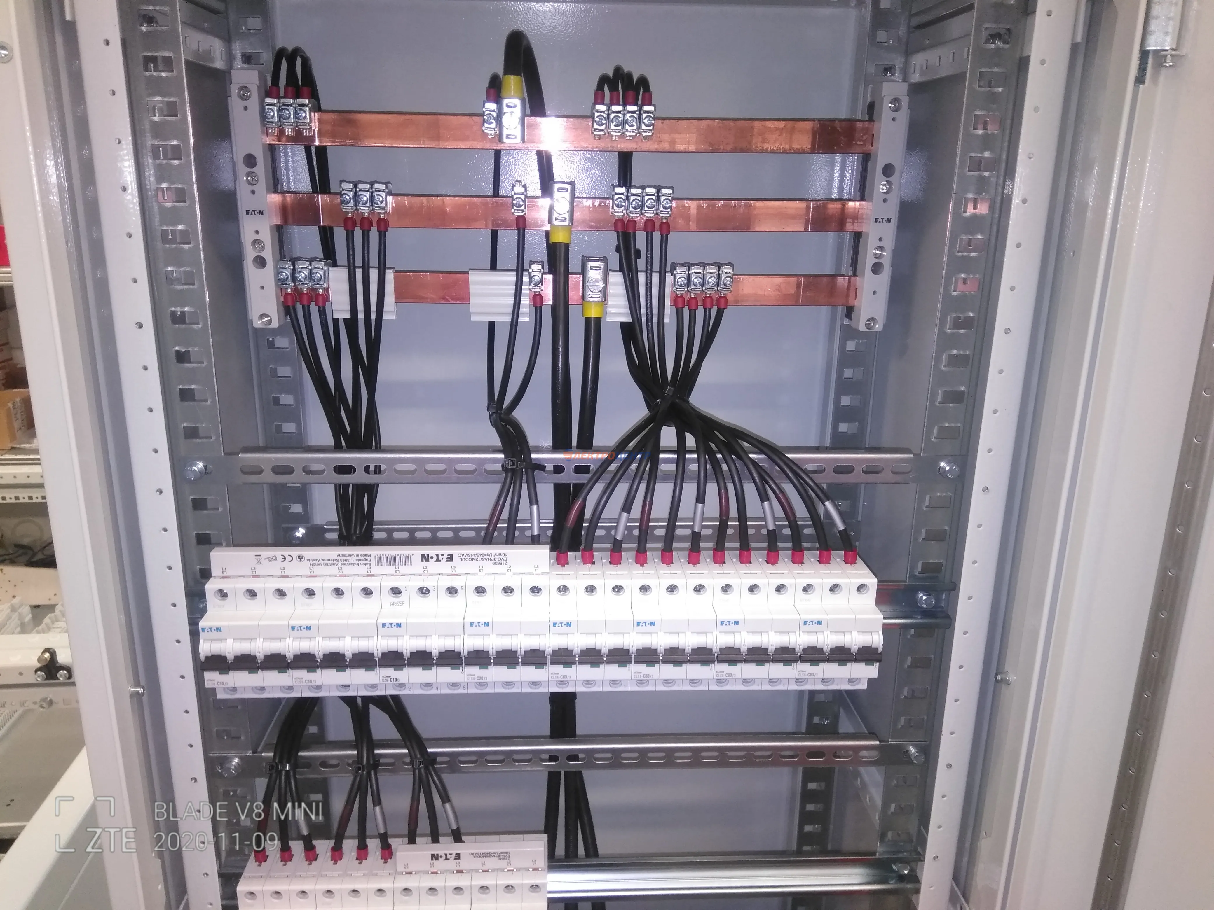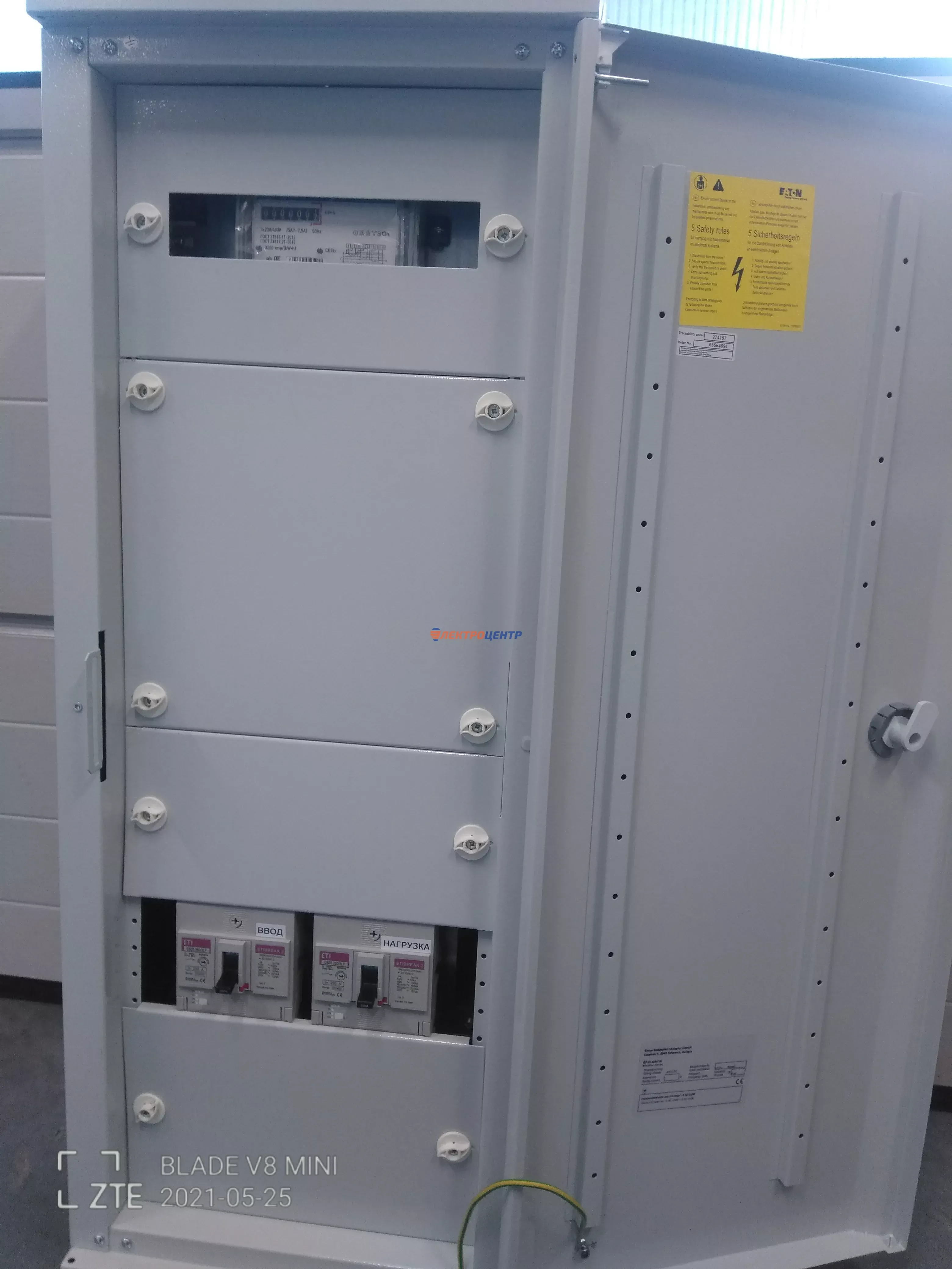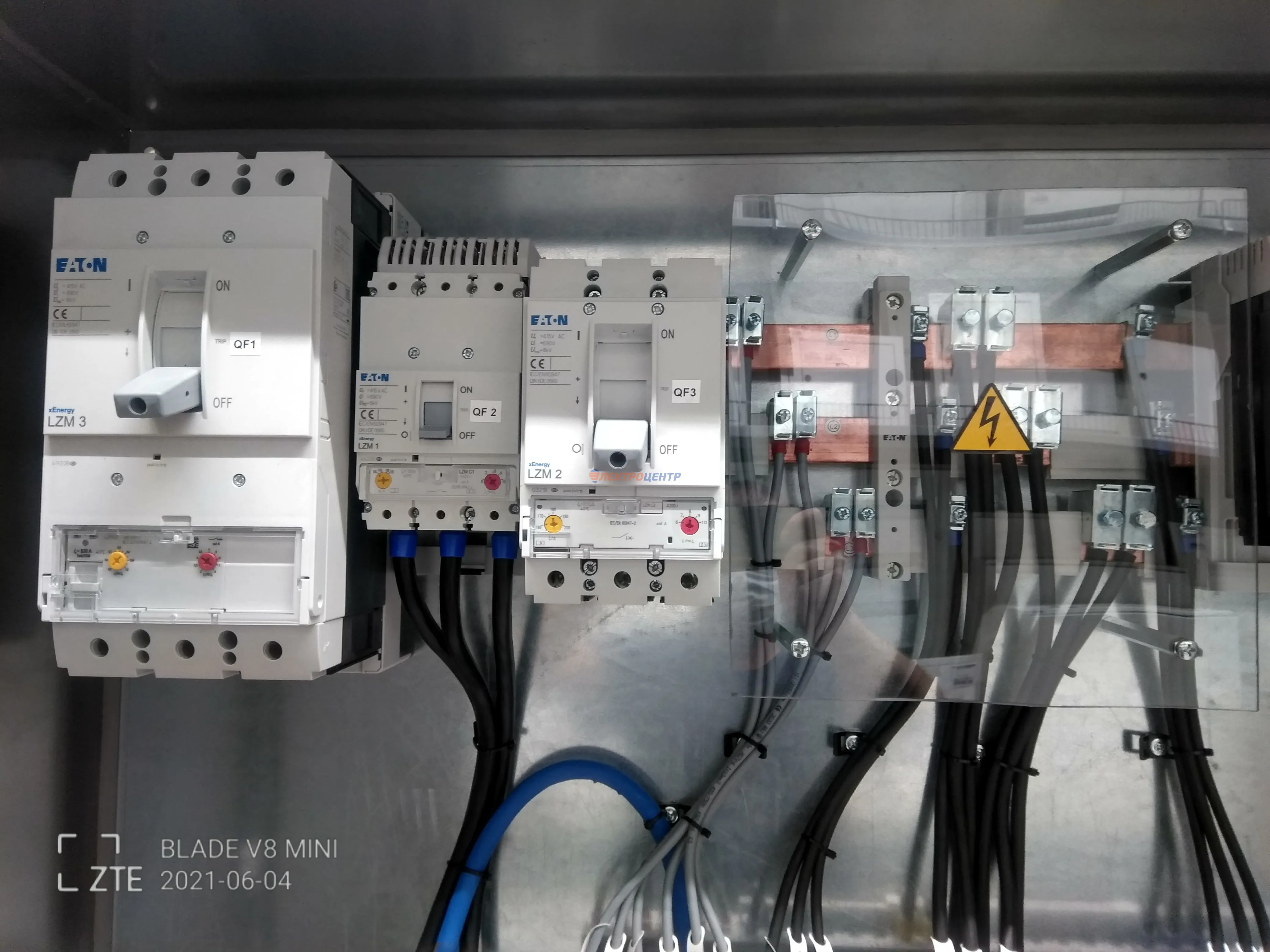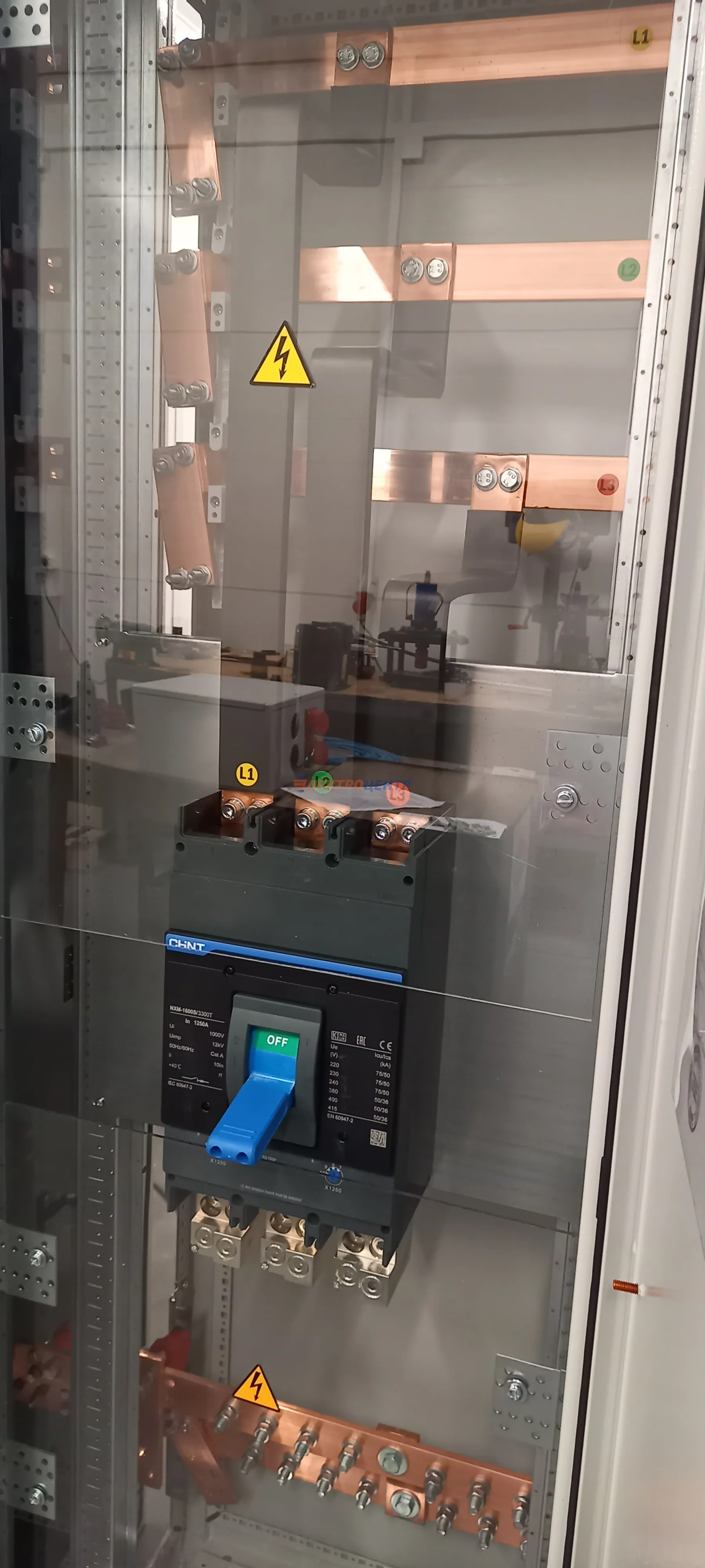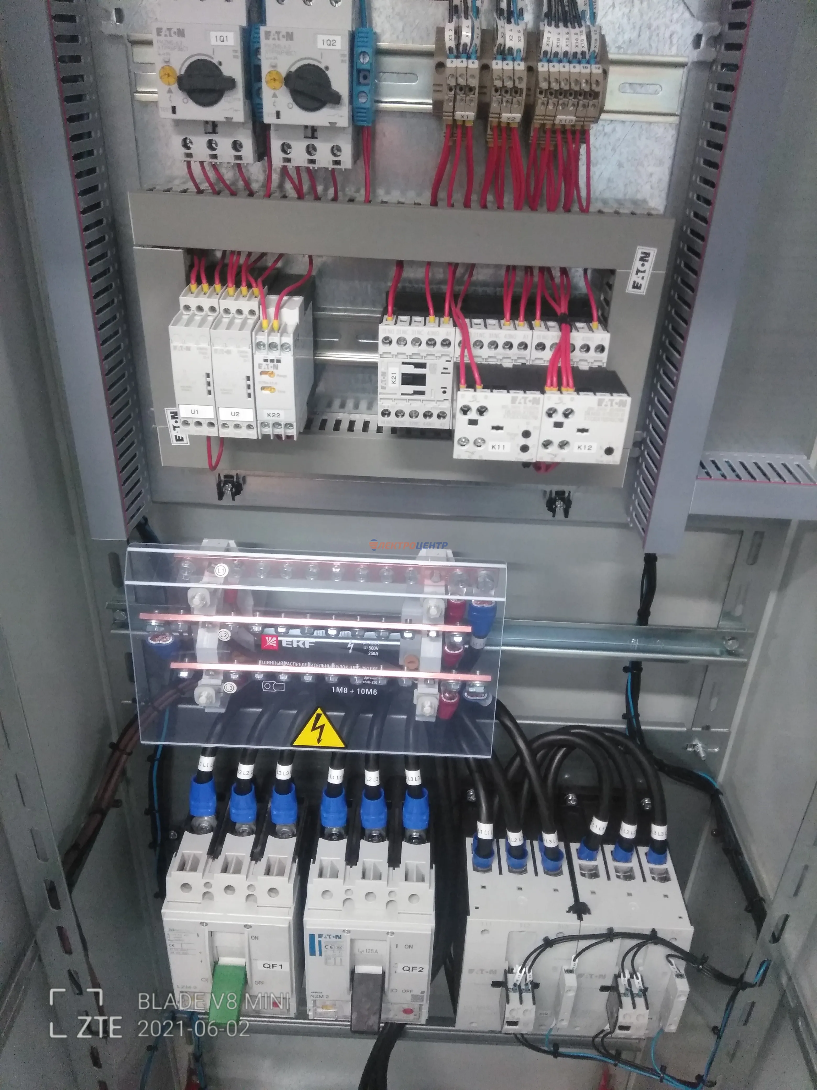 | 47 | ВРУ на 2500 А торгового центра в г. Калининград | «EATON”, “ETI”, “APATOR”, счётчики энергии ЭЛЬСТЕР МЕТРОНИКА, трансформаторы «FRER”, АВР типа MAX-3 «EATON” на 6 выключателей (изменённая схема согласно требованию заказчика). Вводные выключатели типа IZMX40, NZMN4. Оболочка типа “xENERGY” (EATON). На видео представлена проверка сработки выключателей в зависимости от присутствия напряжения на вводах. | Посмотреть фото |