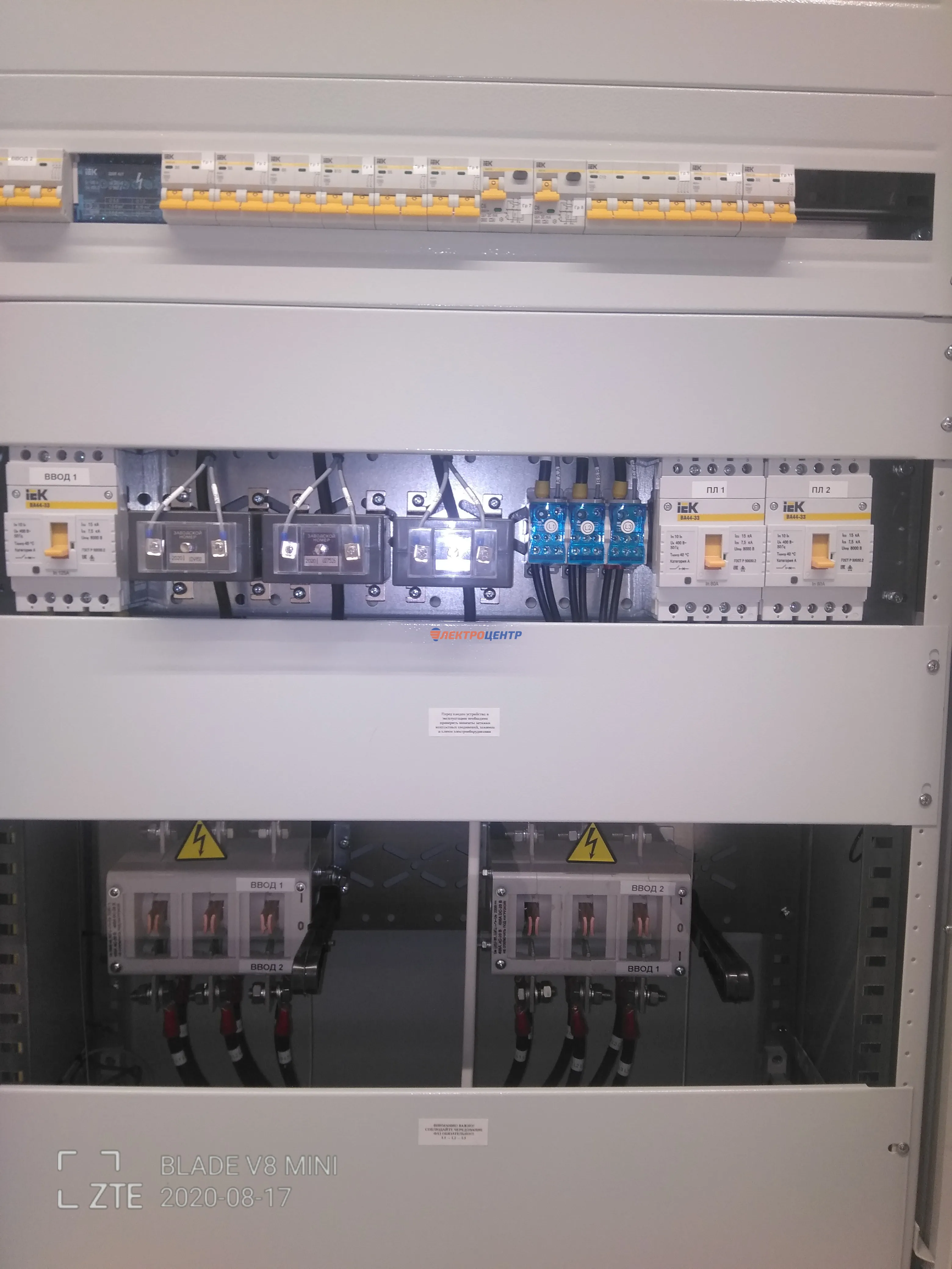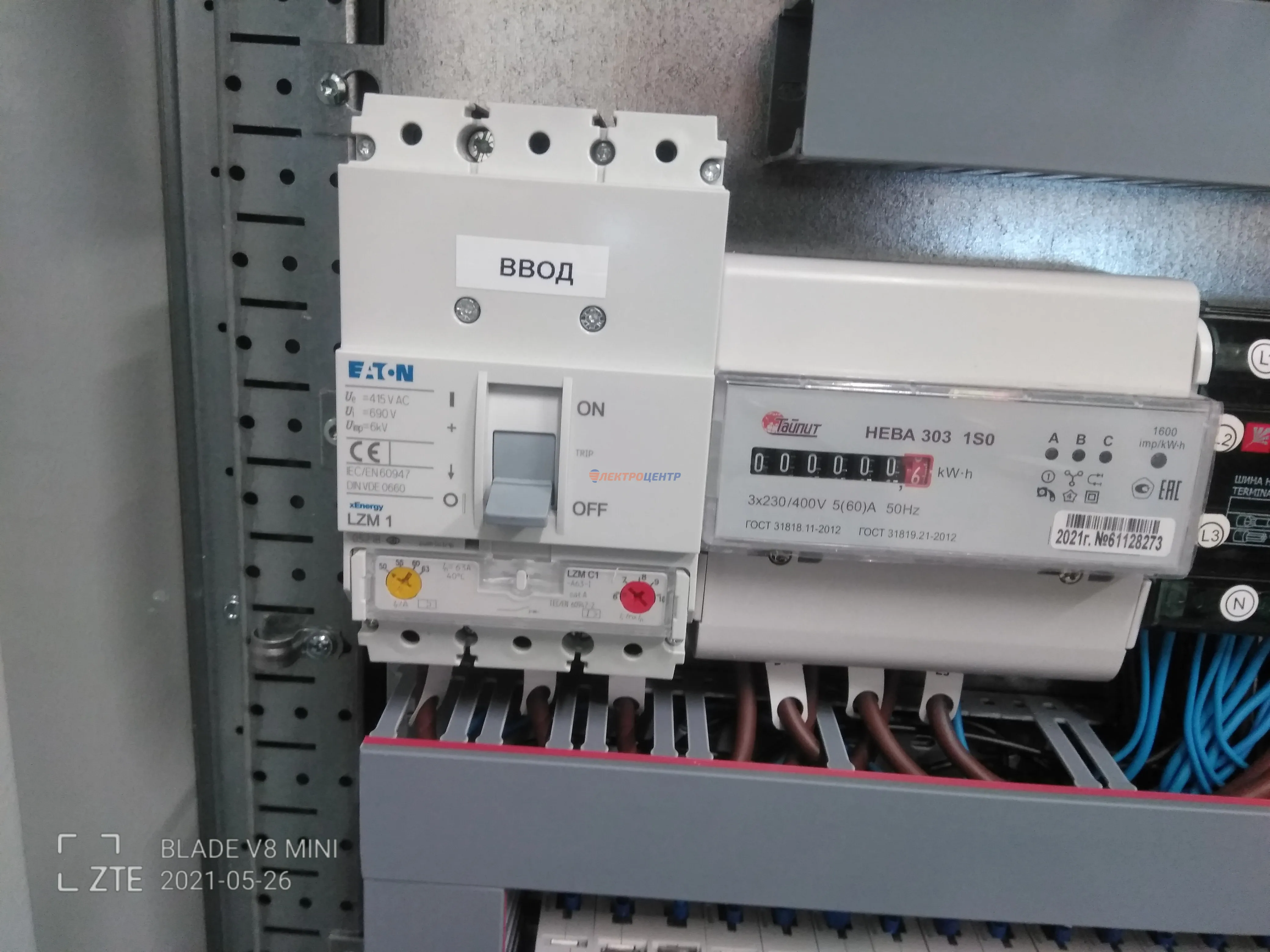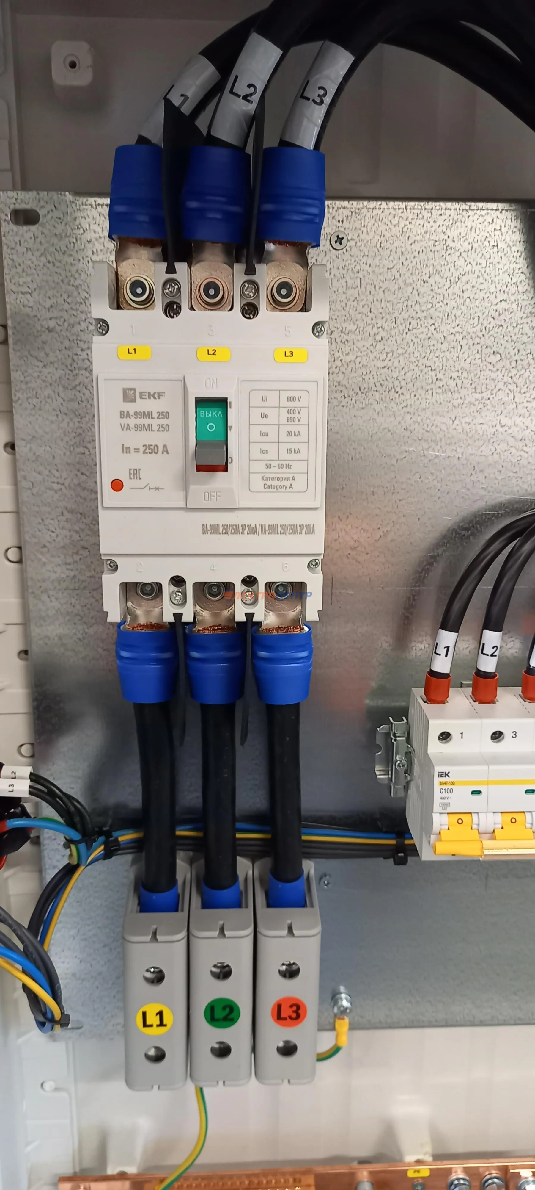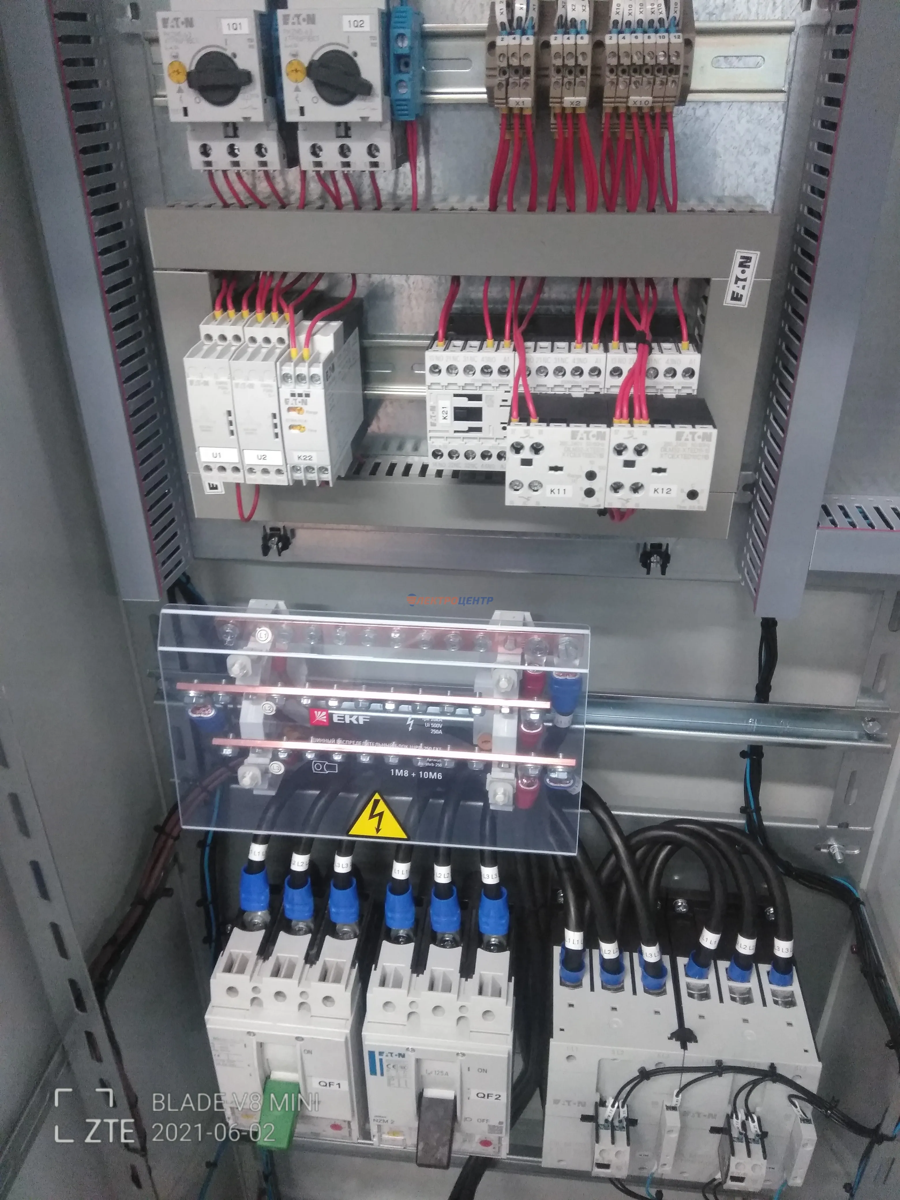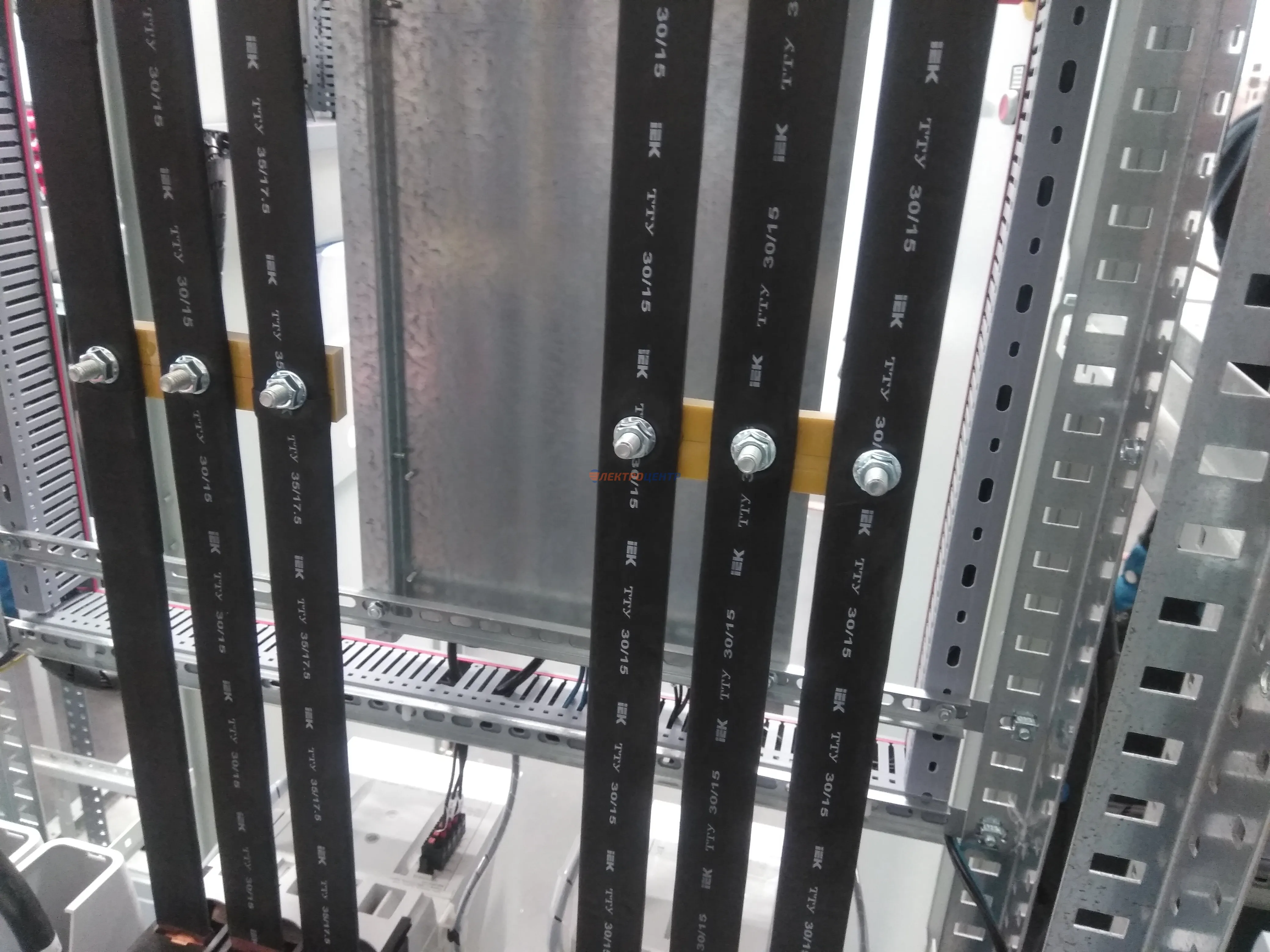 | 47 | ВРУ на 2500 А торгового центра в г. Калининград | «EATON”, “ETI”, “APATOR”, счётчики энергии ЭЛЬСТЕР МЕТРОНИКА, трансформаторы «FRER”, АВР типа MAX-3 «EATON” на 6 выключателей (изменённая схема согласно требованию заказчика). Вводные выключатели типа IZMX40, NZMN4. Оболочка типа “xENERGY” (EATON). На видео представлена проверка сработки выключателей в зависимости от присутствия напряжения на вводах. | Посмотреть фото |