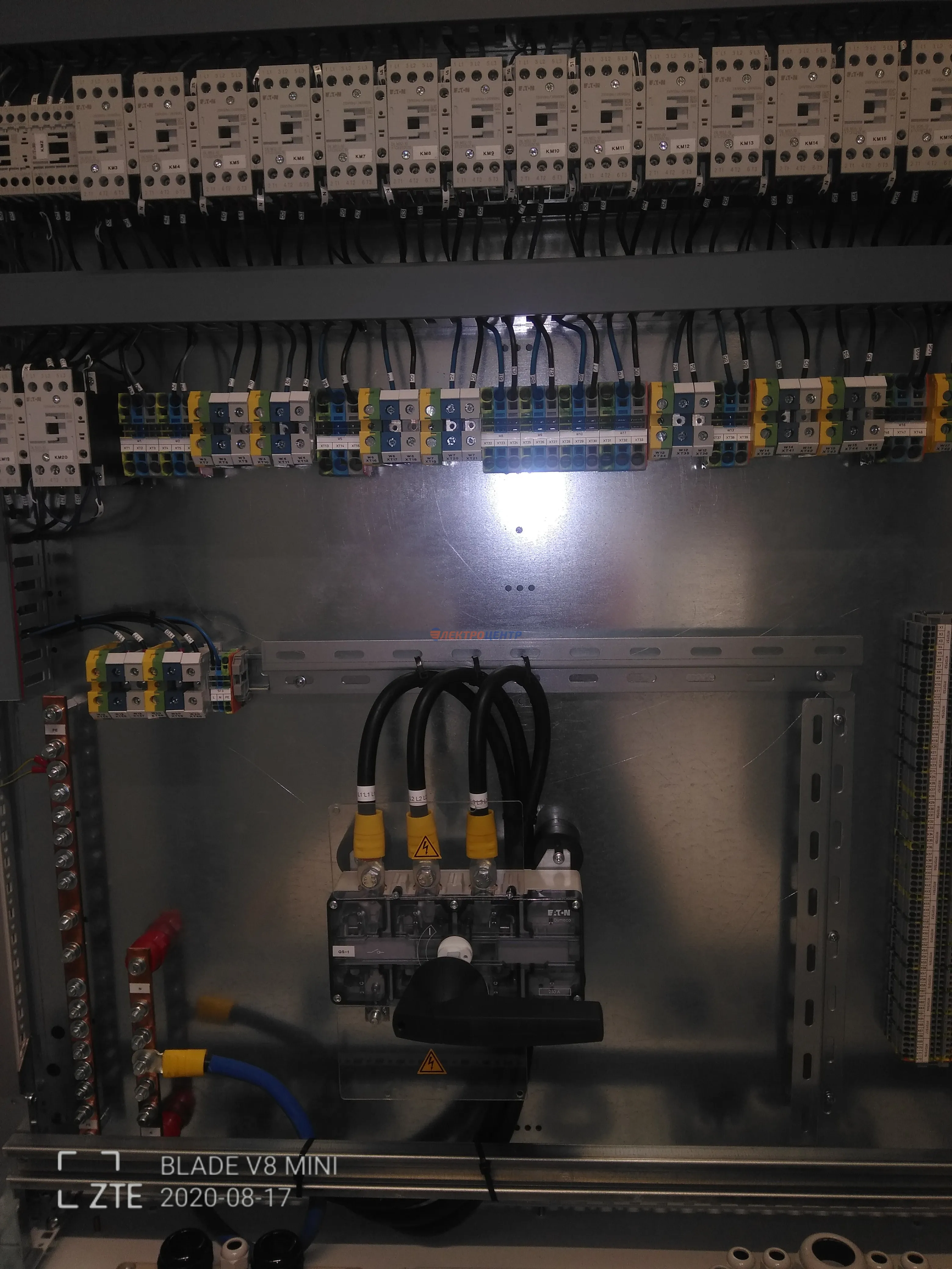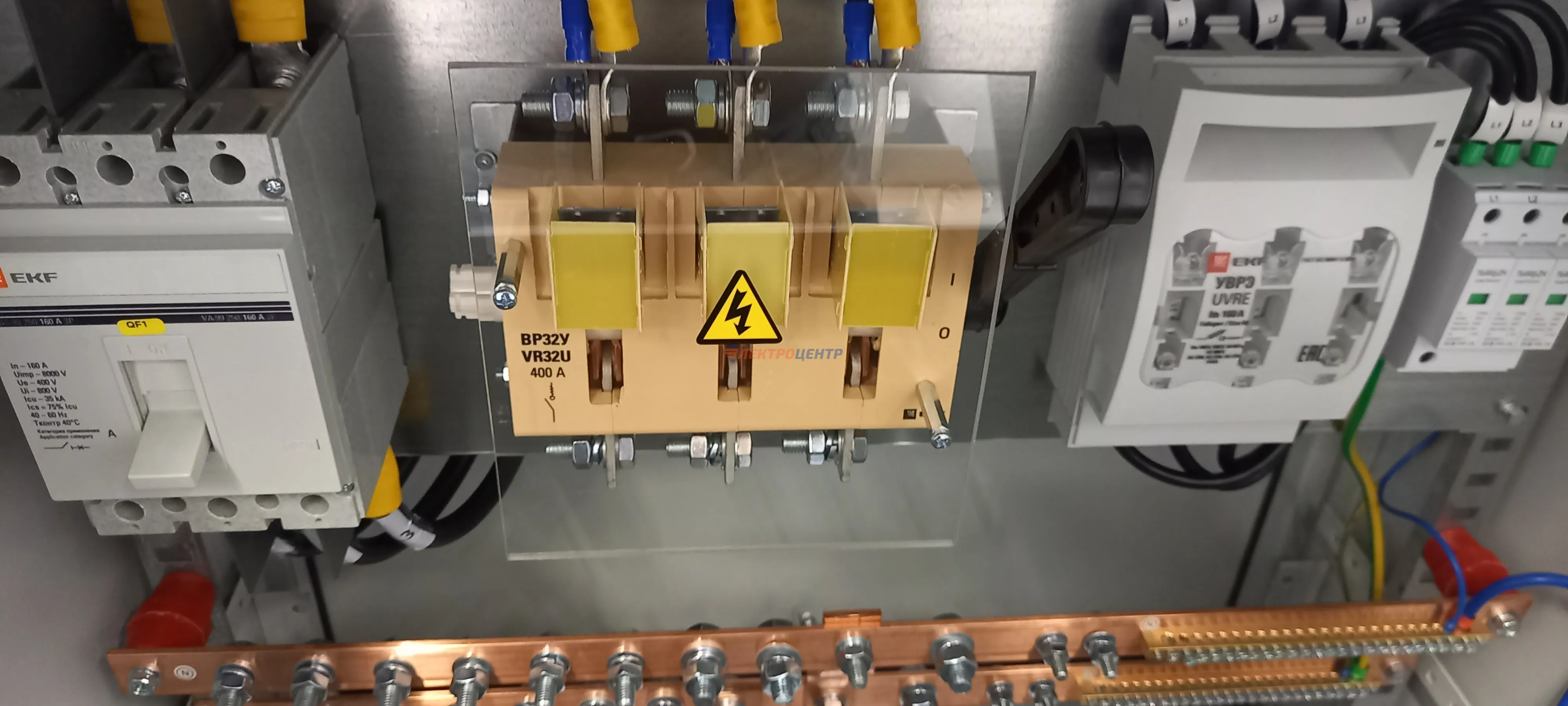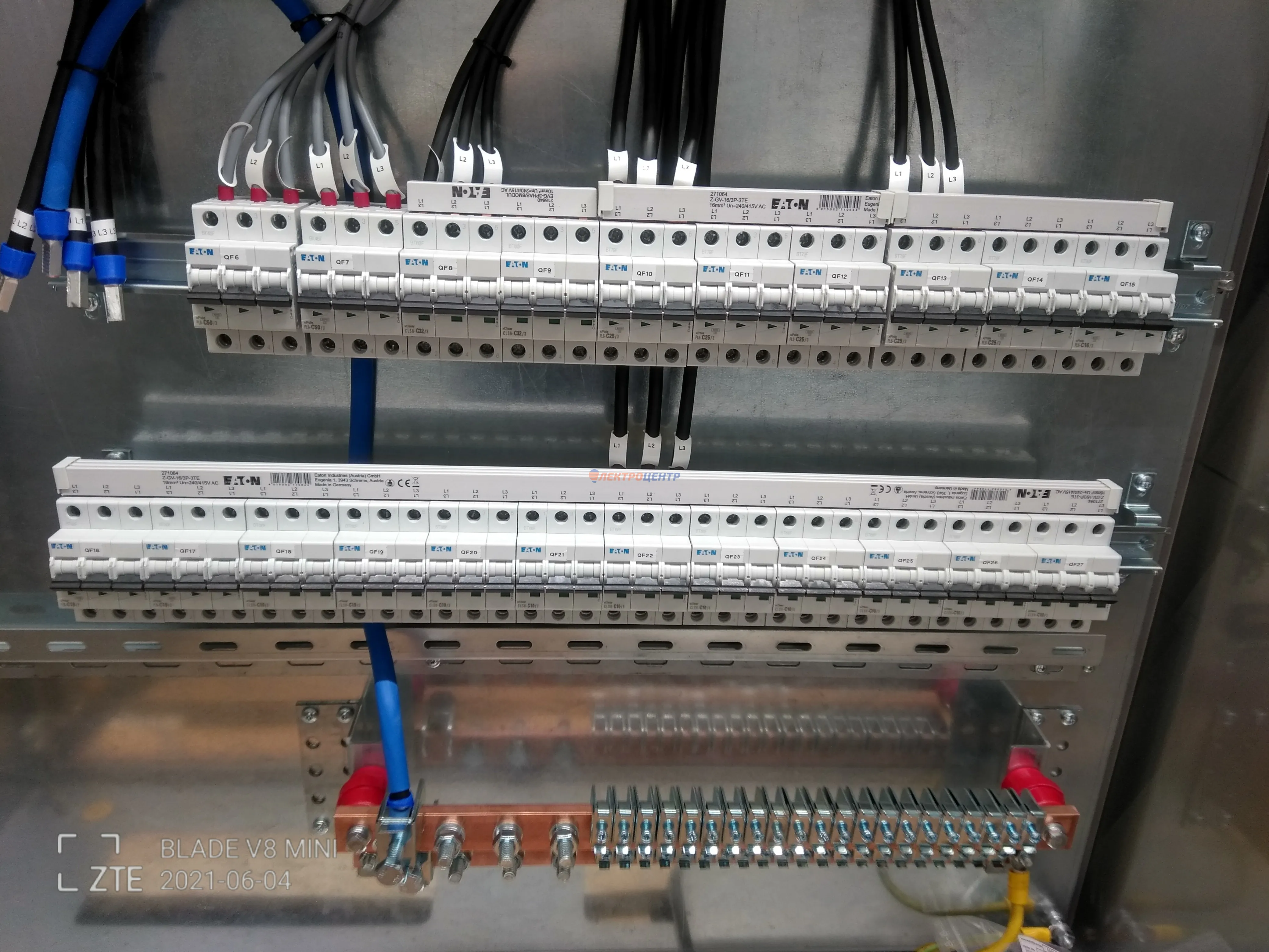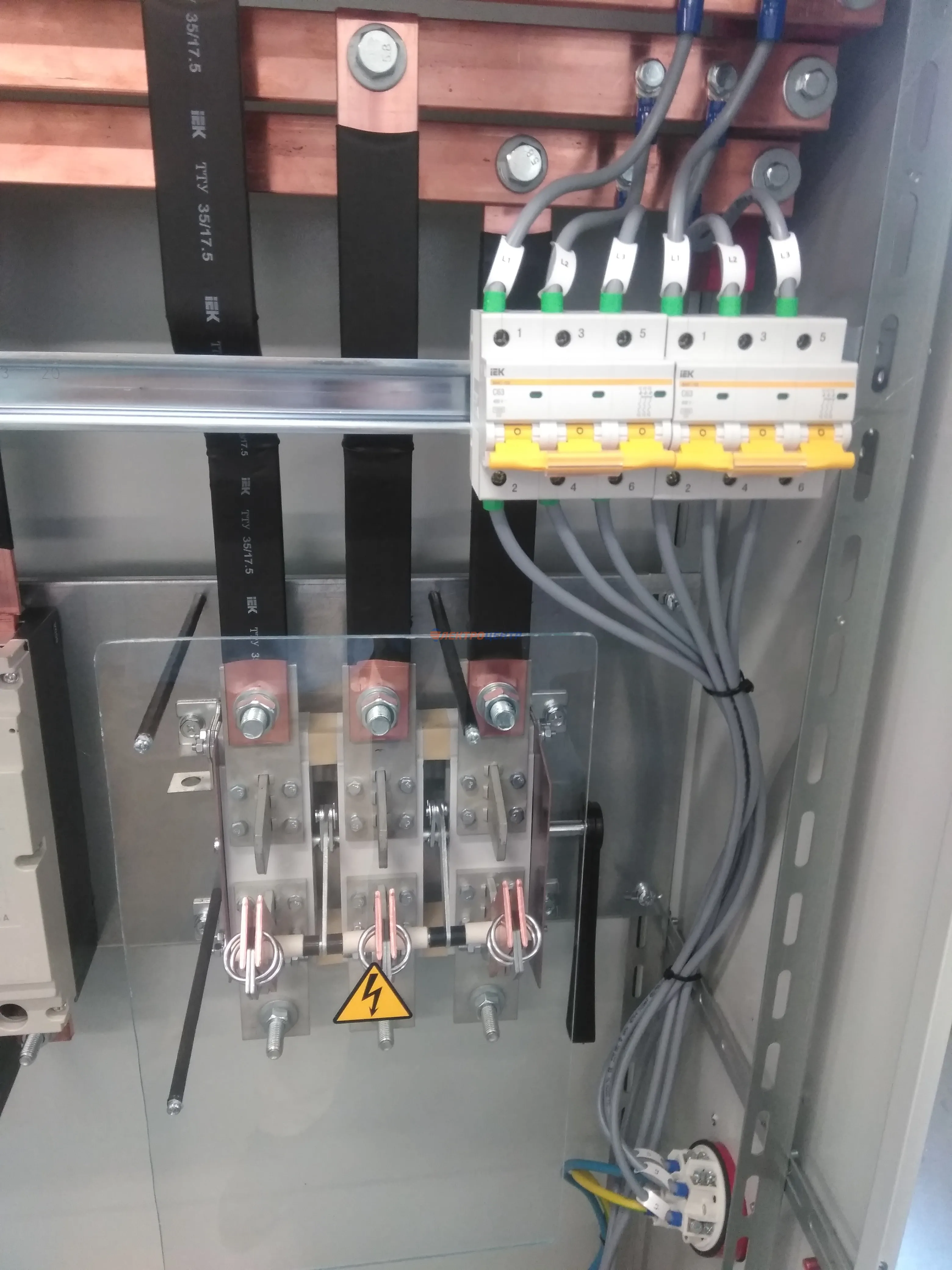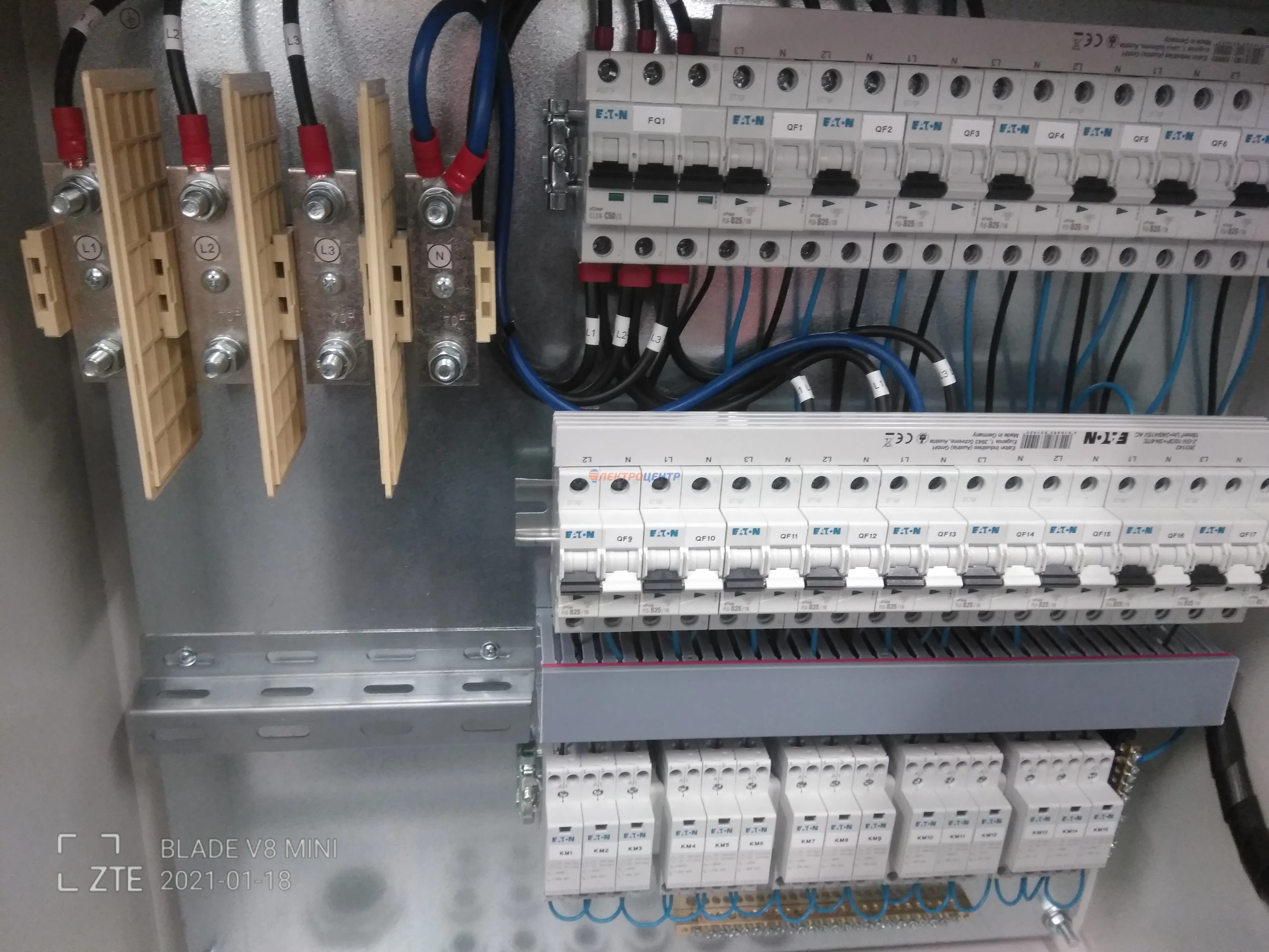 | 47 | ВРУ на 2500 А торгового центра в г. Калининград | «EATON”, “ETI”, “APATOR”, счётчики энергии ЭЛЬСТЕР МЕТРОНИКА, трансформаторы «FRER”, АВР типа MAX-3 «EATON” на 6 выключателей (изменённая схема согласно требованию заказчика). Вводные выключатели типа IZMX40, NZMN4. Оболочка типа “xENERGY” (EATON). На видео представлена проверка сработки выключателей в зависимости от присутствия напряжения на вводах. | Посмотреть фото |
