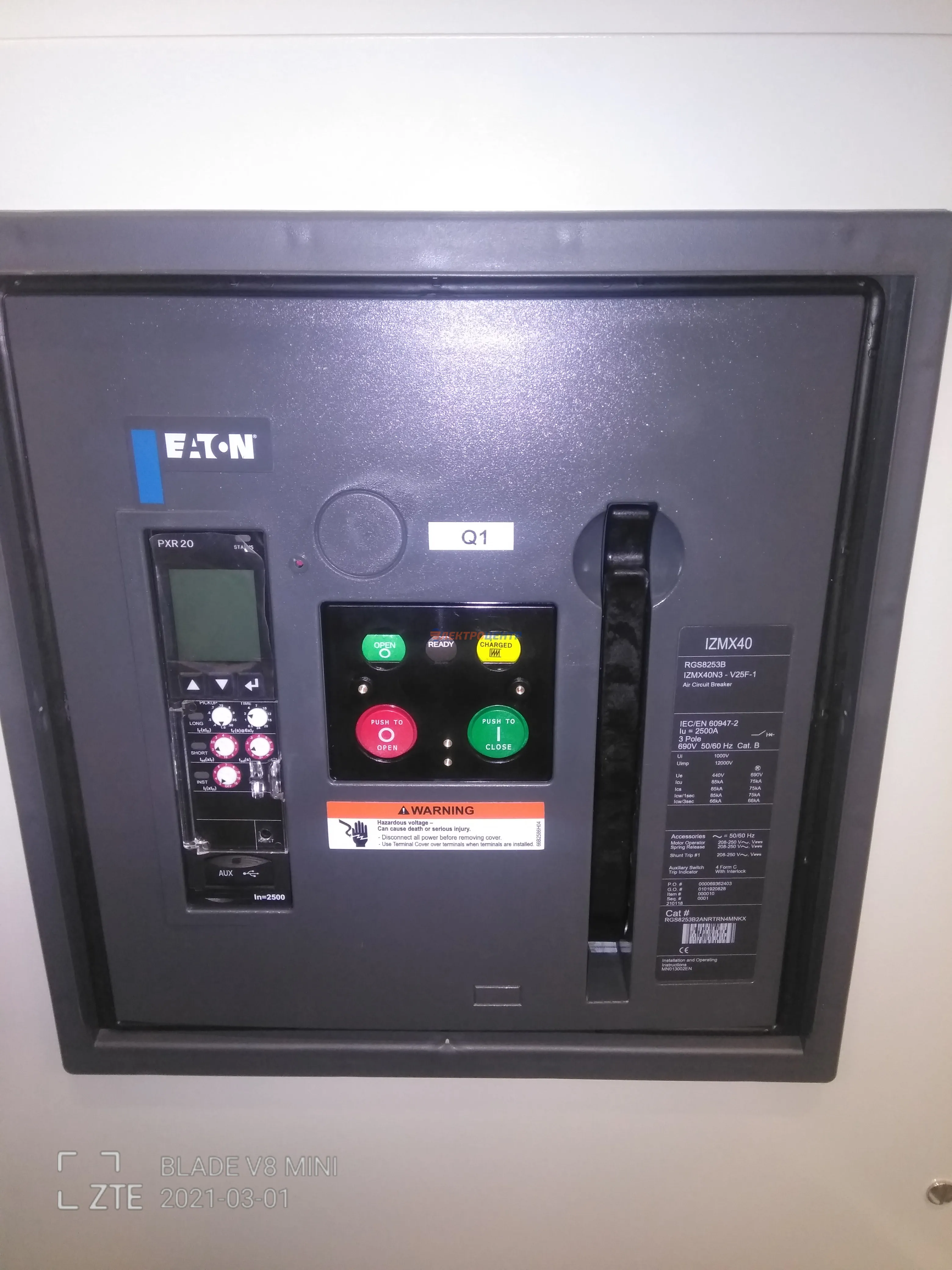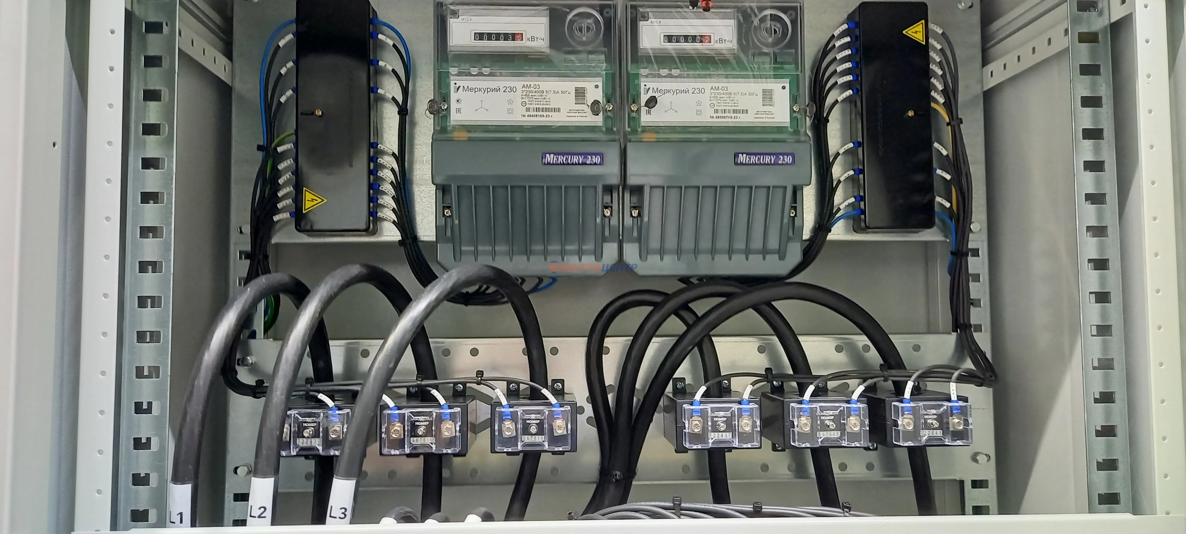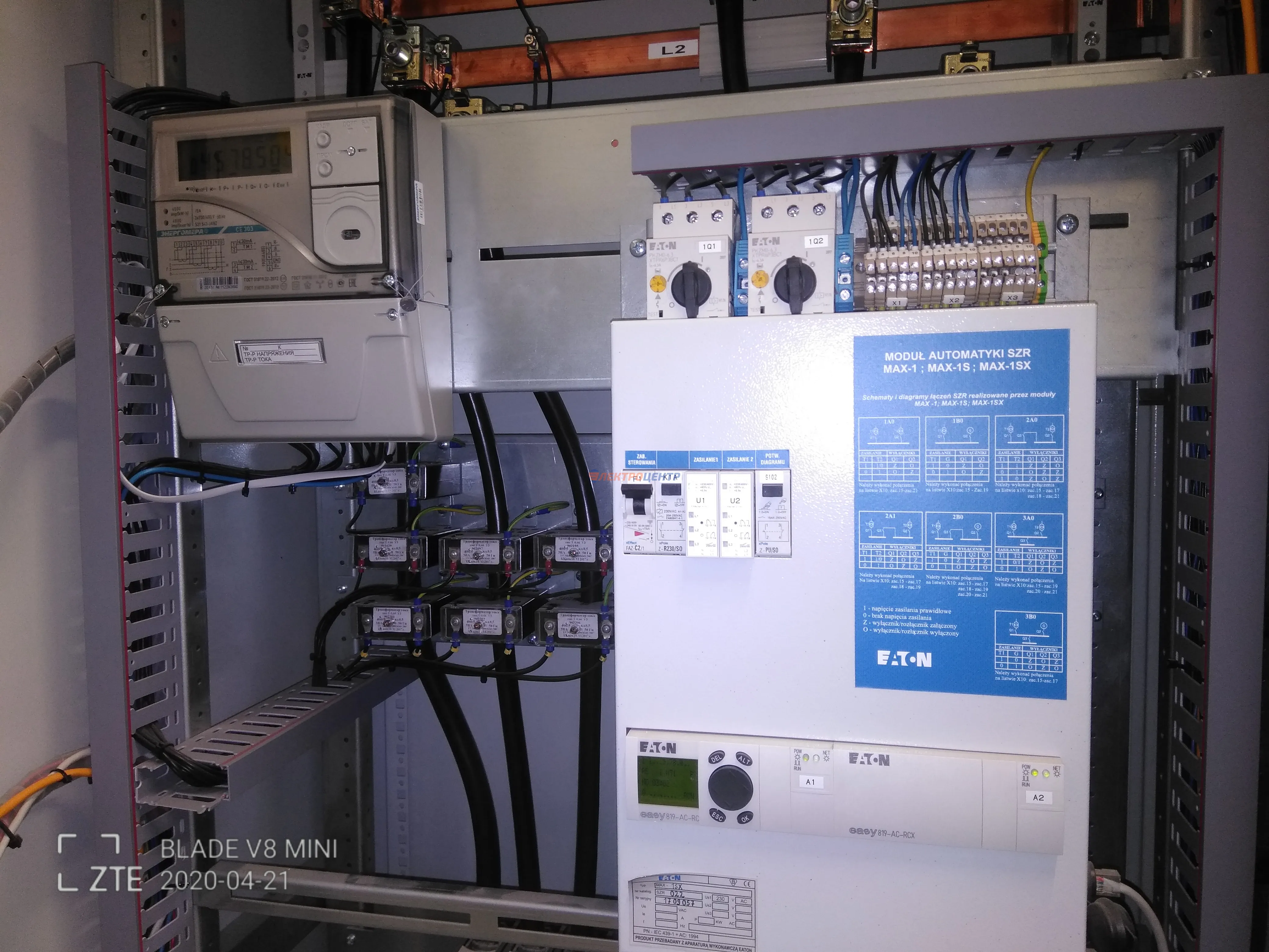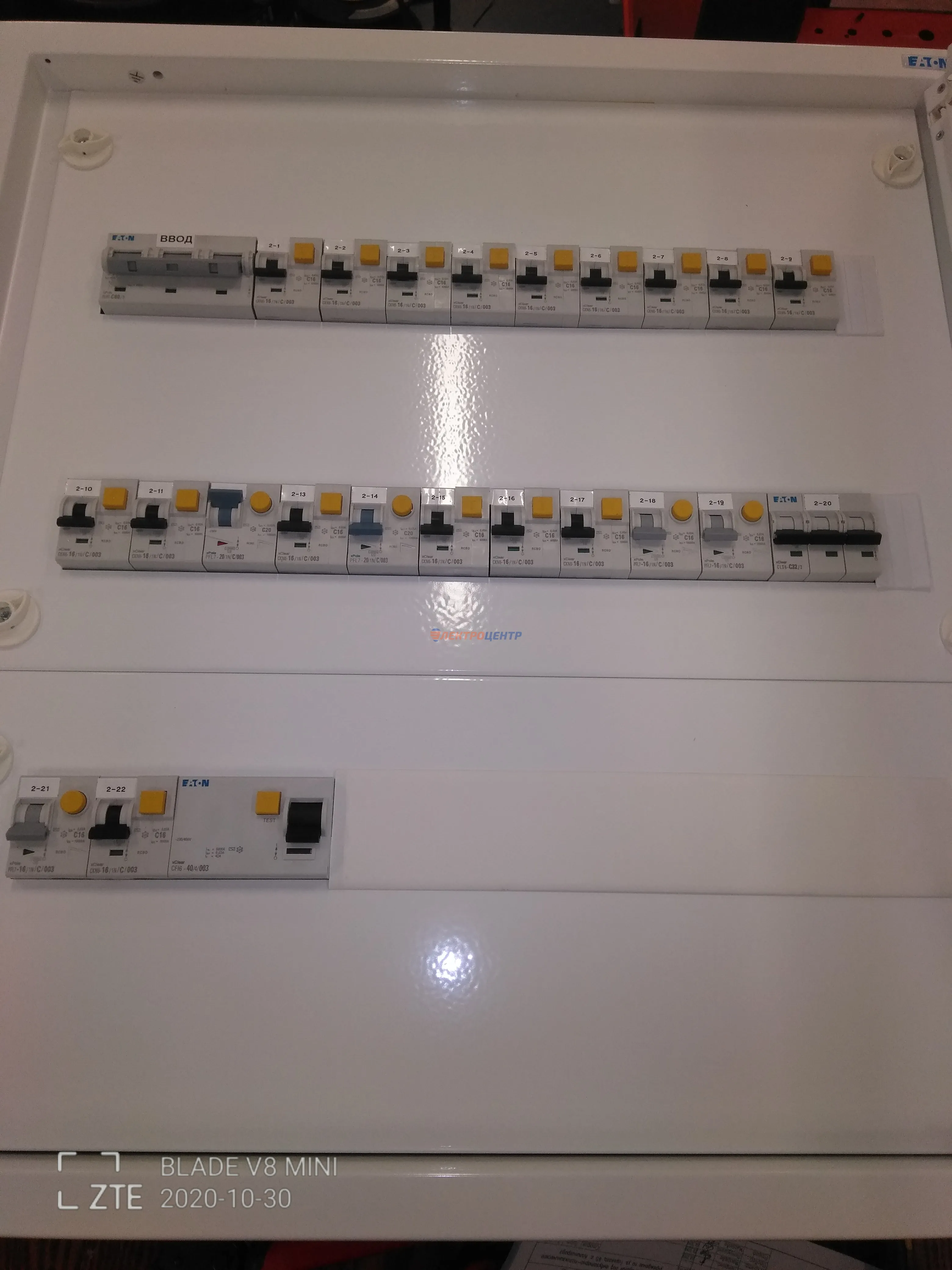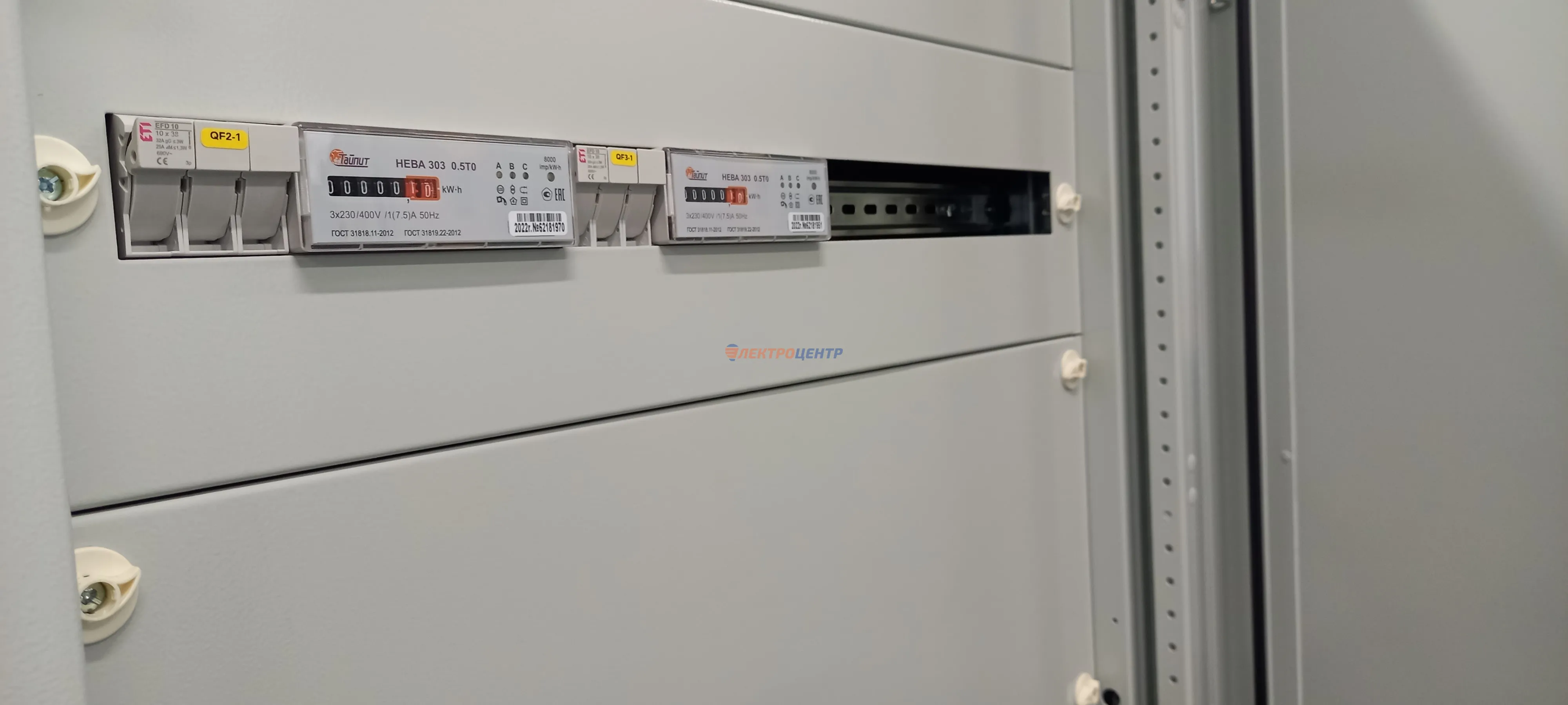 | 47 | ВРУ на 2500 А торгового центра в г. Калининград | «EATON”, “ETI”, “APATOR”, счётчики энергии ЭЛЬСТЕР МЕТРОНИКА, трансформаторы «FRER”, АВР типа MAX-3 «EATON” на 6 выключателей (изменённая схема согласно требованию заказчика). Вводные выключатели типа IZMX40, NZMN4. Оболочка типа “xENERGY” (EATON). На видео представлена проверка сработки выключателей в зависимости от присутствия напряжения на вводах. | Посмотреть фото |