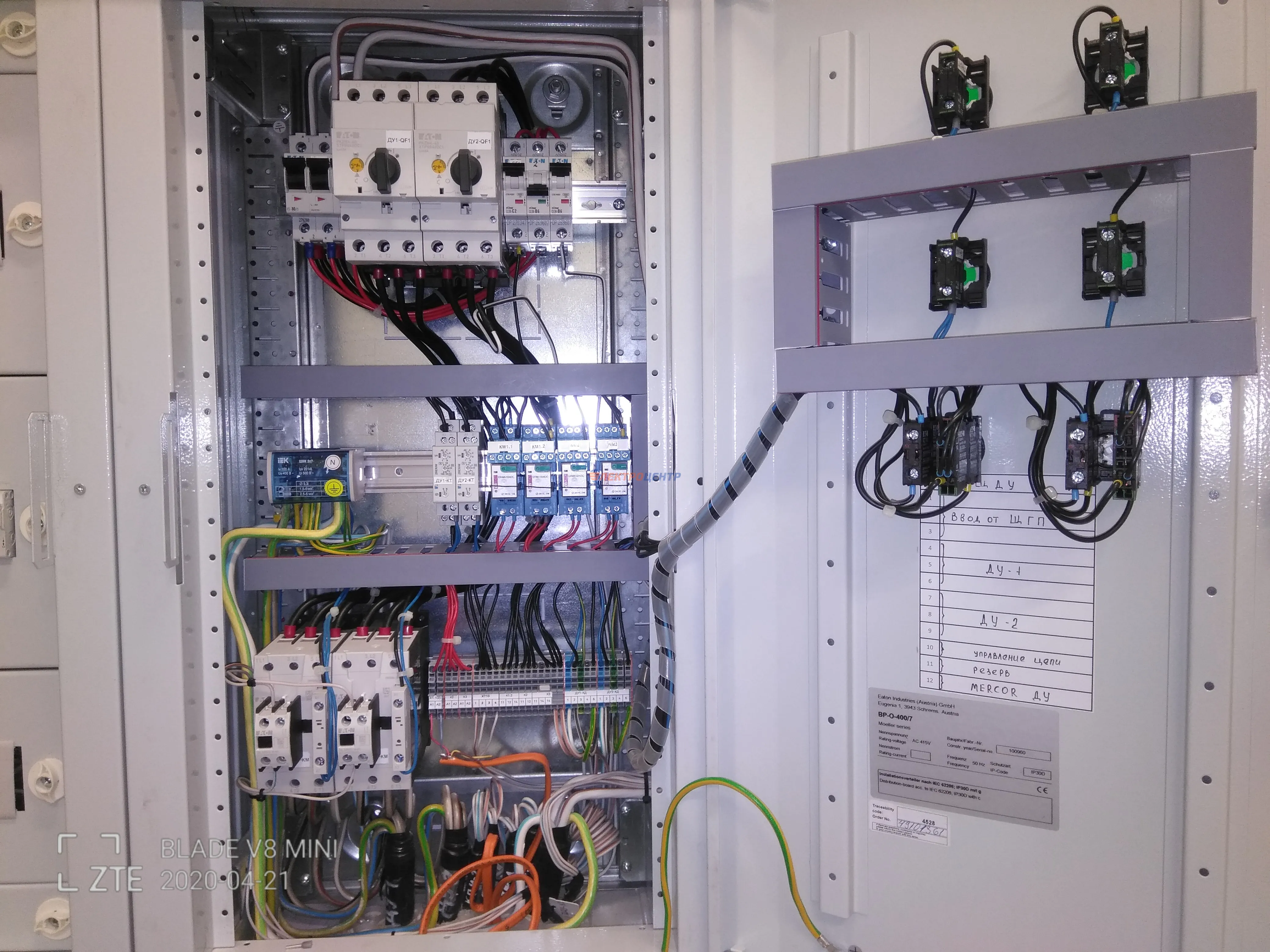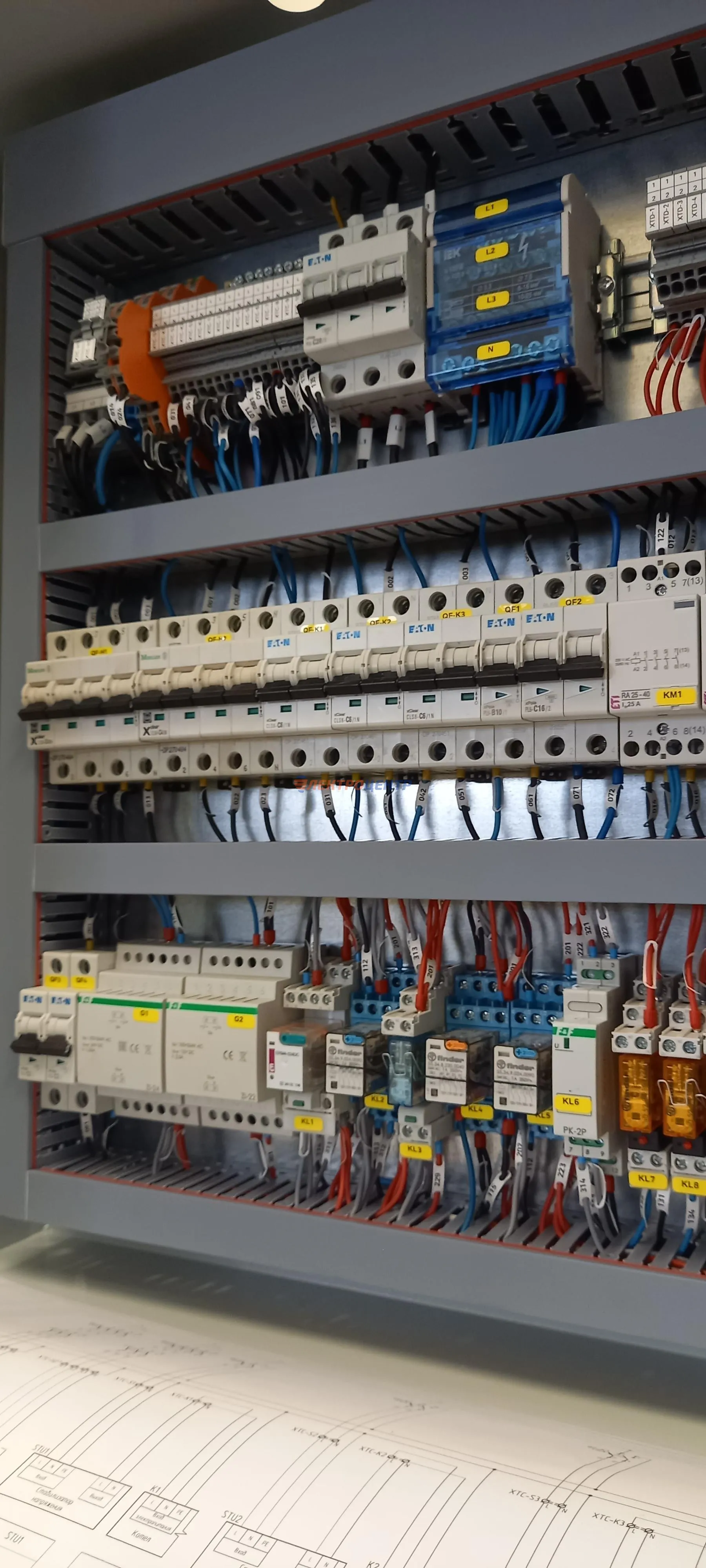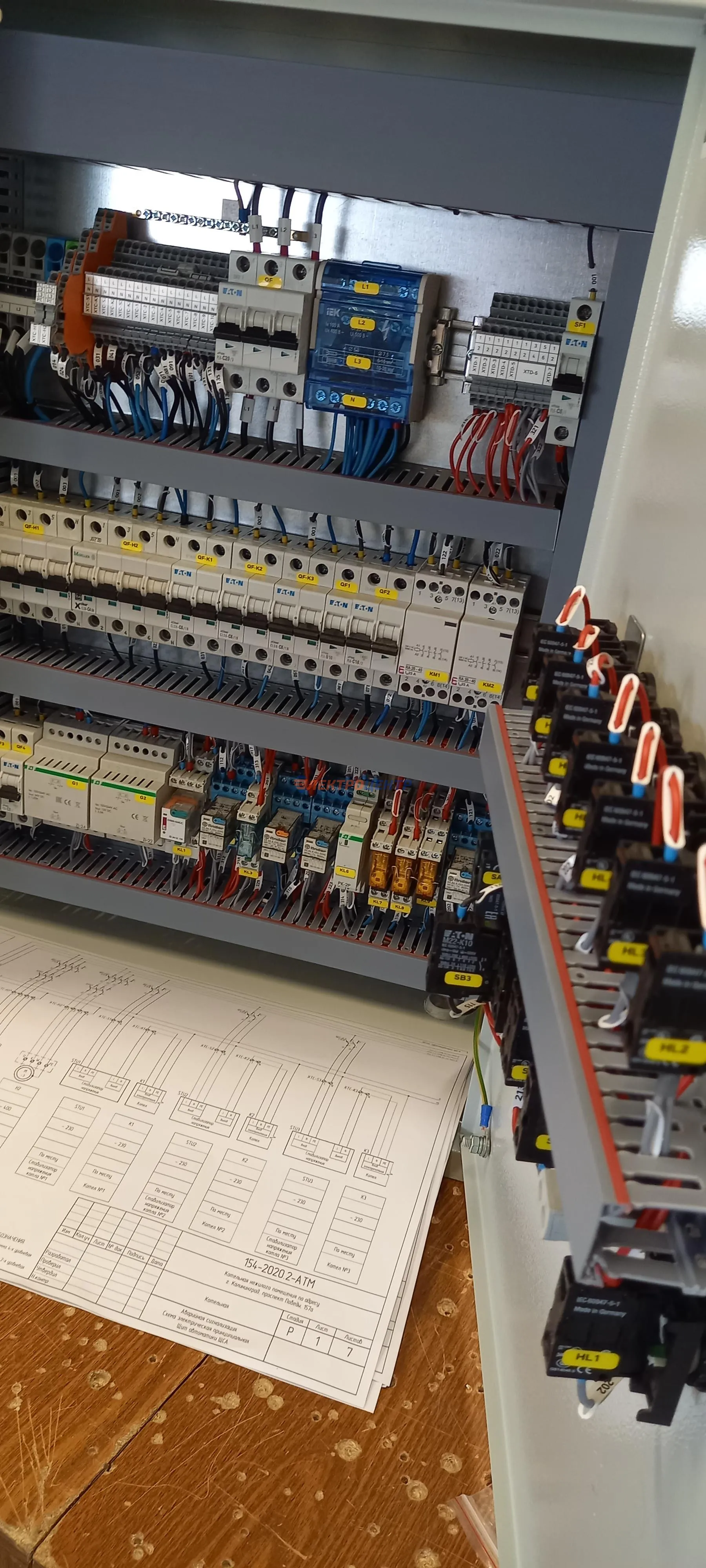 | 8 | щит дымоудаления | EATON, FINDER. Оболочка типа BP-O (EATON), автоматы защиты э/двигателей PKZM4, контакторы DILM, клеммные колодки WAGO. | Посмотреть фото |