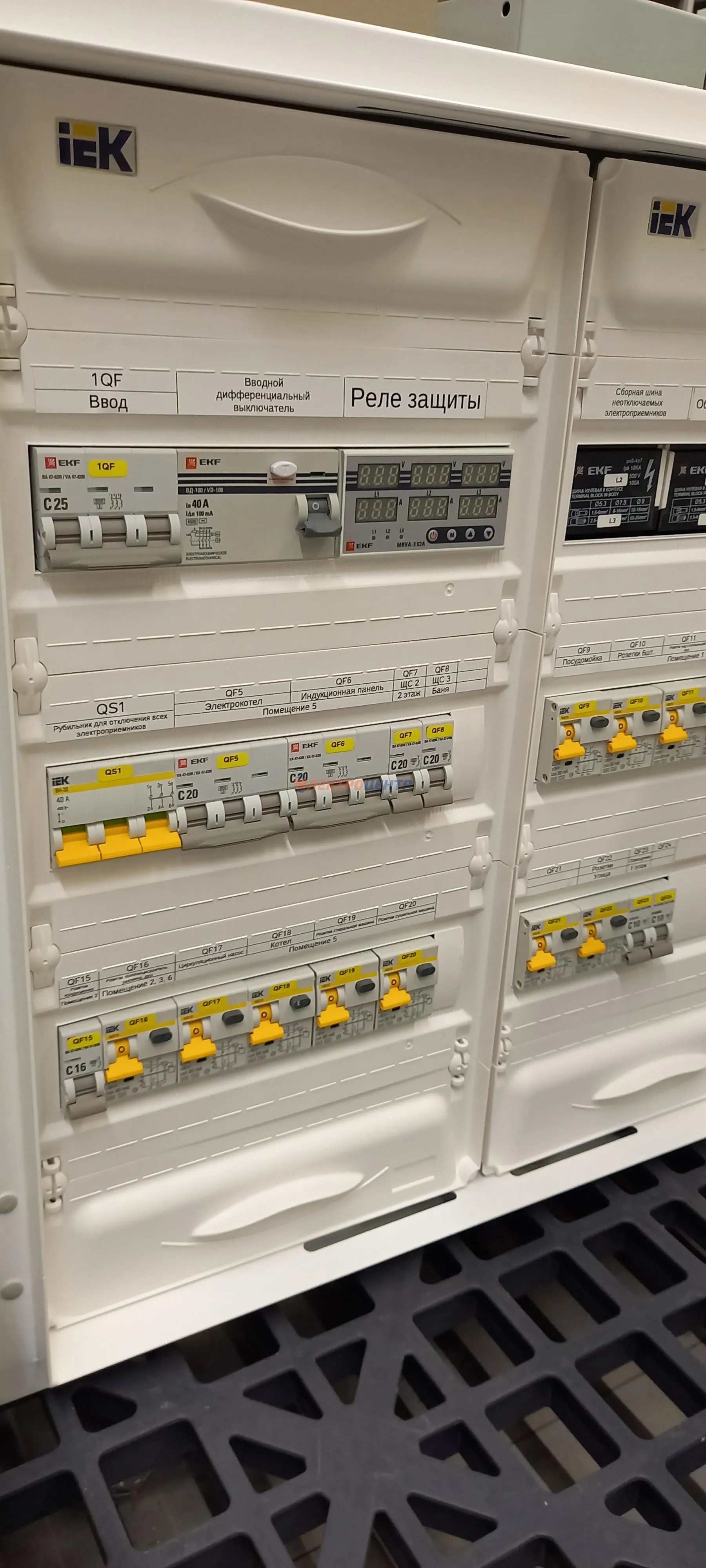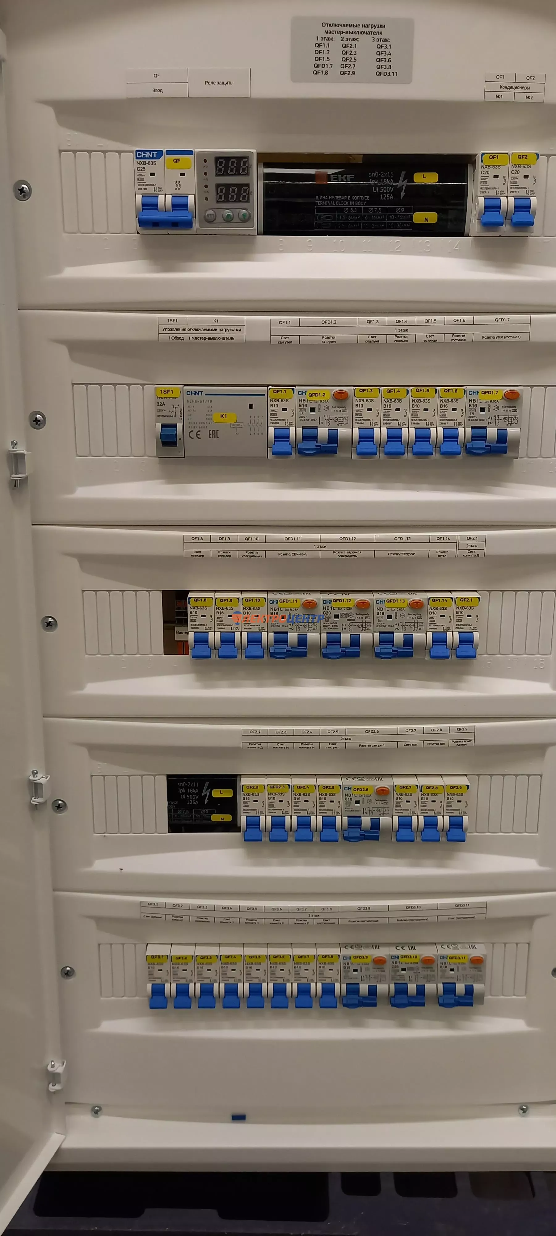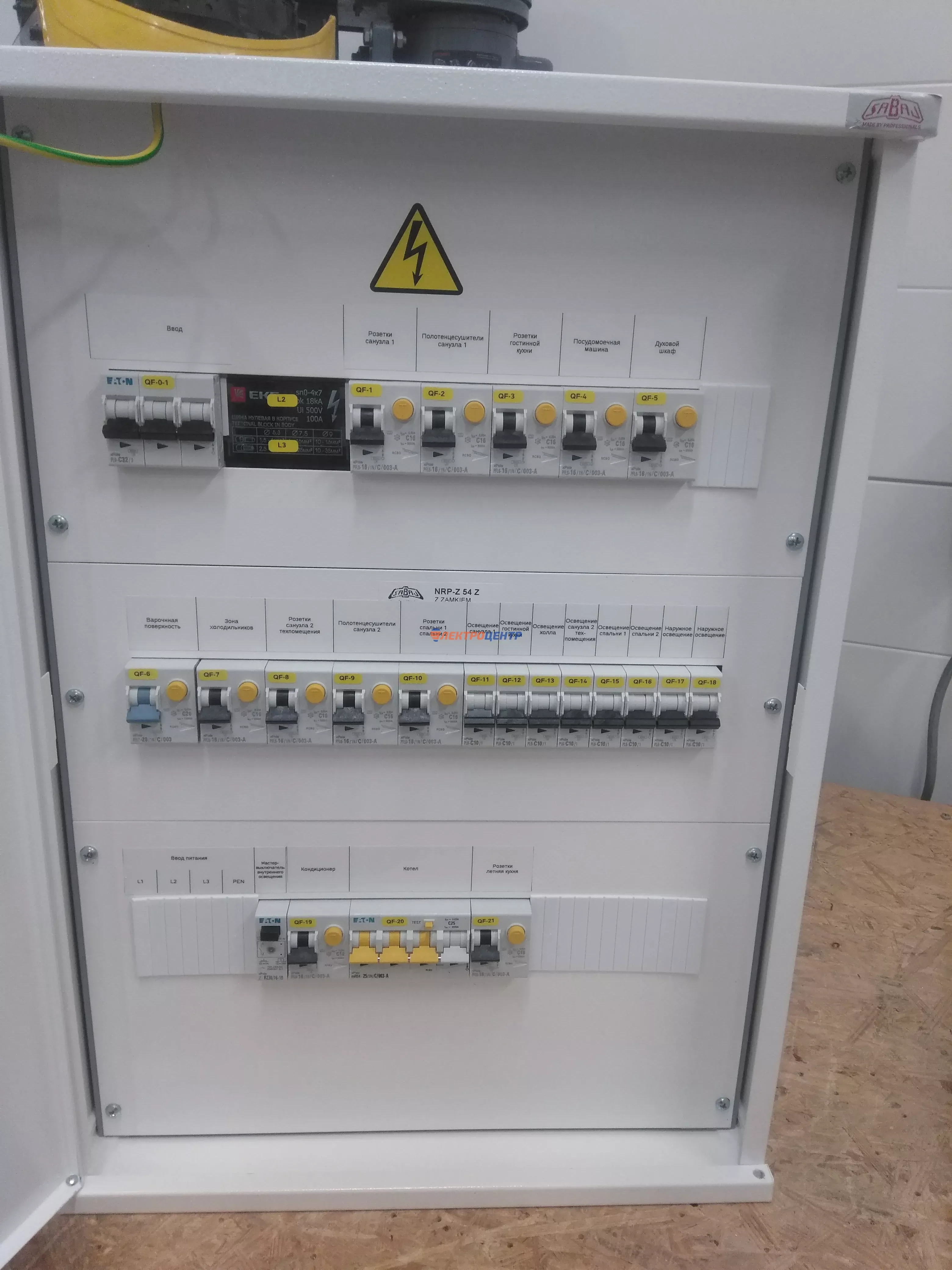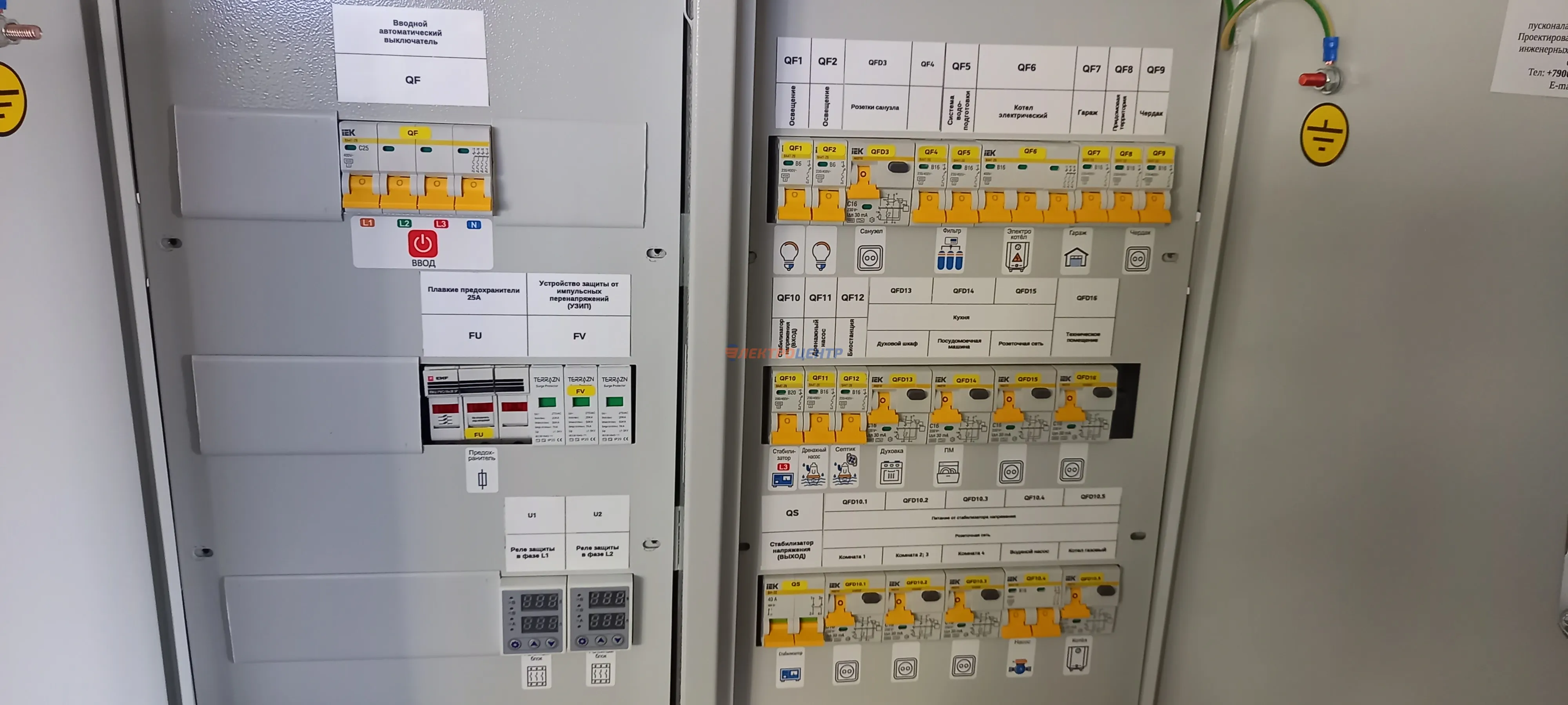 | 111 | Распредщиты в ИЖД и квартиры внутреннего и наружного исполнения | По желанию заказчики оборудуются реле мониторинга и защиты, системами АВР, разрядниками перенапряжения (УЗИП), дополнительными шинами уравнивания потенциалов (ДШУП). Оборудование от производителей: IEK, CHINT, EATON, ETI, EKF | Посмотреть фото |