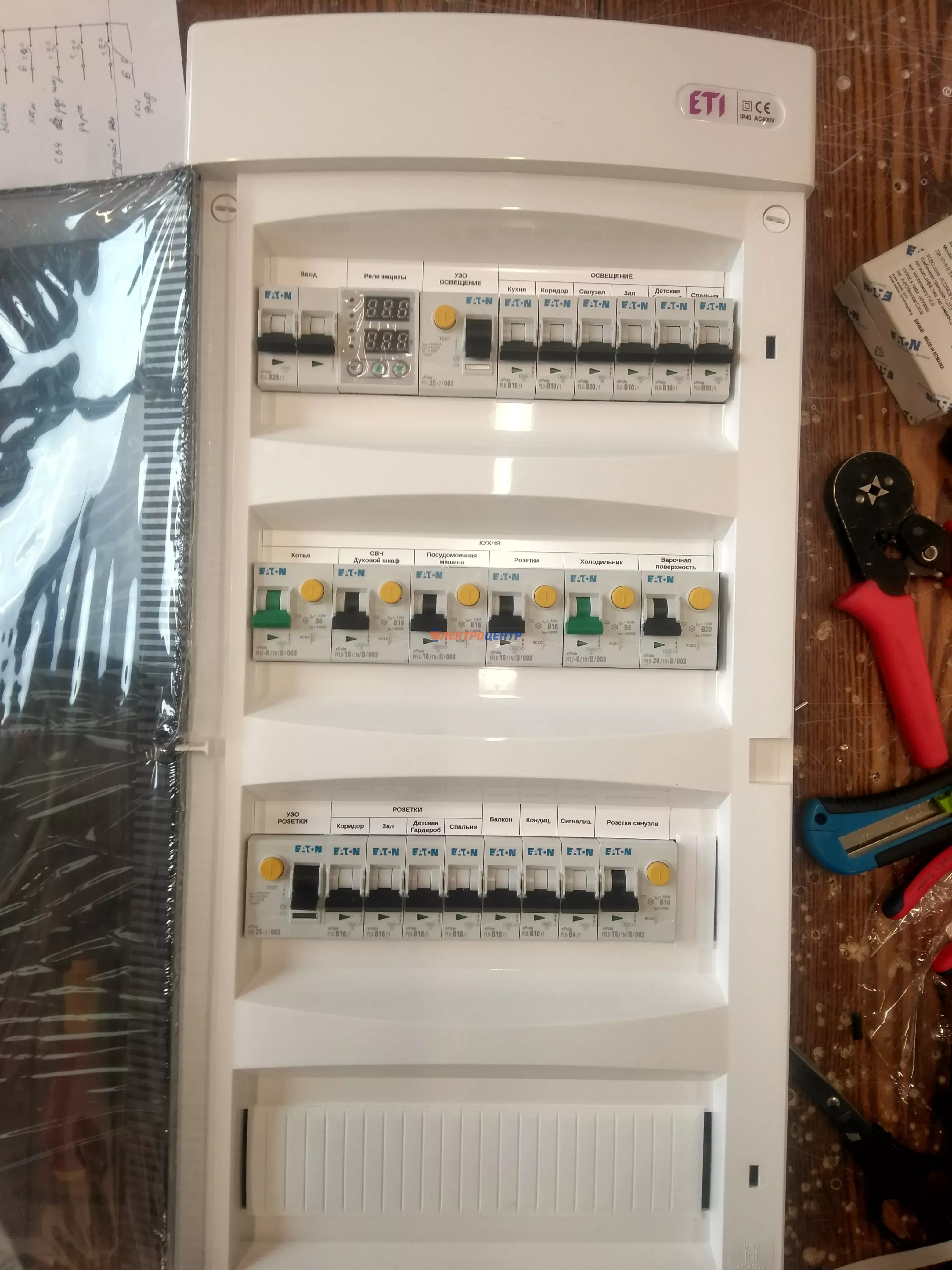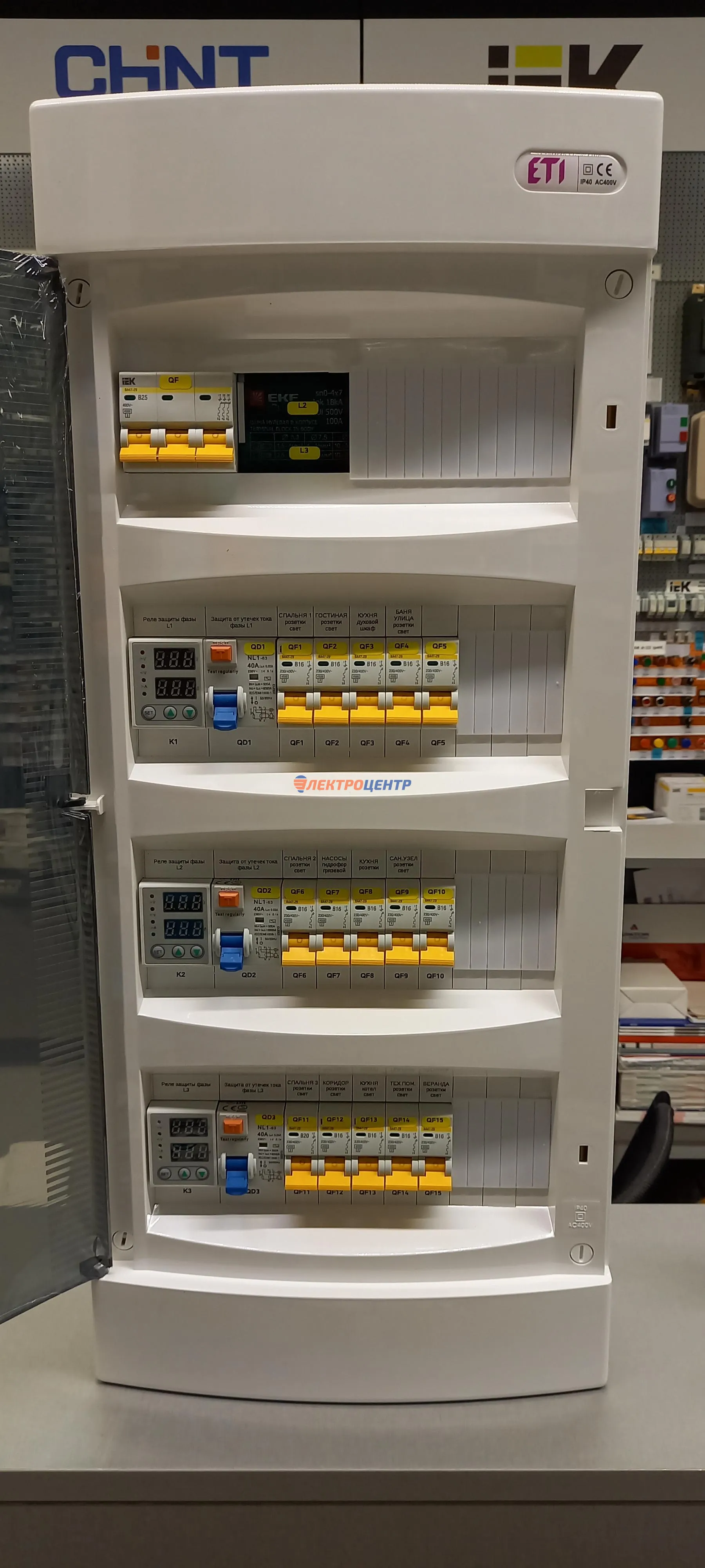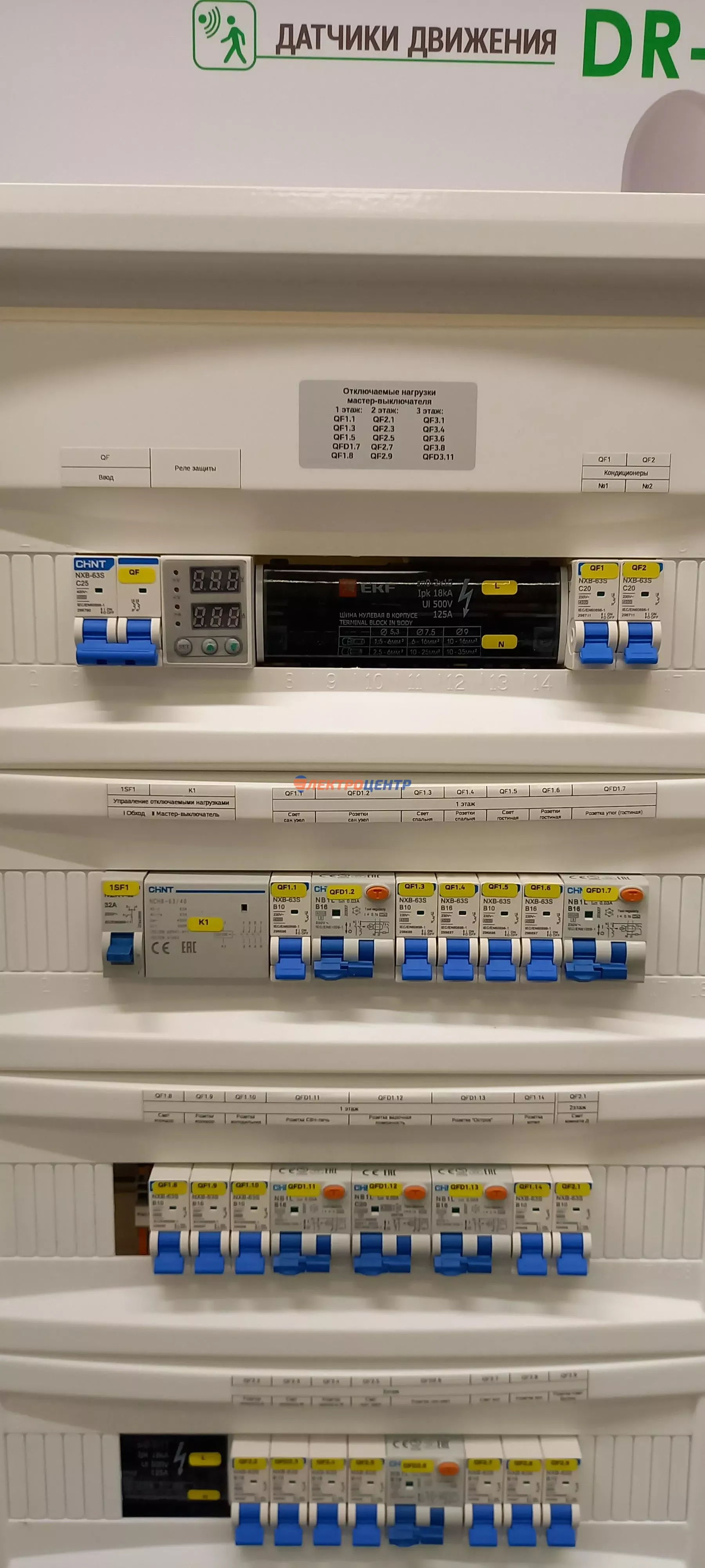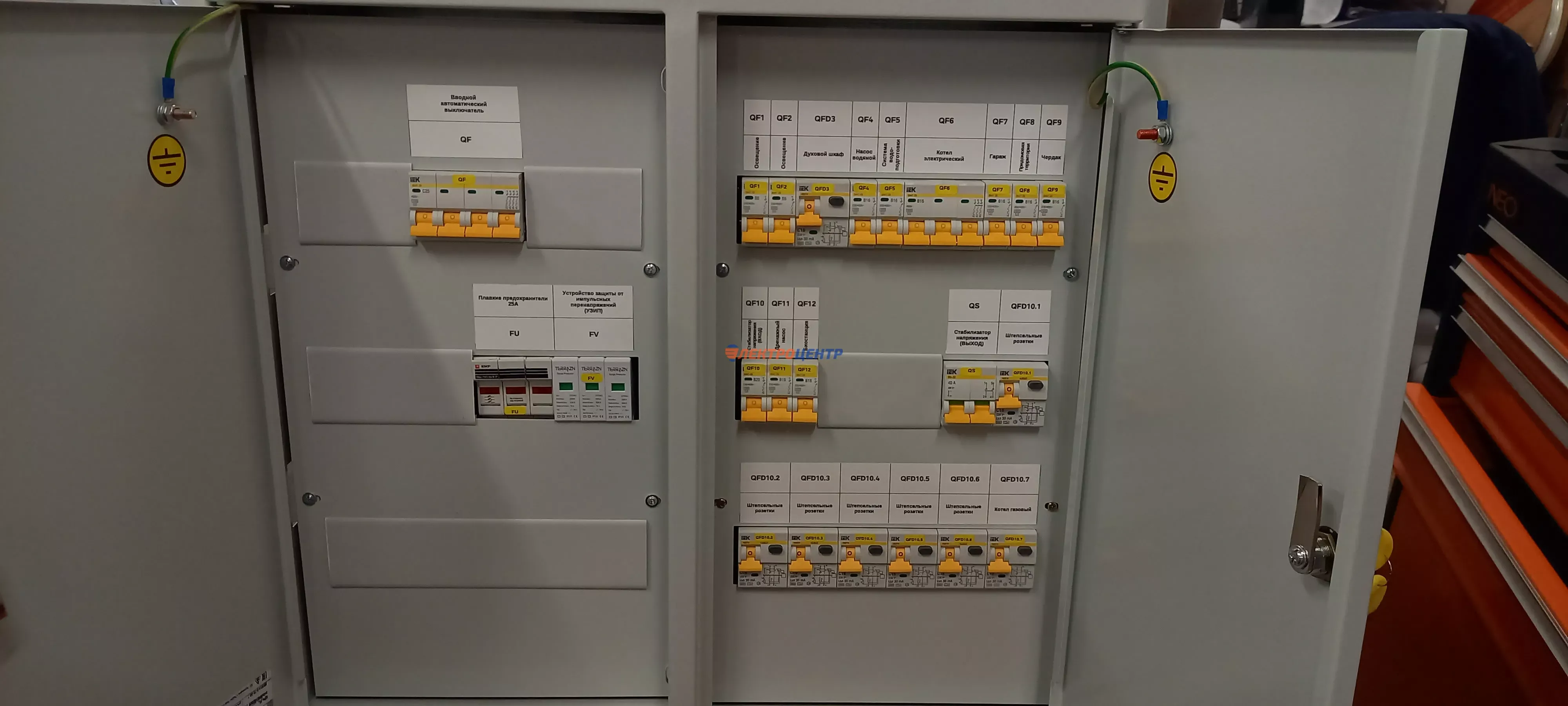 | 111 | Распредщиты в ИЖД и квартиры внутреннего и наружного исполнения | По желанию заказчики оборудуются реле мониторинга и защиты, системами АВР, разрядниками перенапряжения (УЗИП), дополнительными шинами уравнивания потенциалов (ДШУП). Оборудование от производителей: IEK, CHINT, EATON, ETI, EKF | Посмотреть фото |