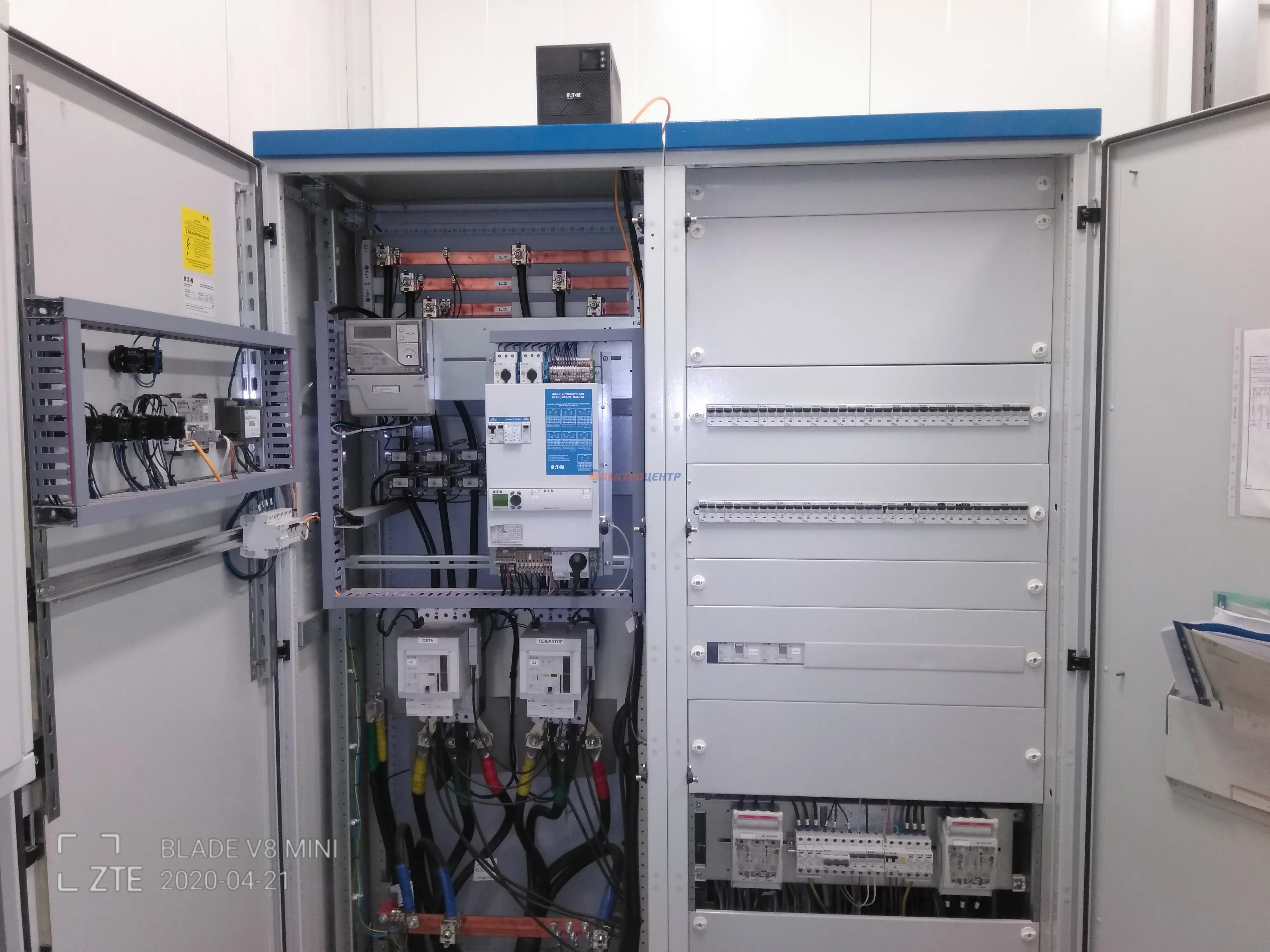 | 35 | ГРЩ банковского учреждения г. Калининграда. | EATON. Оболочка типа “ТИТАН»ИЭК. Модуль АВР типа MAX-3 (изменённая диаграмма 2B1(генератор работает на обе секции шин)). Выключатели типа LZMC3-400-I, ограничители перенапряжения тип V50 (OBO). | Посмотреть фото |