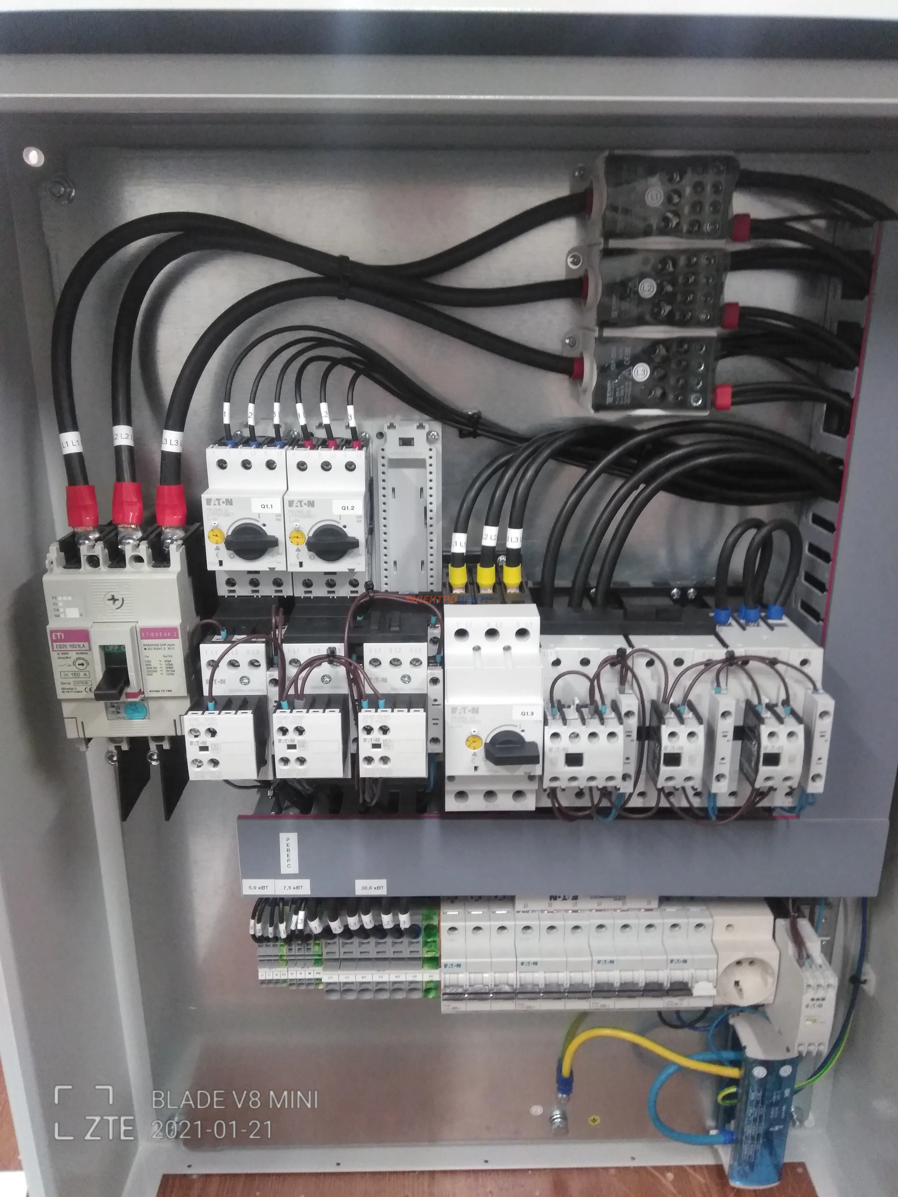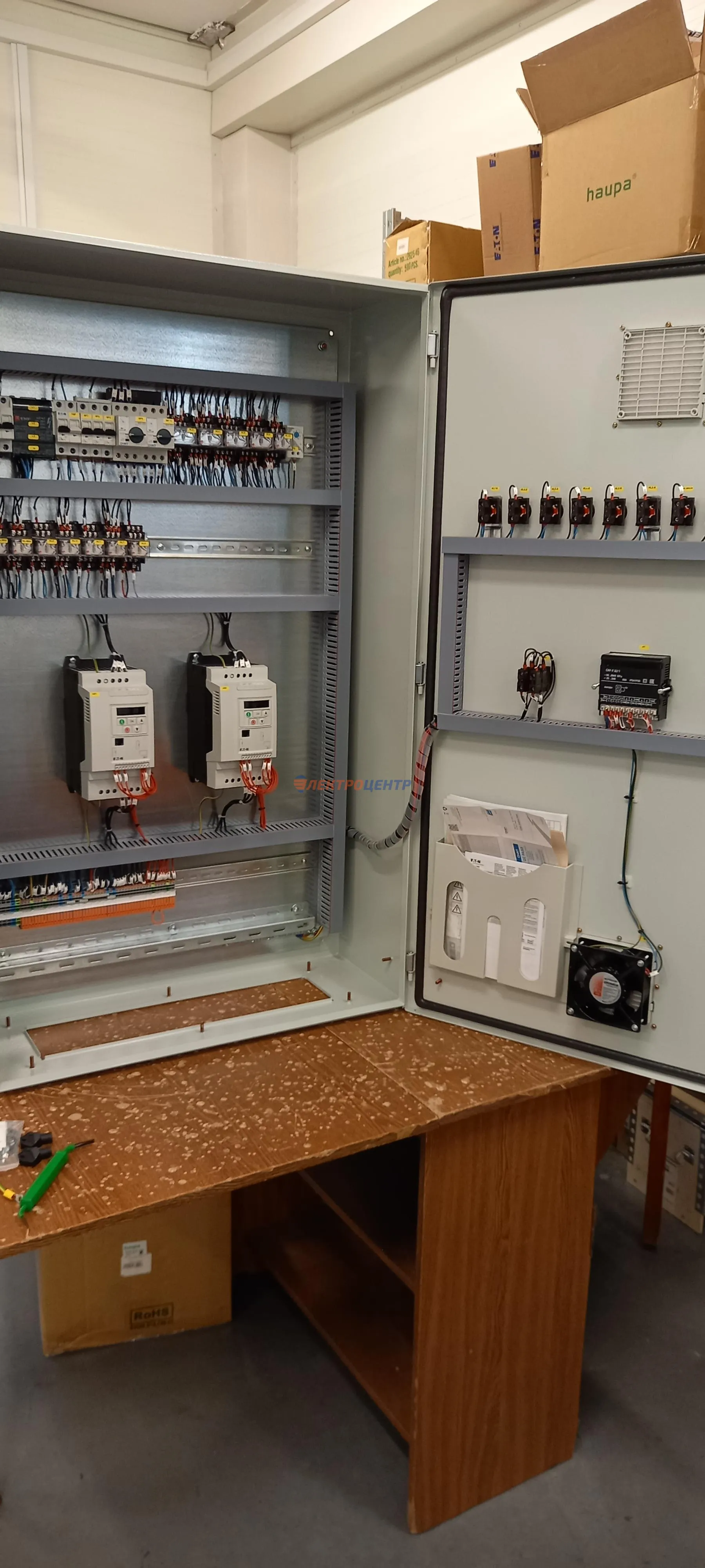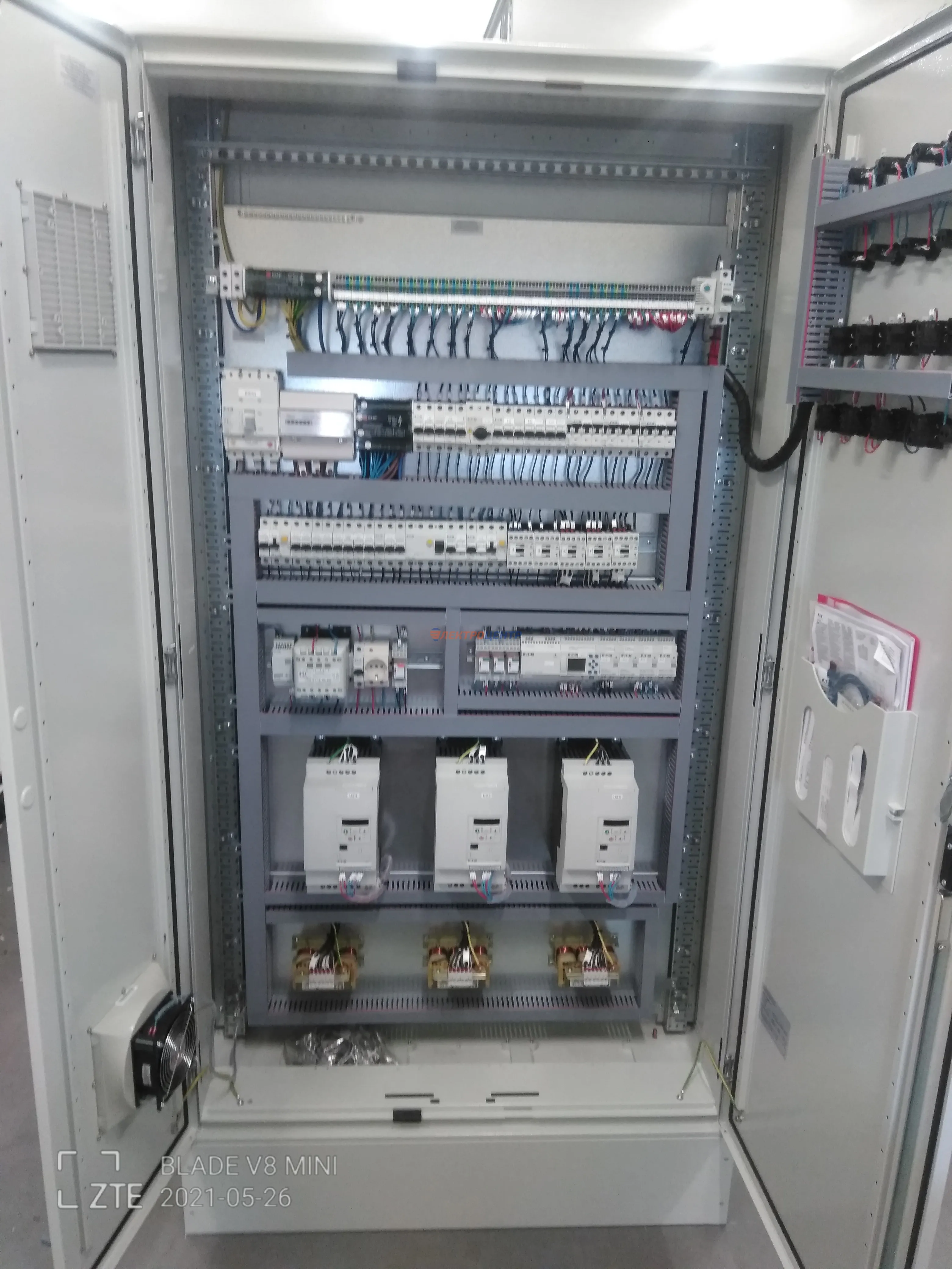 | 41 | Щит управления ЭП вент. | Щит управления электроприводами вентиляторов. Щит предусматривает местное управление пуском вентиляторов (прямой пуск, пуск и реверс, пуск со звезды на треугольник. EATON, ETI. Оболочка ETI (Словения). | Посмотреть фото |