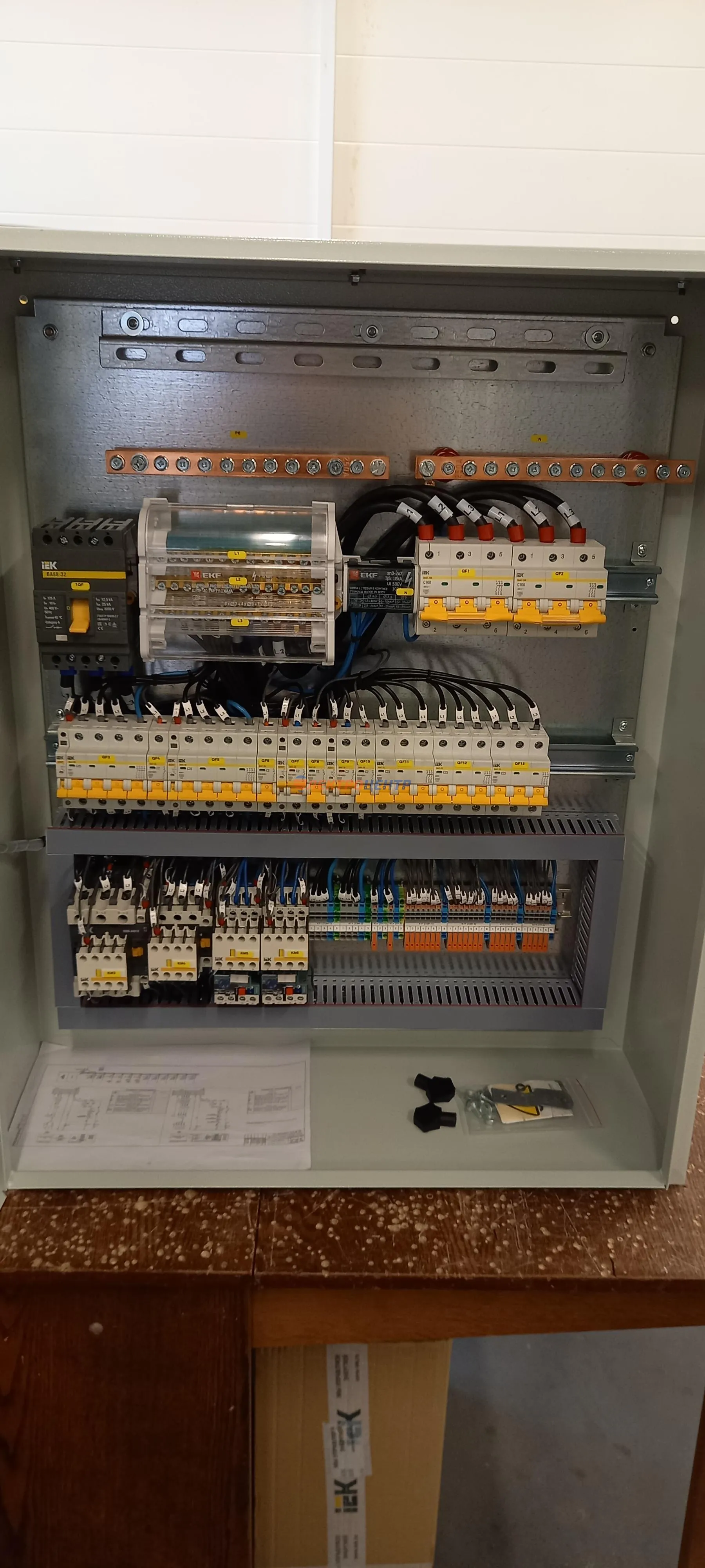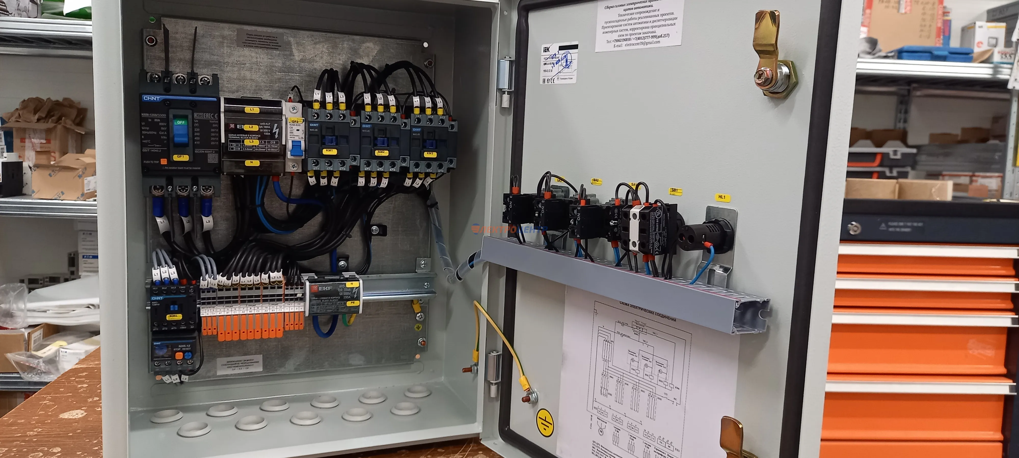 | 14 | Щит производственного цеха | Chint. Оболочки типа: ВРУ-1 (ТИТАН) «ИЭК», силовой автомат и выключатель нагрузки Chint. | Посмотреть фото |