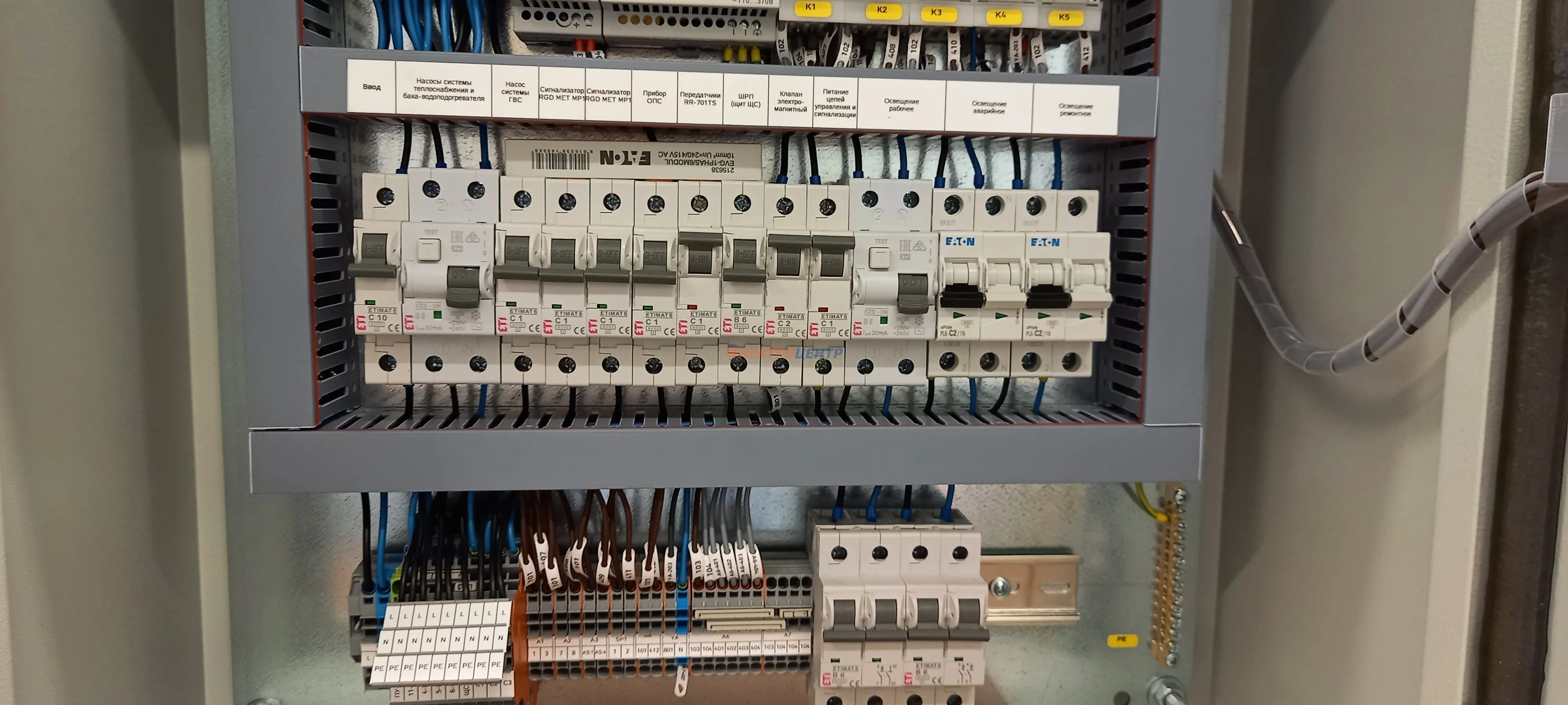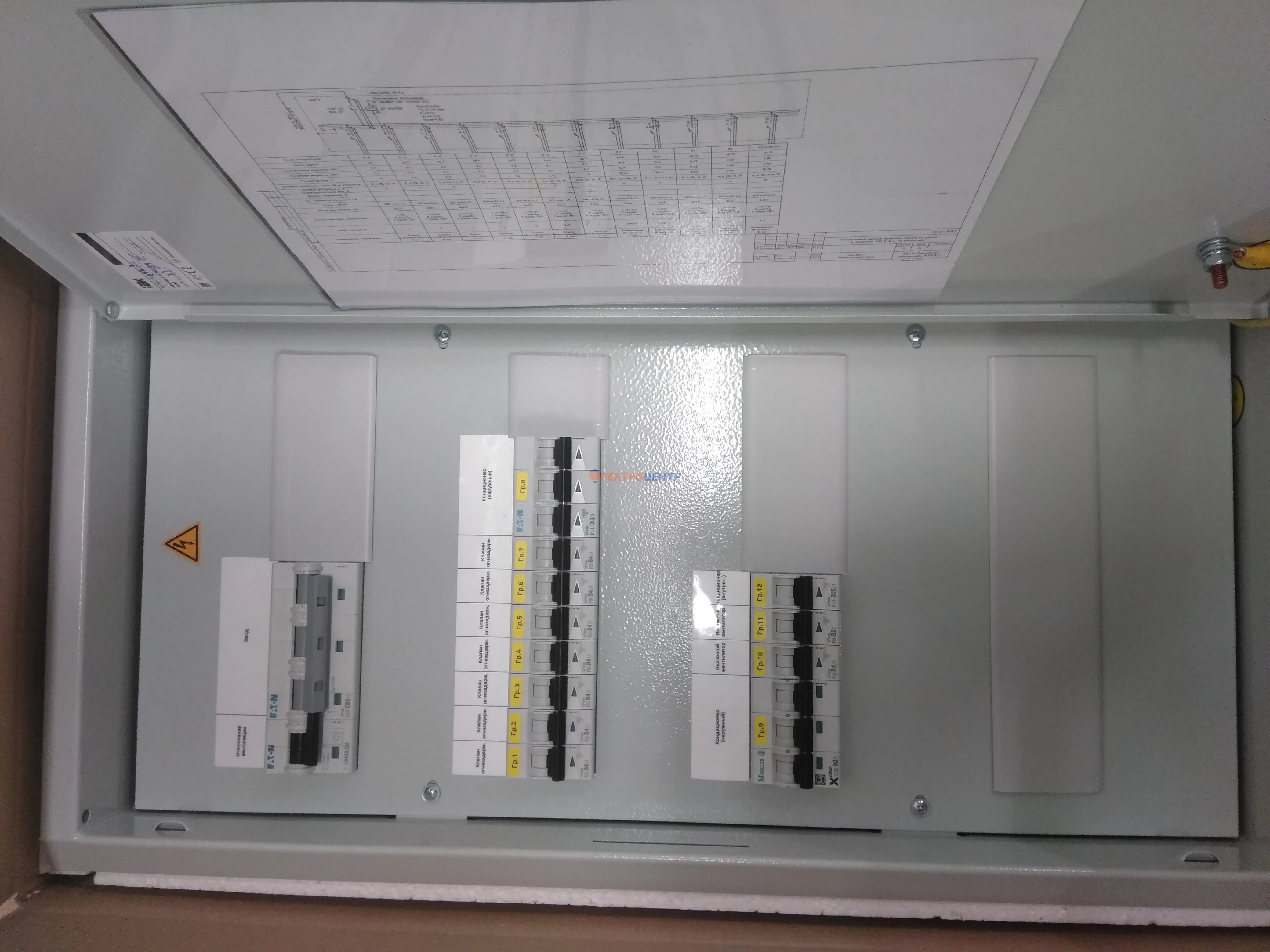| 28 | Щит питания вентиляции | EATON, распределительные блоки ИЭК. Оболочка типа BP-O производителя EATON. | Посмотреть фото |