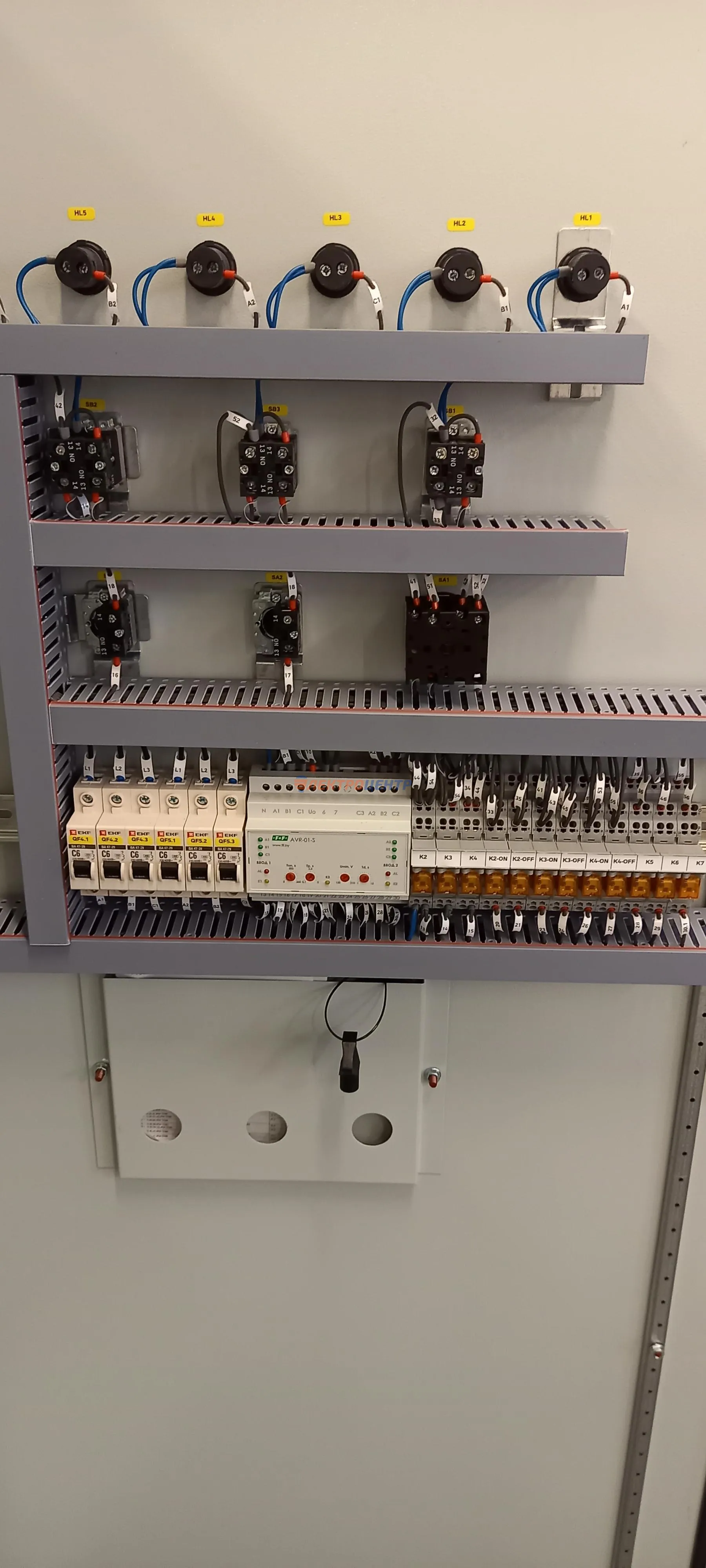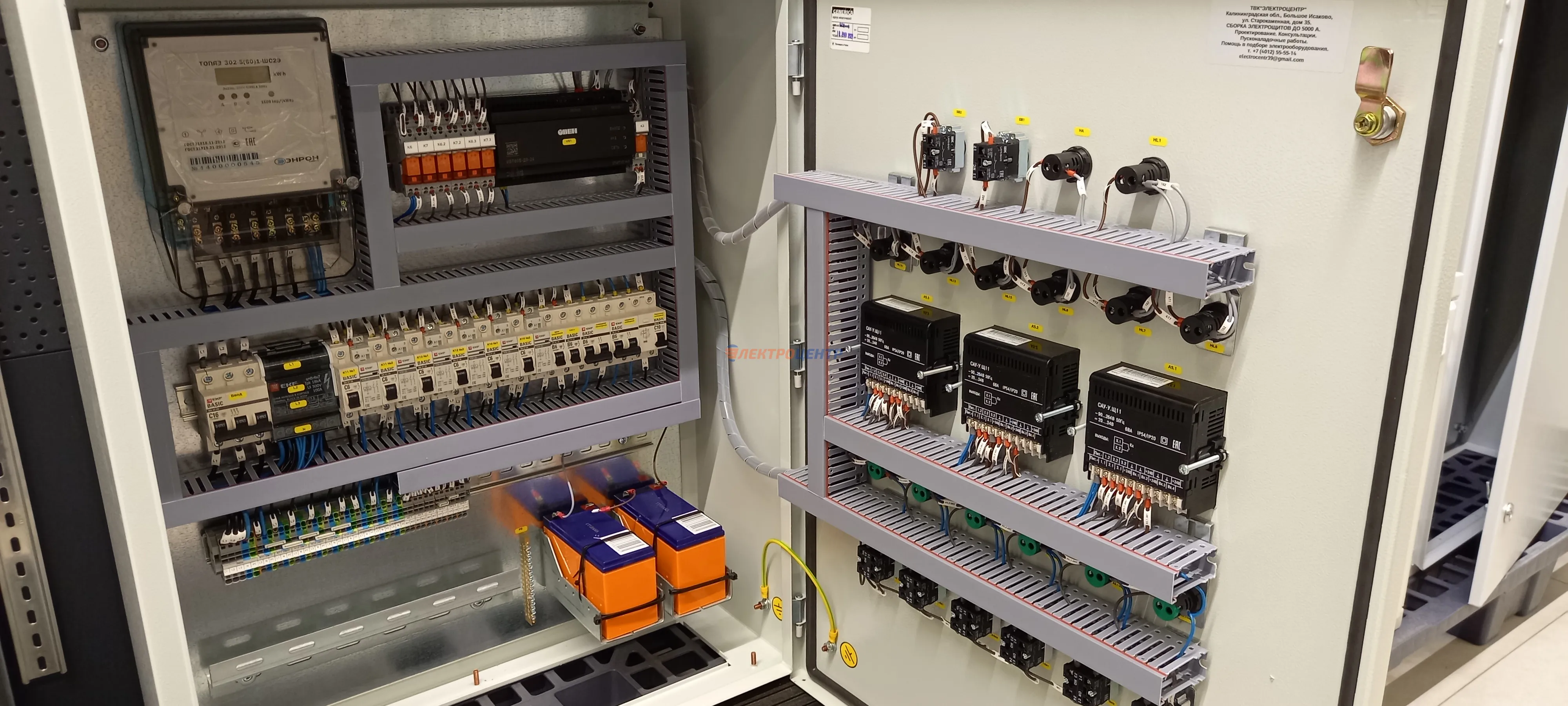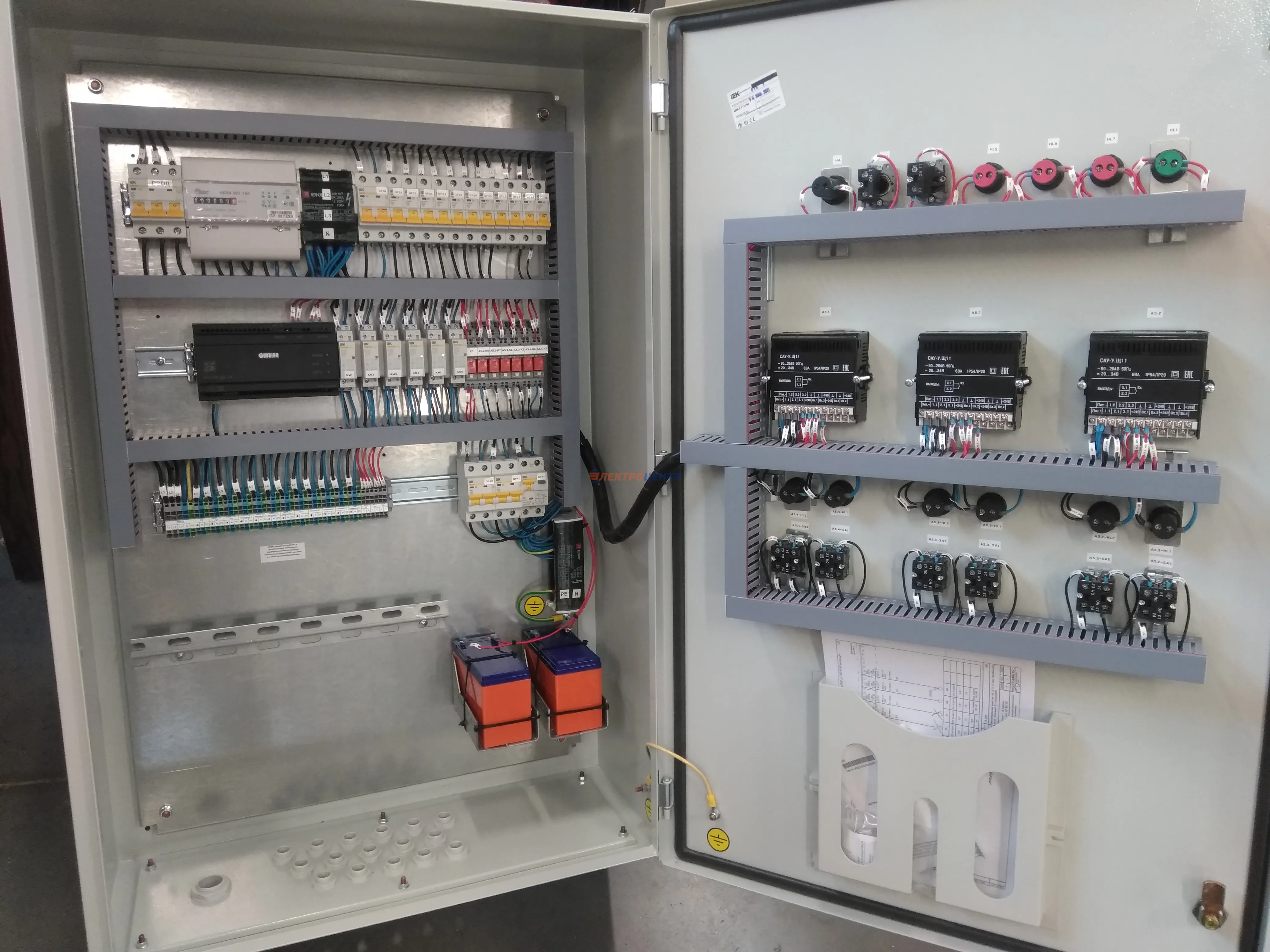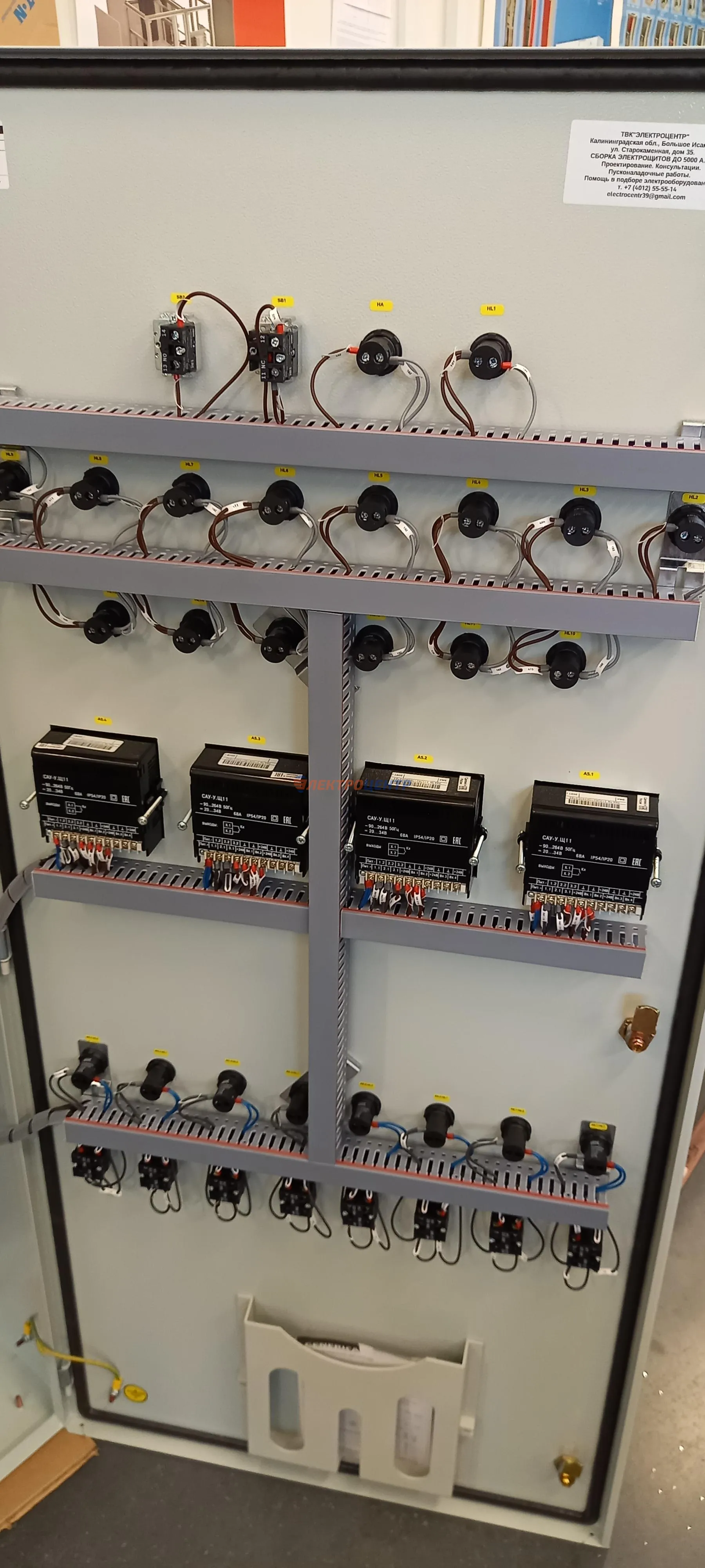 | 123 | Щит ЩСА | Щит автоматики котельной: управление насосами котельной с выводом сигнализации на дверь щита. Оборудование от производителей: ИЭК, ЭКФ, FINDER. Оболочка - ТИТАН 5 (ИЭК). | Посмотреть фото |