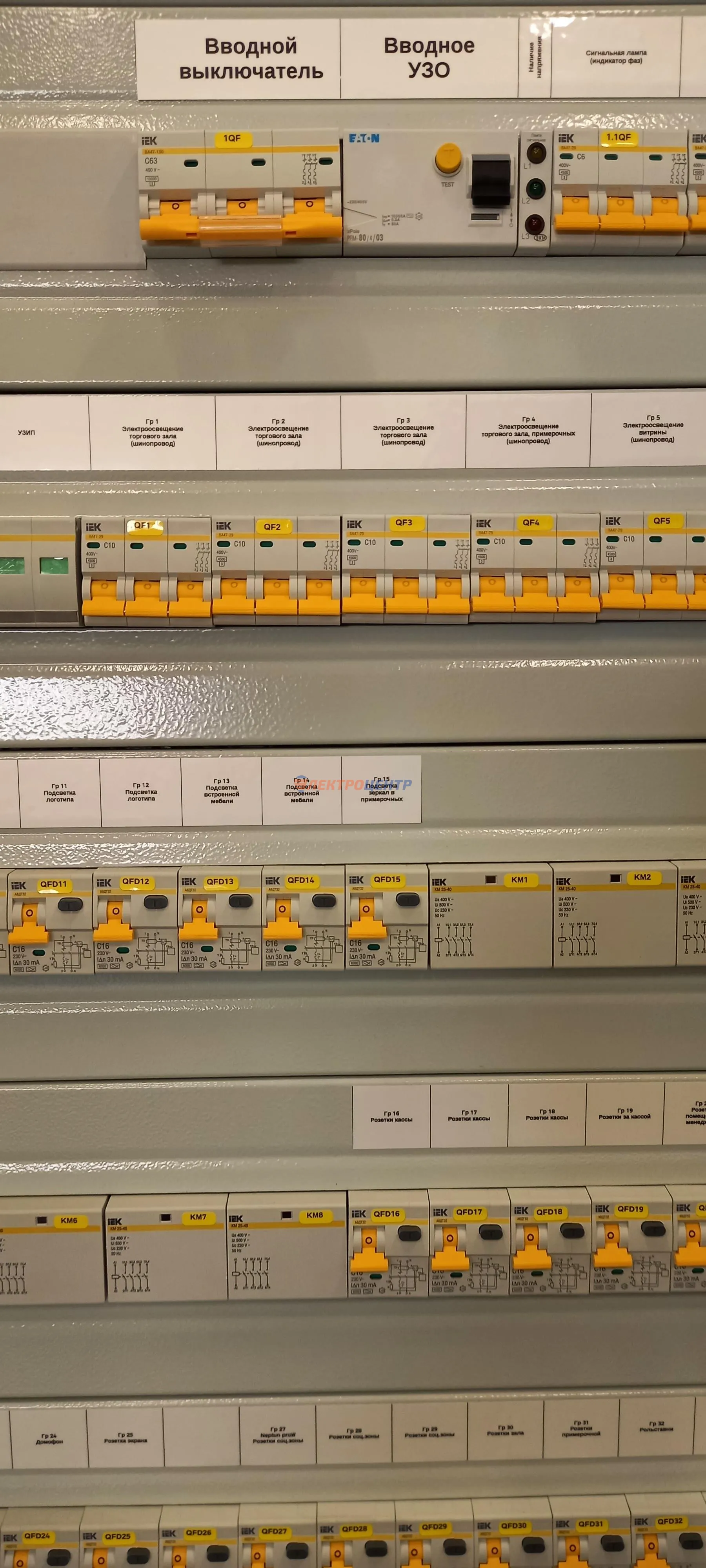 | 44 | Распредщиты торгового центра | Описание: Распределительные щиты торгового центра. Оборудование: EATON, ЭКФ. Оболочки: ВРУ-1 TITAN (ИЭК), NRP-Z (SABAJ), BF-O (EATON). | Посмотреть фото |