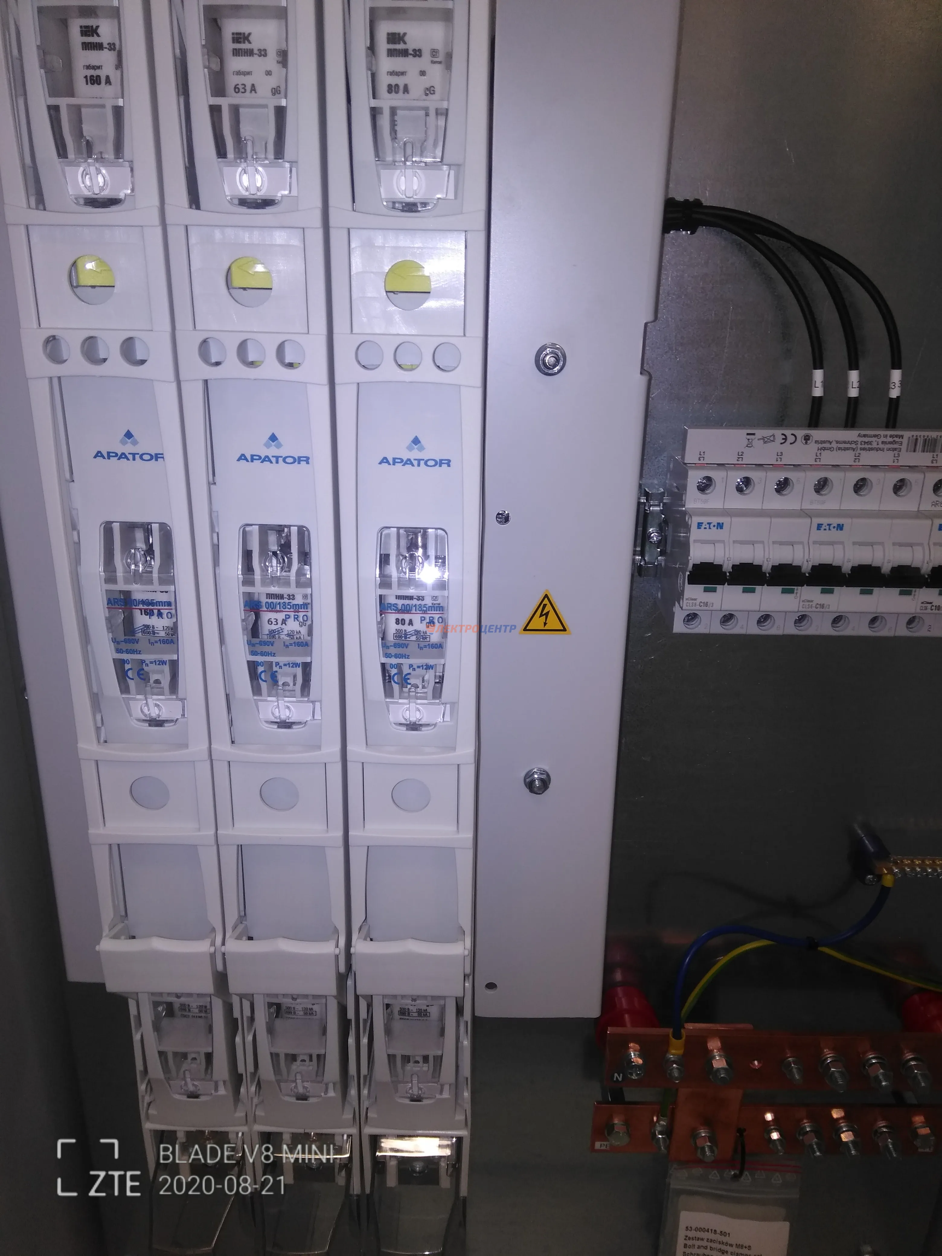 | 7 | ВРУ торгового центра | EATON, APATOR. Оболочка типа XVTL(EATON), силовые выключатели типа LZMN, разрядники перенапряжения SPBT12, анализатор сети CIRCUTOR | Посмотреть фото |