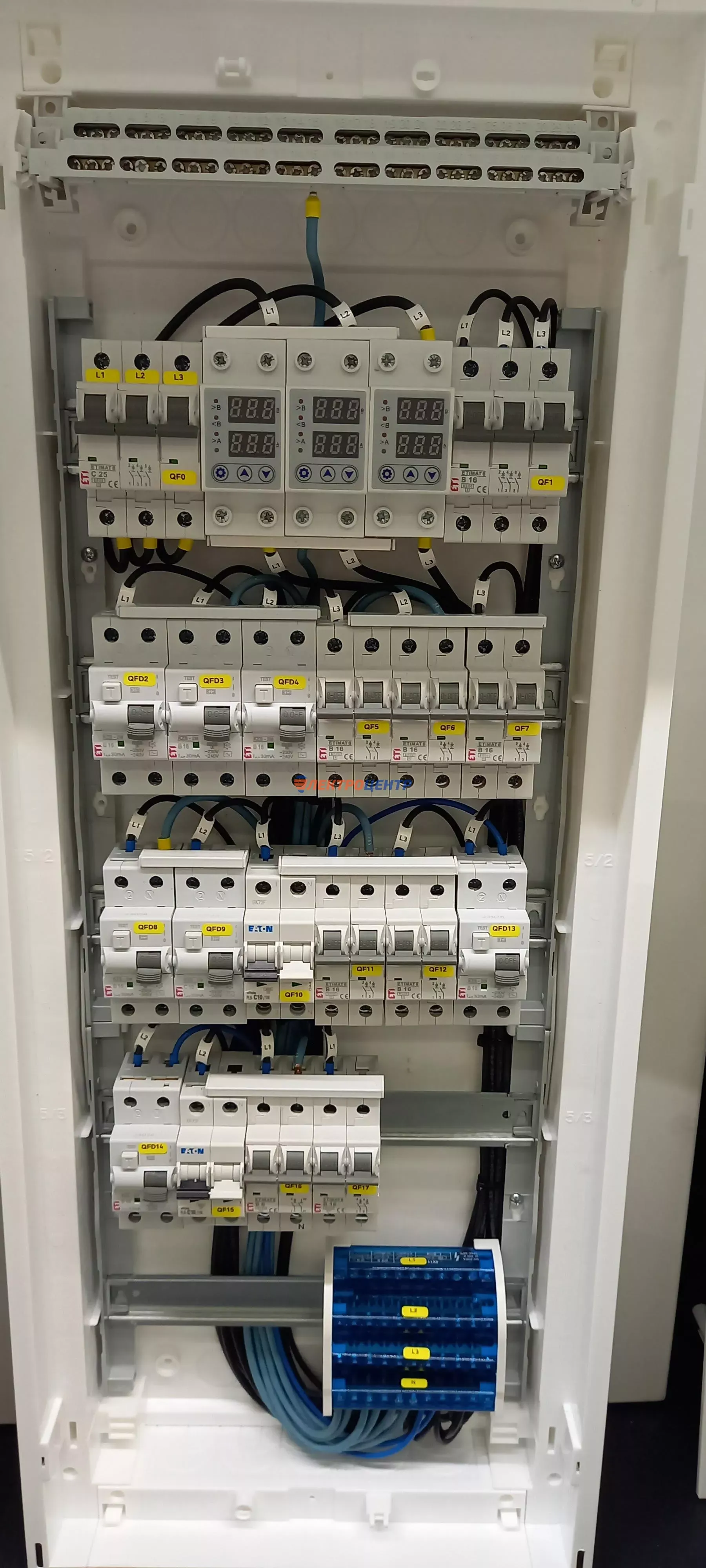 | 71 | Щит в МФЦ | Щит распределительный встраиваемого исполнения типа ERP18-5 (ETI) в качестве ГРЩ в реконструированное здание МФЦ. Все аппараты защиты от производителя EATON. | Посмотреть фото |